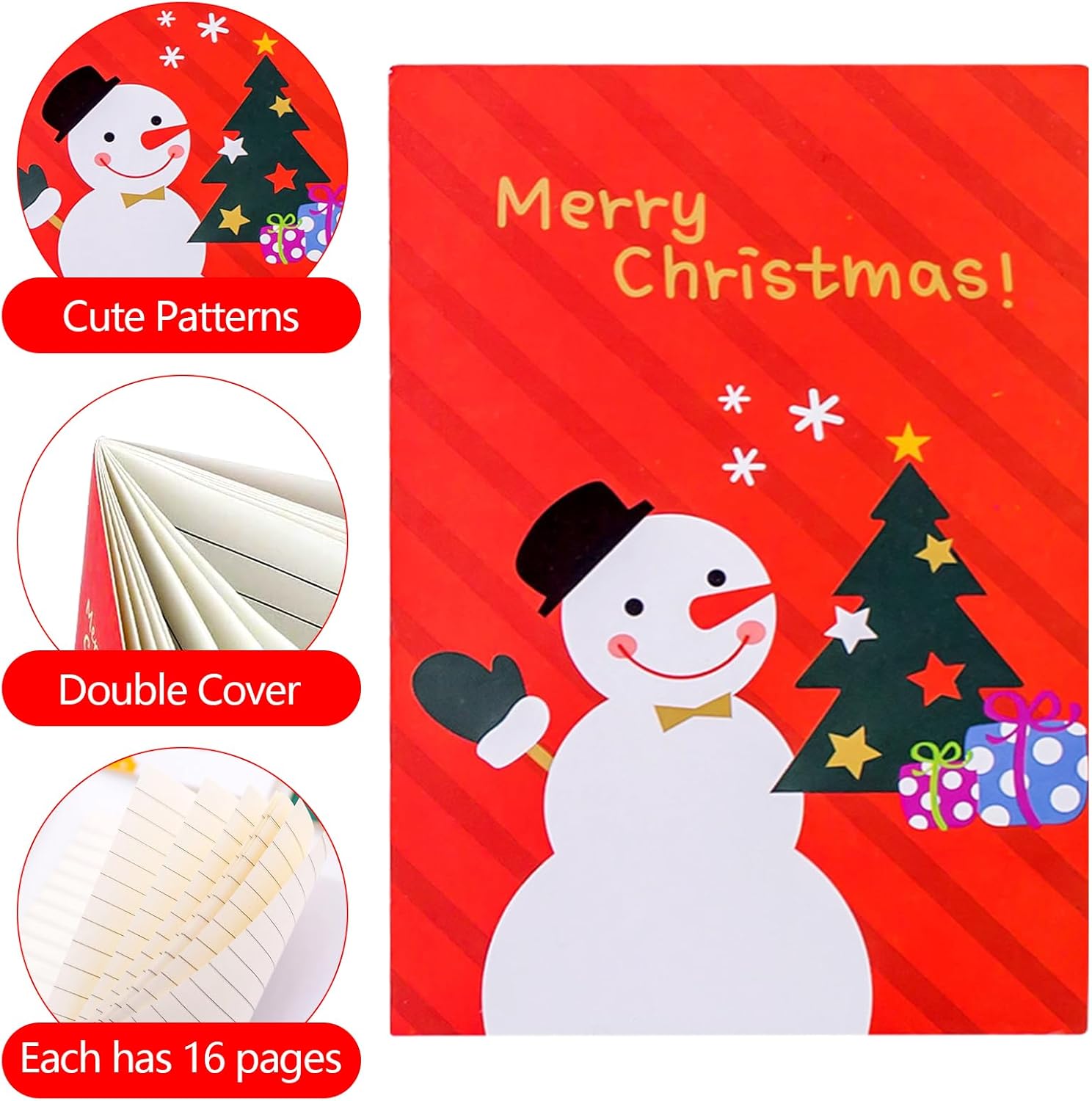 🎄【Mini blocco note da 24 pezzi】Babbo Natale (4 disegni) + Pupazzo di neve di Natale (4 disegni) + Cervo di Natale (4 disegni), 2 per ogni stile. I nostri mini taccuini natalizi non sono solo pratici, sono anche un modo meraviglioso per godersi l'atmosfera natalizia. Si prega di notare che gli stili vengono scelti in modo casuale. ✨【Materiale di alta qualità】. I nostri piccoli taccuini sono realizzati con carta ecologica di alta qualità. Il materiale è sicuro, offre una presa piacevole e consente una scrittura fluida. I colori tenui delle pagine non affaticano gli occhi e proteggono gli occhi dall'affaticamento. 🎄【Design natalizio】I mini quaderni natalizi hanno classici design natalizi: Babbo Natale, pupazzo di neve, renne. Sembra elegante, bello e nobile. Ti consente di registrare pensieri, appunti e idee mentre ti godi un'atmosfera festosa. ✨ 【Notebook portatile】 I mini notebook sono portatili, facili da usare, leggeri e piccoli, puoi facilmente infilarli nella tasca posteriore o nella tasca della camicia, prendere appunti in qualsiasi momento, sia che tu voglia usarli per registrare liste di cose da fare, liste della spesa o momenti speciali, questi taccuini possono aiutarti a portare a termine il lavoro! 🎄【Regalo perfetto】Mini quaderni con copertina a forma di simpatico cartone animato, un regalo molto carino per i bambini a Natale, Capodanno e vacanze. Fantastico regalo di Natale, ideale per omaggi promozionali e premi scolastici. I motivi carini e belli dei cartoni animati creano un'atmosfera natalizia festosa e portano gioia nella tua vita quotidiana.