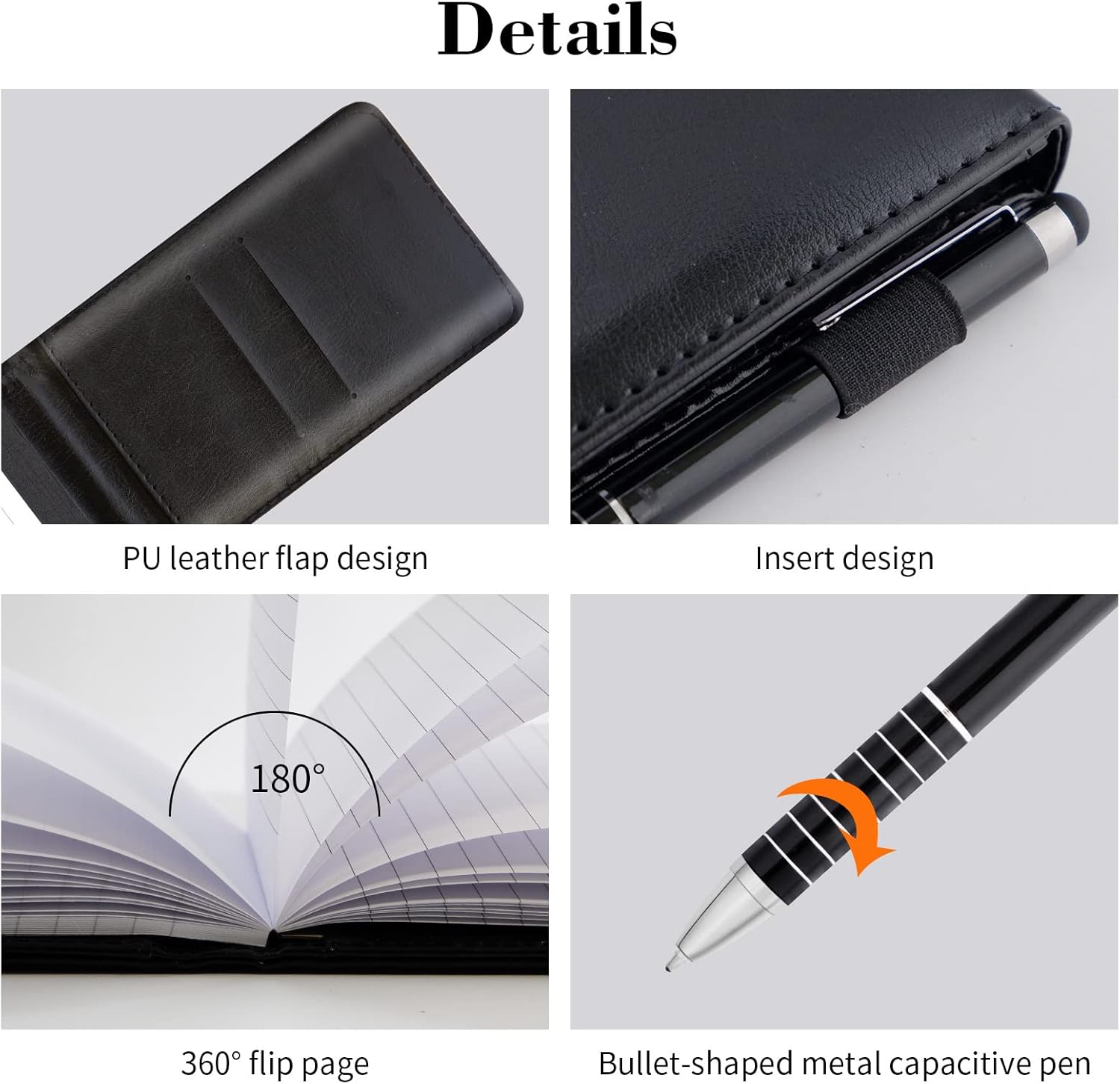 📖【Alta qualità】Questo mini taccuino è realizzato in pelle di alta qualità, che non si deforma o si rompe facilmente, è impermeabile e affidabile, quindi può essere utilizzato a lungo. 📖【Design a tutto tondo】Questo piccolo blocco note A7 ha 2 slot per carte e 1 slot per penna che ti consentono di organizzare biglietti da visita, carte, ecc. Ideale per affari, ufficio, viaggi e riunioni, è ideale per gli uomini d'affari. 📖 【Facile da trasportare】 Formato carta A7, formato taccuino 13,8 x 8,6 x 1,5 cm, 2 quaderni con 50 fogli di carta ciascuno, linea standard, formato mini lo rende facile da trasportare o riporre in tasche, borse e tracolle per le necessità quotidiane. 📖【Multiuso】Questo quaderno A7 in pelle PU ha una superficie di scrittura sufficiente (100 pagine in totale), ideale per conferenze, fiere, eventi aziendali, rientro a scuola, appunti, quaderni di viaggio e forniture per ufficio. 📖 【Regalo ideale】 Può essere usato come regalo pratico, puoi regalarlo ai tuoi amici, familiari o colleghi, ecc; Semplifica il lavoro e l'apprendimento ed è la scelta migliore per compleanni, feste o regali aziendali.