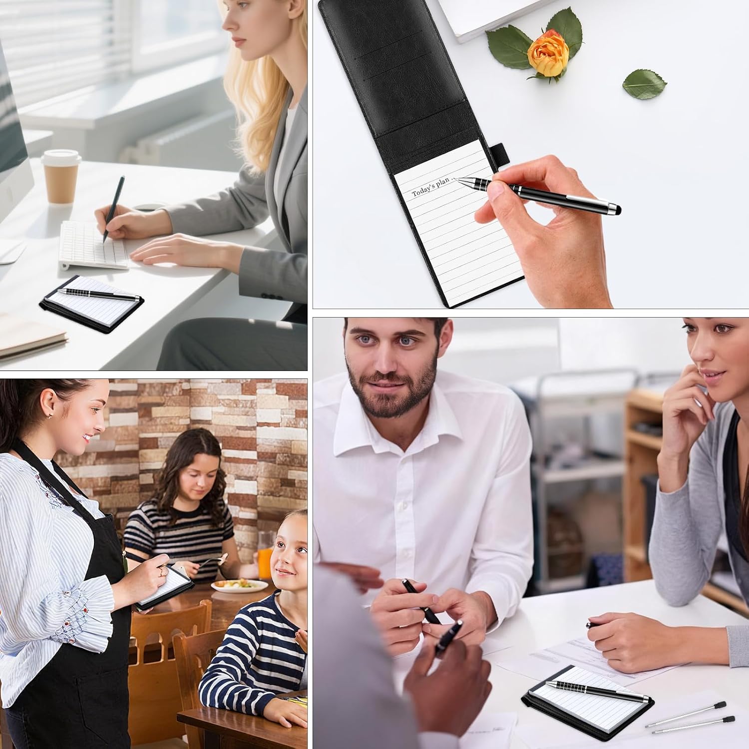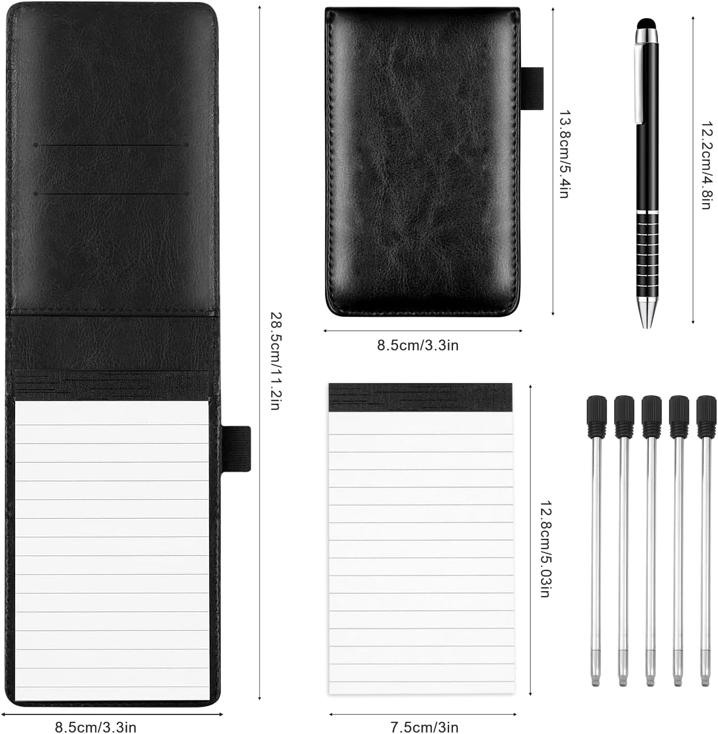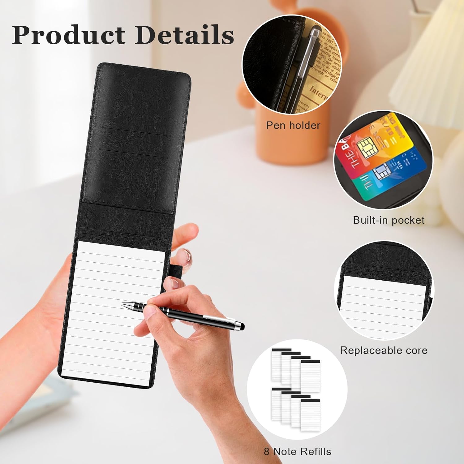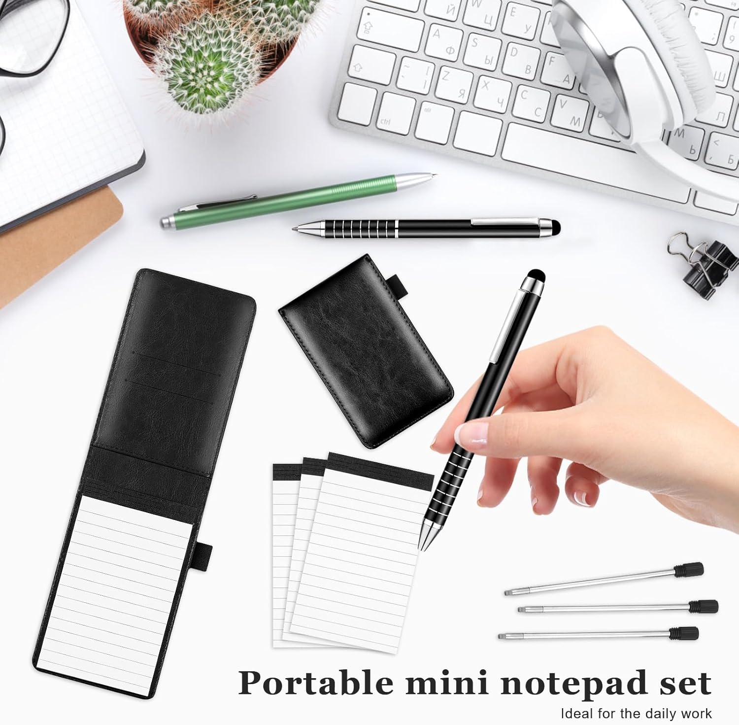 📝【Pelle di Alta Qualità】Questo piccolo taccuino realizzato in pelle di prima qualità è caratterizzato da una texture raffinata e da una grande resistenza. È indeformabile e resistente all'usura, il che garantisce una lunga durata. Che sia per i tuoi incontri professionali o per l'uso quotidiano, riflette il tuo gusto eccezionale. 📝【Dimensioni compatte】Il blocco note A7 colpisce per il suo design sottile e leggero che si adatta facilmente alle tasche o alle borse. Con le sue 50 pagine a righe e un layout chiaro, offre spazio sufficiente per annotare informazioni importanti sempre e ovunque. 📝【Design Integrato】Il mini notebook è molto più di un semplice notebook, funge anche da organizer portatile. La custodia è dotata di pratici scomparti per biglietti da visita, carte bancarie, biglietti di trasporto e altri oggetti importanti, così potrete riporre i vostri oggetti di valore in modo chiaro e averli a portata di mano. 📝【Design Multifunzionale】Questo pratico taccuino A7 è dotato di una penna gel facile da usare e cinque ricariche intercambiabili per un tempo di utilizzo prolungato. La ricarica della penna è compatibile anche con tutti i touch screen. 📝【Usi versatili】Che si tratti di riunioni di lavoro, appunti accademici, schizzi creativi o diari di viaggio, questo piccolo taccuino è il tuo compagno ideale. La sua robusta funzionalità soddisfa molte esigenze in ufficio, nello studio e in situazioni creative.