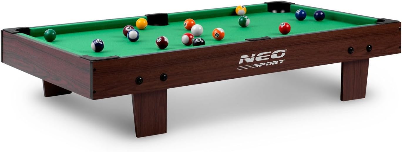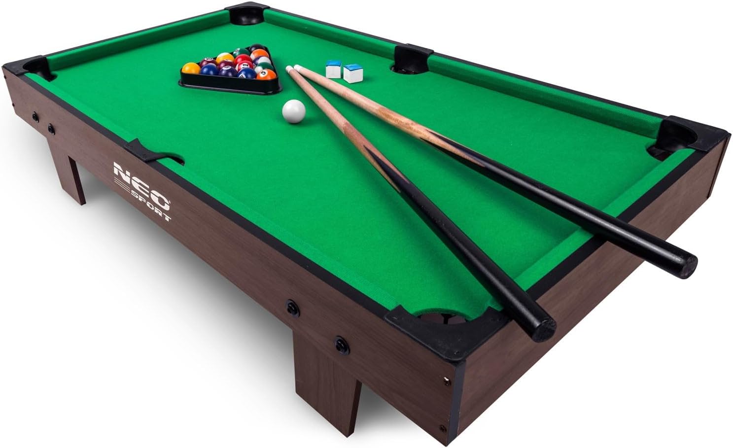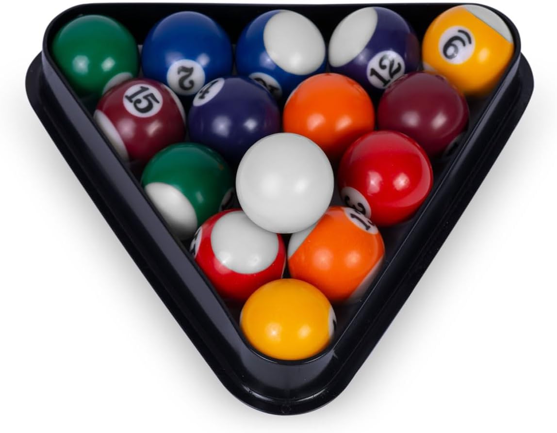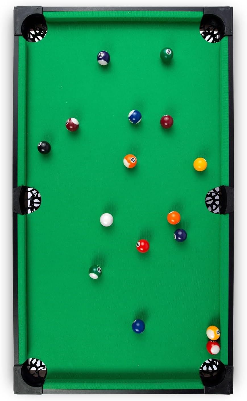 Versione compatta della stecca classica Tavolino antiscivolo dalle dimensioni ridotte Il set comprende anche tutti gli accessori necessari: 2 stecche, 16 trilioni, triangolo e 2 gessetti da biliardo