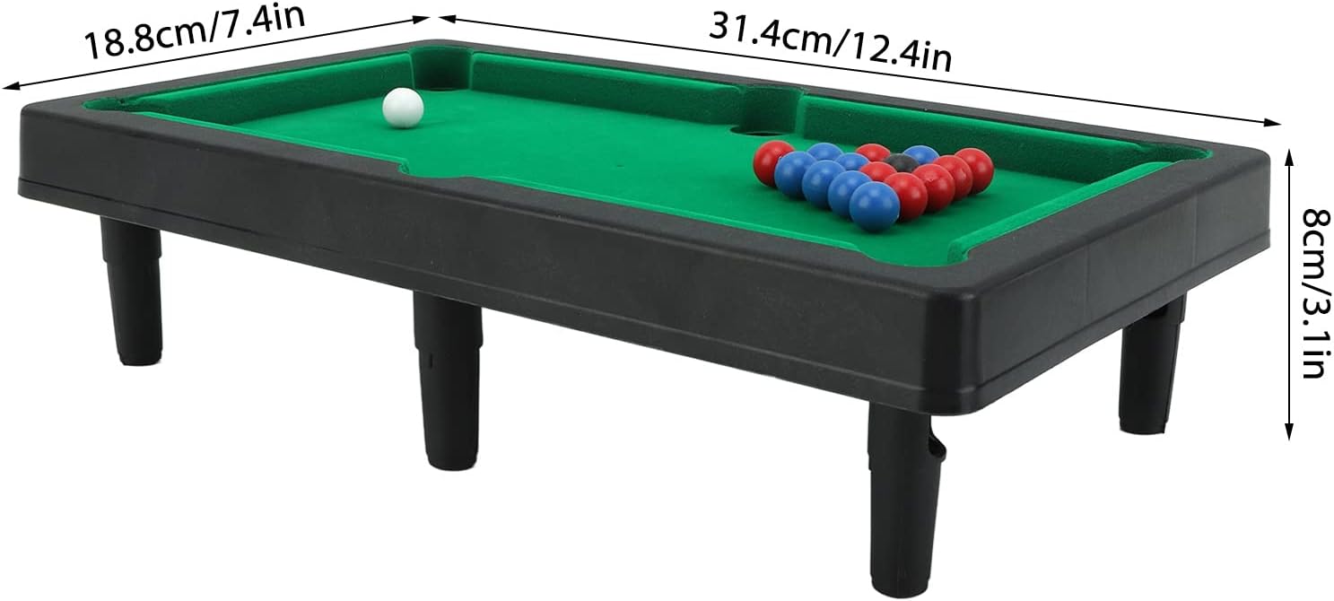 Materiale eccellente: questo mini tavolo da biliardo è realizzato in robusto materiale plastico, con materiali di alta qualità, robusti e stabili, pregevole fattura e senza segni ruvidi sulla superficie. È un ottimo mini tavolo da biliardo. Design compatto: questo tavolo da gioco da biliardo da biliardo è molto compatto e di piccole dimensioni, il che lo rende facile da trasportare in luoghi diversi per giocare in qualsiasi momento. È molto salvaspazio ed è adatto a luoghi in cui non c'è abbastanza spazio per un tavolo da biliardo a grandezza naturale, come sale giochi o pavimenti di sale attività familiari. Allenamento di coordinazione: i mini tavoli da biliardo esercitano la visione dei giocatori e la coordinazione occhio-mano. Lascia che i tuoi figli usino le mani e il cervello, giochino in coppia, promuovano la comunicazione e migliorino le abilità sociali. Può esercitare bene la coordinazione occhio-mano di tuo figlio e migliorare la sua capacità di coordinazione. Adatto a tutte le età: questo set da gioco da biliardo in miniatura è adatto a tutte le età, quindi è ottimo per una battaglia di biliardo in famiglia. Questo mini tavolo da biliardo può offrire competizioni amichevoli e portare ore di divertimento a tutta la famiglia divertente: il mini gioco da biliardo da tavolo è un ottimo per compleanni, vacanze o premi dei bambini. È un divertente e giocoso che può essere una bella aggiunta all'ufficio o alla casa.