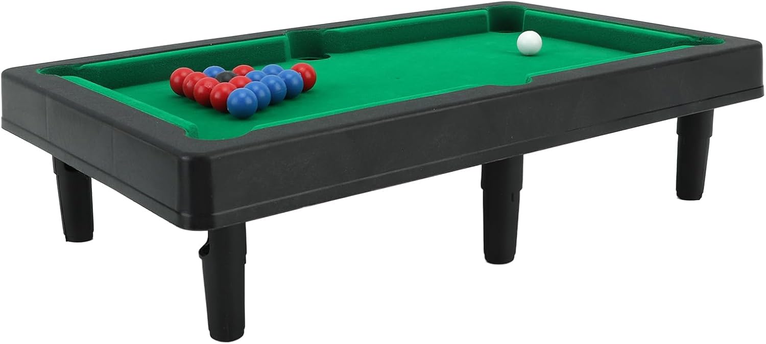DIMENSIONI COMPATTE: il tavolo da biliardo in miniatura è di dimensioni compatte per garantire che i più piccoli ne traggano il massimo. Facile da trasportare e da divertirsi in movimento, può essere giocato su quasi tutte le superfici piane della casa. ROBUSTO E DUREVOLE: il gioco di biliardo in miniatura combina un design robusto con materiali di prima qualità in grado di resistere a tutta la concorrenza. Ottimo per i bambini dai 5 anni in su, tiene i bambini occupati per ore lunghe ed emozionanti. COORDINAZIONE OCULARE-MANO: il mini tavolo da biliardo allena la vista e la coordinazione occhio-mano dei giocatori.Lascia che il tuo bambino usi le mani e il cervello, giochi in coppia, promuova la comunicazione e migliori le sue abilità sociali. RISPARMIO DI SPAZIO: il set da gioco da biliardo in miniatura consente di risparmiare spazio ed è adatto ai luoghi in cui non hai abbastanza spazio per un tavolo da biliardo di dimensioni standard, come una sala giochi o il pavimento di una camera familiare. GIOCATTOLO INTERESSANTE: il mini gioco di biliardo da tavolo è un fantastico per bambini per concludere compleanni, vacanze o come ricompensa. È un divertente e può essere utilizzato come fantastica aggiunta a qualsiasi scrivania.