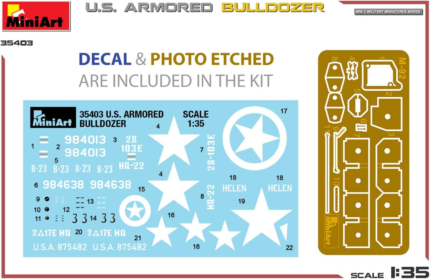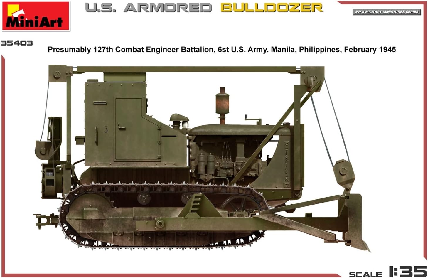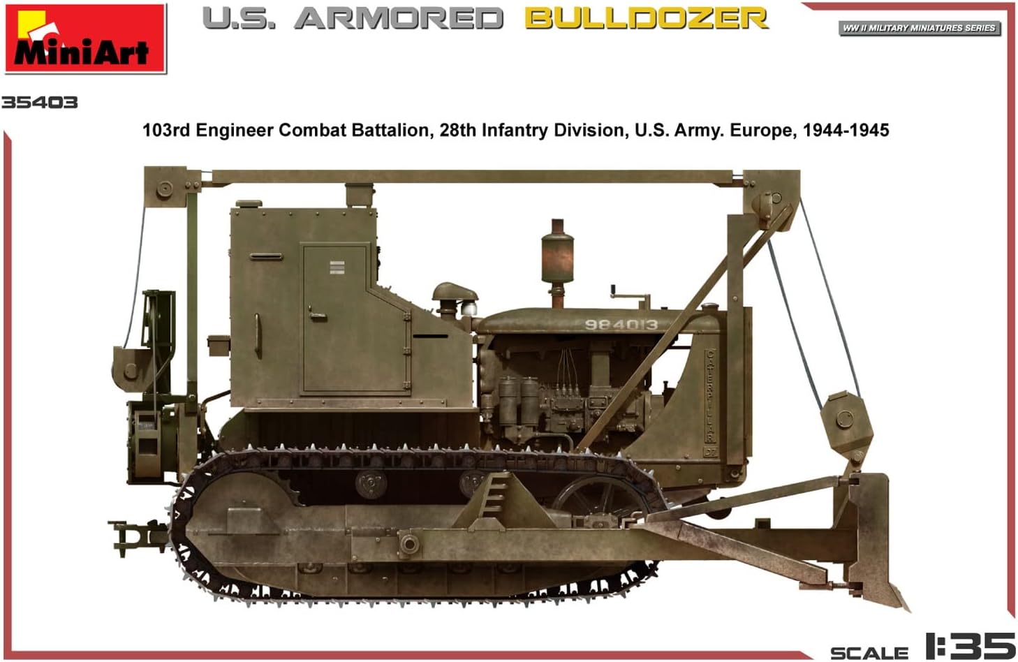 Miniart 1:35 - Bulldozer corazzato statunitense Kit modello in scala dettagliata Per collezionisti dai 14 anni in su Non è un giocattolo