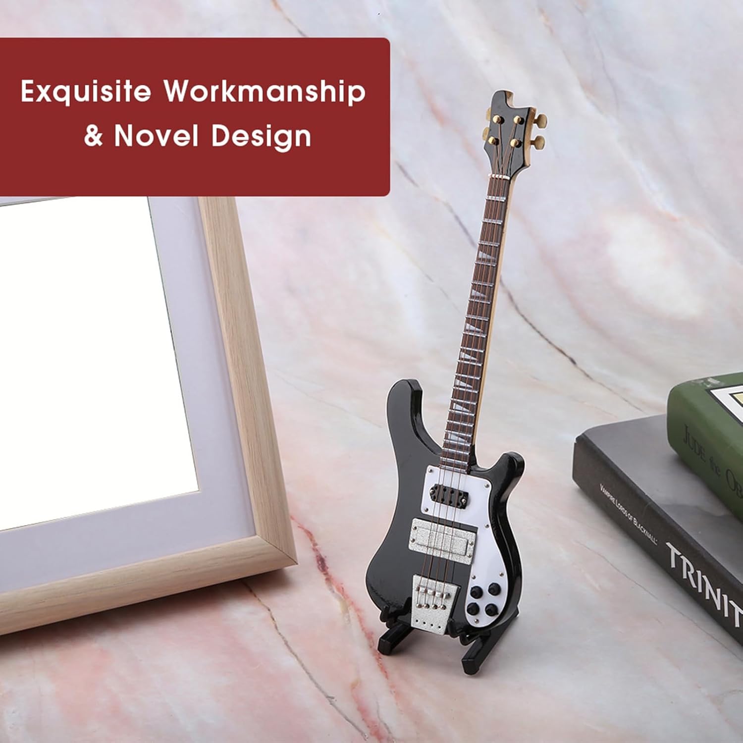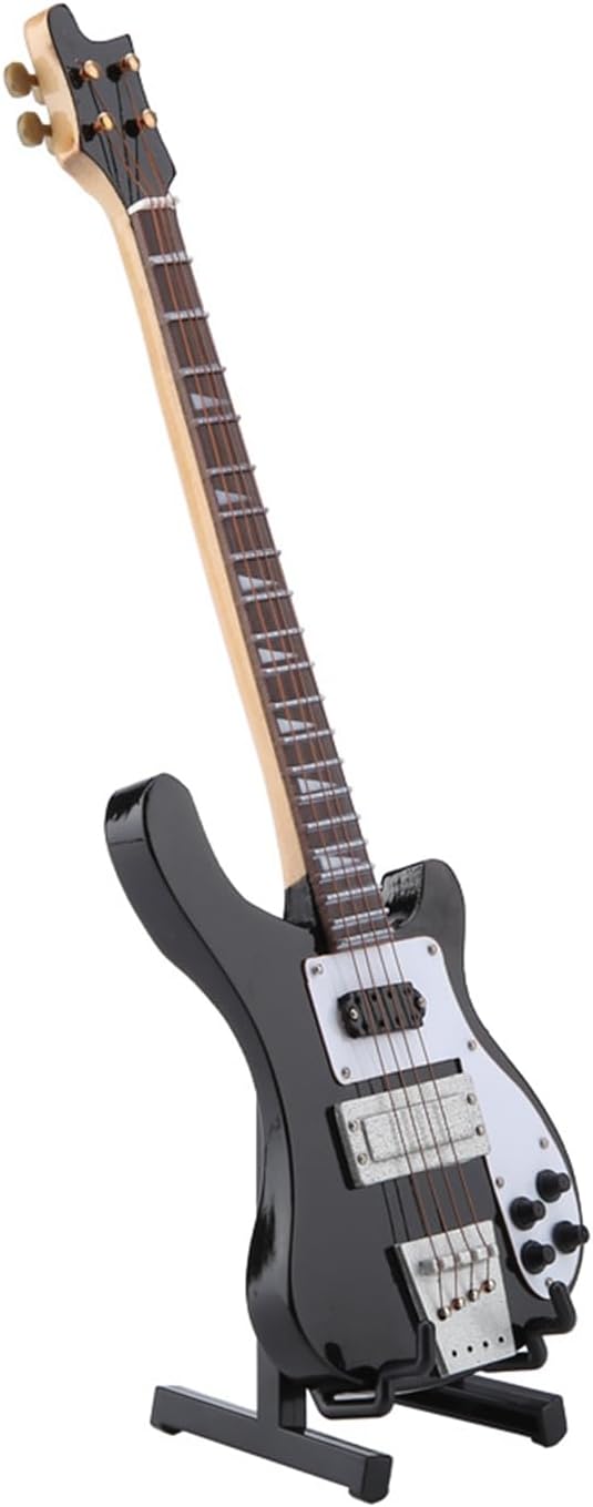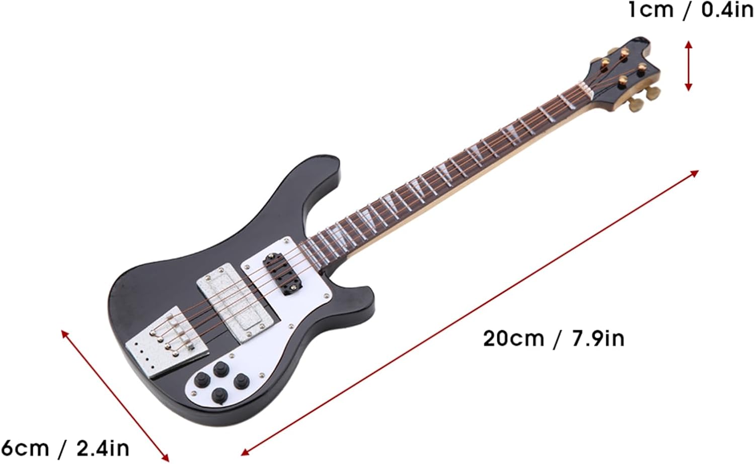 Materiale in tiglio con superficie laccata: questo basso in miniatura è realizzato in tiglio e presenta una superficie laccata, che lo rende un pregiato artigianato. Il tiglio conferisce al modello di chitarra una sensazione leggera ma solida, mentre la superficie laccata aumenta l'attrattiva visiva del modello musicale con un look unificato. Supporto incluso per un facile posizionamento: la chitarra in miniatura viene fornita con un supporto in modo che il supporto per chitarra elettrica possa stare saldamente senza supporto aggiuntivo. Ciò semplifica il posizionamento di una replica di chitarra in miniatura in vari luoghi come scaffali, scrivanie, comodini e sale da musica. Esecuzione squisita e design innovativo: il modello dello strumento presenta una lavorazione squisita con una straordinaria attenzione ai dettagli, dalle corde alla testata del basso. Ogni piccola parte è realizzata con cura per imitare l'aspetto di un vero basso, creando un'incantevole miniatura. Il design innovativo rende la chitarra in legno in miniatura un pezzo decorativo unico. Decorazione legata alla musica: questo mini strumento musicale non è solo un potenziale ma anche una grande aggiunta alle decorazioni legate alla musica. Il modello di strumento musicale può completare spazi come studi domestici, scaffali per strumenti o camere da letto degli amanti della musica, aggiungendo un tocco di fascino musicale. Costruzione leggera per un'esposizione flessibile: l'ornamento dello strumento ha un design leggero e pesa circa 184 g, rendendo l'ornamento da esposizione facile da spostare e organizzare. Puoi posizionare facilmente la statuetta da collezione su scaffali stretti, impilarla con altri piccoli pezzi decorativi o persino aggiungerla a una vetrina a tema musicale