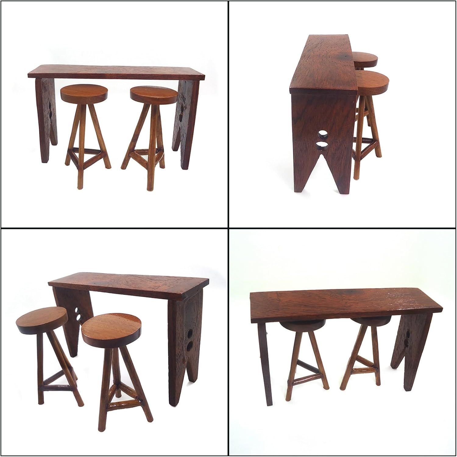 Un modello giocattolo, non un vero mobile da tavolo/sgabello È molto pratico per gli amanti dei modelli che amano i decoratori delle case delle bambole L'eccellente modello di aspetto è molto vicino alla realtà. Ottimi oggetti di scena fotografici Il nostro set di bancone e sedie Taproom per case delle bambole è adatto per case delle bambole 1:12 Realizzato con materiali in legno, questo bancone Taproom è visivamente accattivante