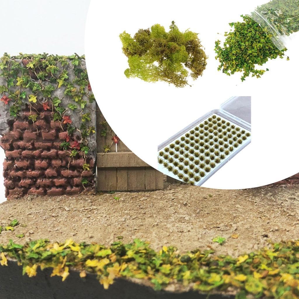 【APPLICAZIONE】Il modello di grappolo di fiori e il modello di mini foglie sono adatti per il layout ferroviario, lo scenario ferroviario, il modello in miniatura, il modello di tavolo di sabbia del treno, il modello architettonico, la decorazione di scene di soldati, la decorazione di micro paesaggi, il paesaggio di scenari architettonici fai-da-te, il modello di edificio, ecc. 【MATERIALE】Il modello di erba in miniatura è realizzato in materiale di resina, di piccole dimensioni, leggero 【CIUFFI D'ERBA IN MINIATURA FAI DA TE】Modello di ciuffi d'erba fai da te, decorazione paesaggistica in miniatura. Il design accattivante e i dettagli realistici possono rendere le tue miniature più vivide. 【Utilizzo】Il modello di ciuffi d'erba rende la scena più realistica, adatta per case delle bambole, micro paesaggi, giardini delle fate, modellini di treni ferroviari, ecc. 【IL PACCHETTO INCLUDE】1 scatola di modello di ciuffo d'erba in miniatura (104 pezzi), modello di erba di sabbia da 500 ml, modello di foglie in miniatura da 33 ml