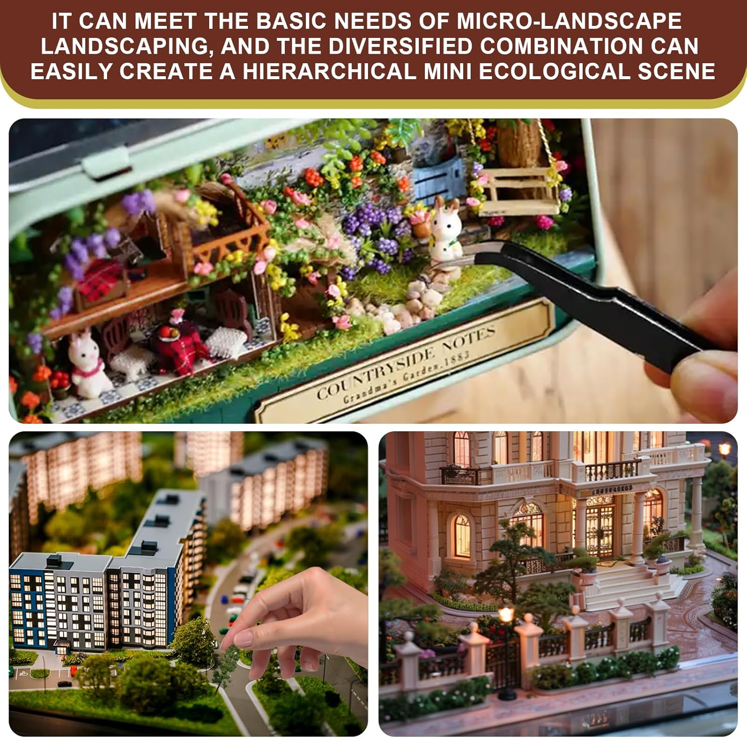 Ricco Contenuto del Set: Diorama modellismo polvere d'erba di alta qualità, pietre dalla texture naturale, modelli di alberi simulati, prati realistici e 50 ml di colla professionale trasparente per modellismo. Crea effetti paesaggistici architettonici ricchi e dettagliati Squisita Polvere D'erba + Pietre a Grana Piena: Il design del paesaggio è stato accuratamente progettato, con foglie morte*1 e polvere d'erba naturale giallo-verde*1, che non sbiadisce facilmente. Le pietre sono di dimensioni uniformi, la texture della superficie è realistica e i modelli di alberi presentano rami e tronchi distinti con un forte senso di gerarchia Prato di Alta Qualità + Colla per Modellismo Scorrevole: La texture del prato è morbida e altamente simulata, facile da modellare e tagliare e può essere liberamente combinata. La colla per modellismo si asciuga rapidamente e può incollare saldamente componenti di modelli di materiali diversi Ricca Selezione di Materiali e Colori: Modellismo statico supporta combinazioni e sovrapposizioni flessibili, ti consente di liberare appieno la tua creatività, non solo per riprodurre paesaggi reali, ma anche per costruire un mondo in miniatura e soddisfare diverse esigenze di modellismo Ampia Applicazione: I paesaggi in miniatura sono adatti a vari campi professionali come la realizzazione di modelli architettonici, la progettazione del paesaggio, le dimostrazioni su tavoli di sabbia, ecc. e sono adatti anche agli appassionati del fai da te e agli amatori che vogliono creare micropaesaggi