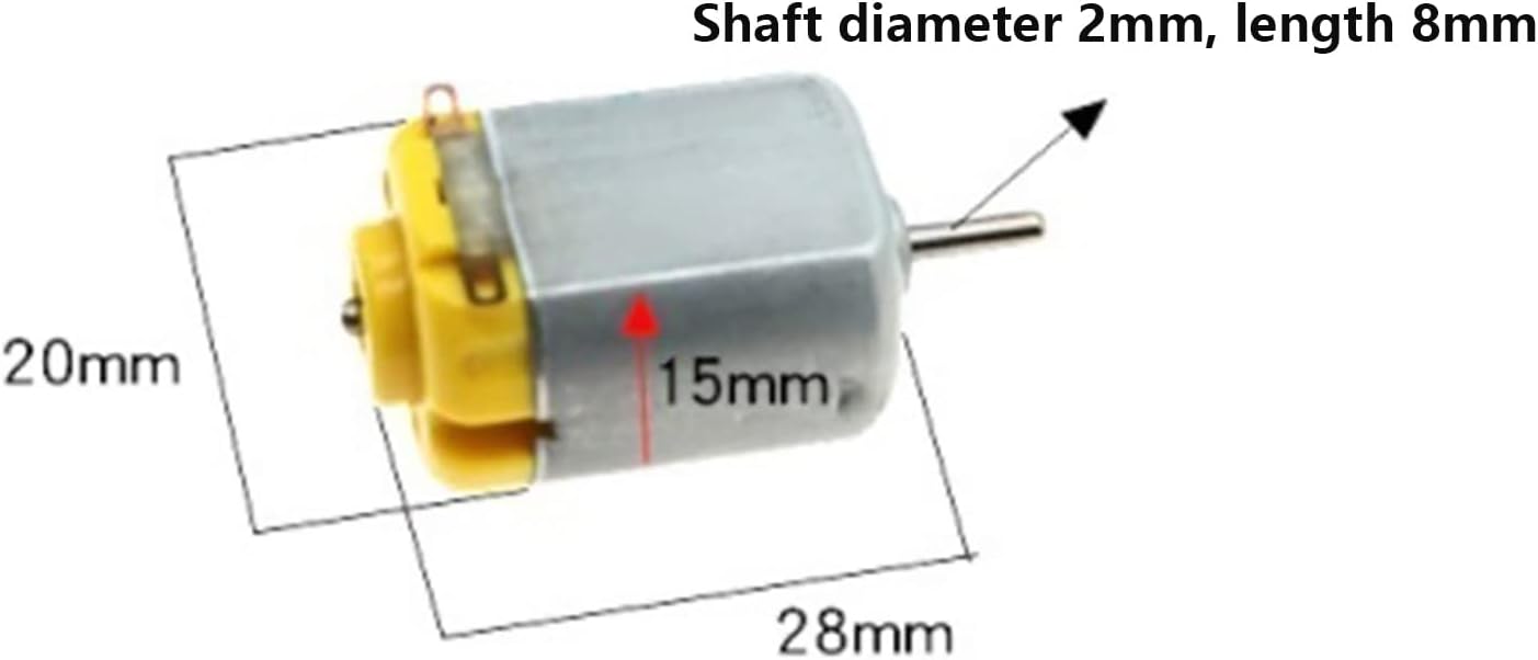 3V-9V DC Input Voltage: 10,000 RPM (depending on input voltage). Motor size: 15 x 20 mm, Shaft diameter: 2.0 mm, Shaft length : 8 mm This is a DC Small Motor Rated voltage: 6v Miniature DC motor is small in size and light in weight.