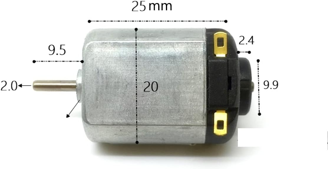 Applicable voltage: DC 2.4-7.4V Body Size: 25mm x 20mm , Shaft Size: 8mm x 2mm diameter, Weight: 17.2 grams This is a DC Small Motor Weight: 17.2 grams Miniature DC motor is small in size and light in weight.