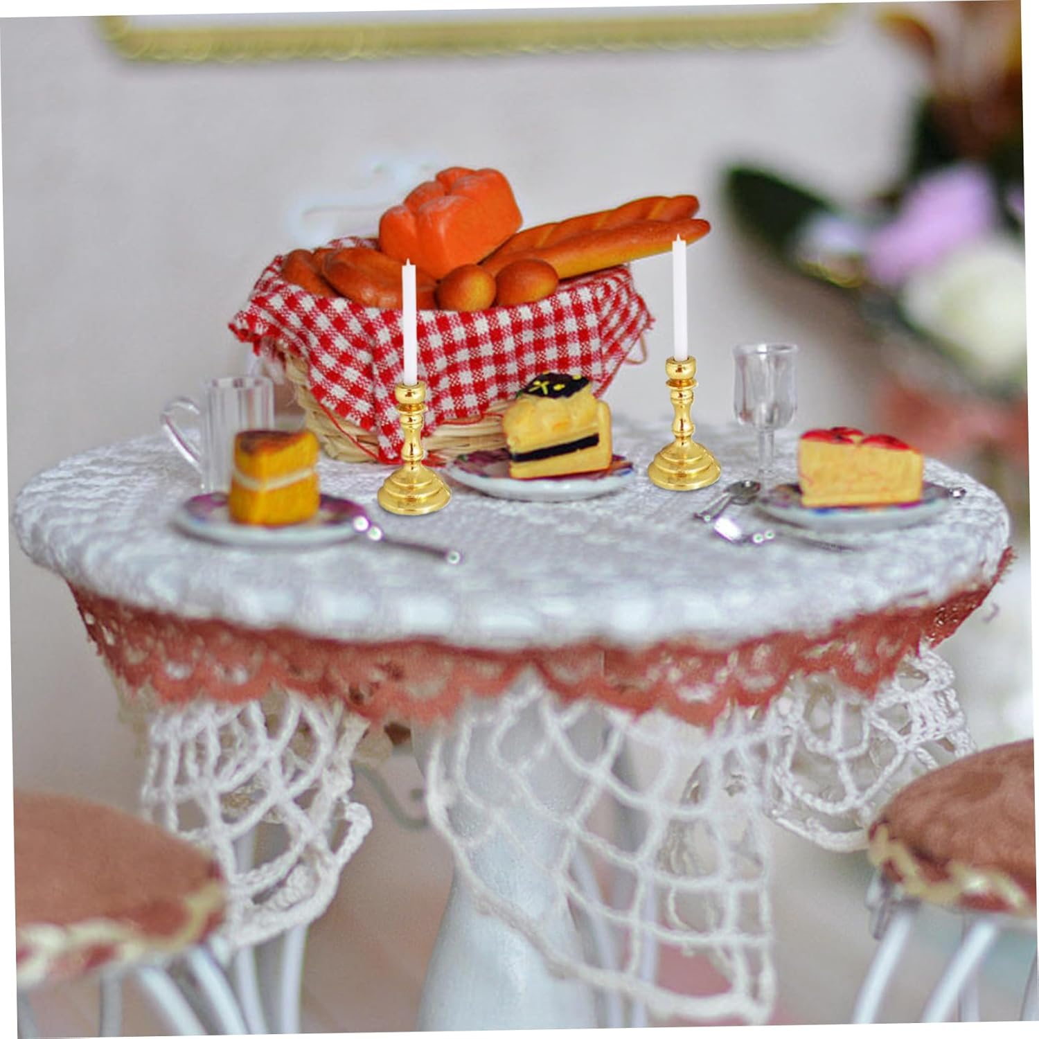 Ottimo per i progetti fai -da -te: questi candelabri servono come accessori fantastici per gli appassionati di fai -da -te, consentendo personalizzazione e creatività uniche nelle scene e nelle mostre delle case delle bambole. Decorazione versatile: ideale per vari display da tavolo, progetti di artigianato e collezioni, queste miniature possono elevare qualsiasi ambiente con il loro affascinante fascino estetico. Dimensioni perfette: ogni candelabra misura circa 4x1,2 cm (1,57x0,47 pollici), rendendoli ideali per le case delle bambole in scala 1/12, garantendo una perfetta adattamento nelle impostazioni in miniatura. Splendidamente dettagliato: i nostri candelabra e candele in scala da 2 pezzi 1/12 sono realizzati squisitamente, aggiungendo un tocco di eleganza e realismo a qualsiasi casa delle bambole o in miniatura. Materiale di qualità: realizzato in lega di qualità, queste miniature sono di lunga durata e progettate per resistere alla prova del tempo, garantendo che i tuoi accessori rimangano sbalorditivi per gli anni a venire.