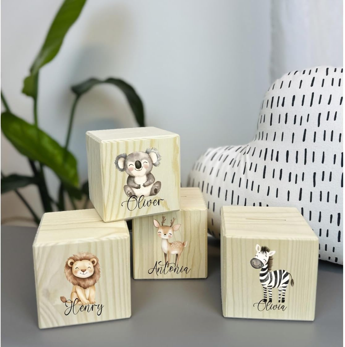 Salvadanaio in legno personalizzato per bambini: con il proprio nome diventa qualcosa di molto speciale. Clicca sul pulsante giallo “Personalizza ora” e crea un pezzo davvero unico. Design allegro e colorato: scatola risparmio per ragazzi e ragazze con stampa colorata di dinosauri con nome desiderato. Porta il buon umore nella cameretta di ogni bambino ed è una vera attrazione. Impara a risparmiare in modo giocoso: rendi divertente contare e conservare le monete. Con chiusura nella parte inferiore per prelevare facilmente i soldi senza rompere il salvadanaio. Idea regalo per ogni occasione: regala ai bambini un regalo davvero speciale e personale. Regalo personalizzato per bambini per nascita, battesimo, compleanno, Natale ecc. Ideale anche per confezionare e regalare un regalo in denaro. Prodotto naturale sostenibile e stampa a misura di bambino: robusto e durevole, così potrai godertelo a lungo. Colorato e con speciale stampa UV adatto a tutte le età dei bambini. Inchiostro certificato secondo gli standard dei giocattoli per la tua sicurezza. GREENGUARD Certificazione Gold per proteggere il nostro ambiente.