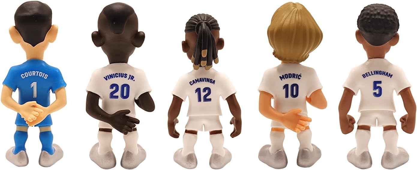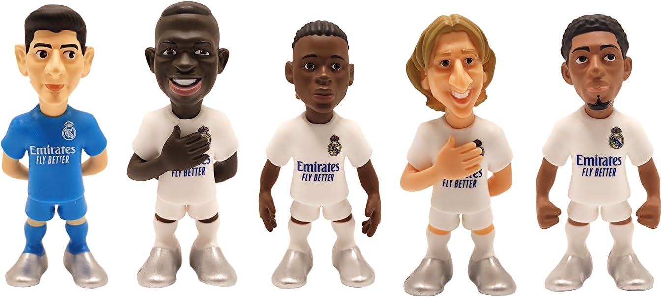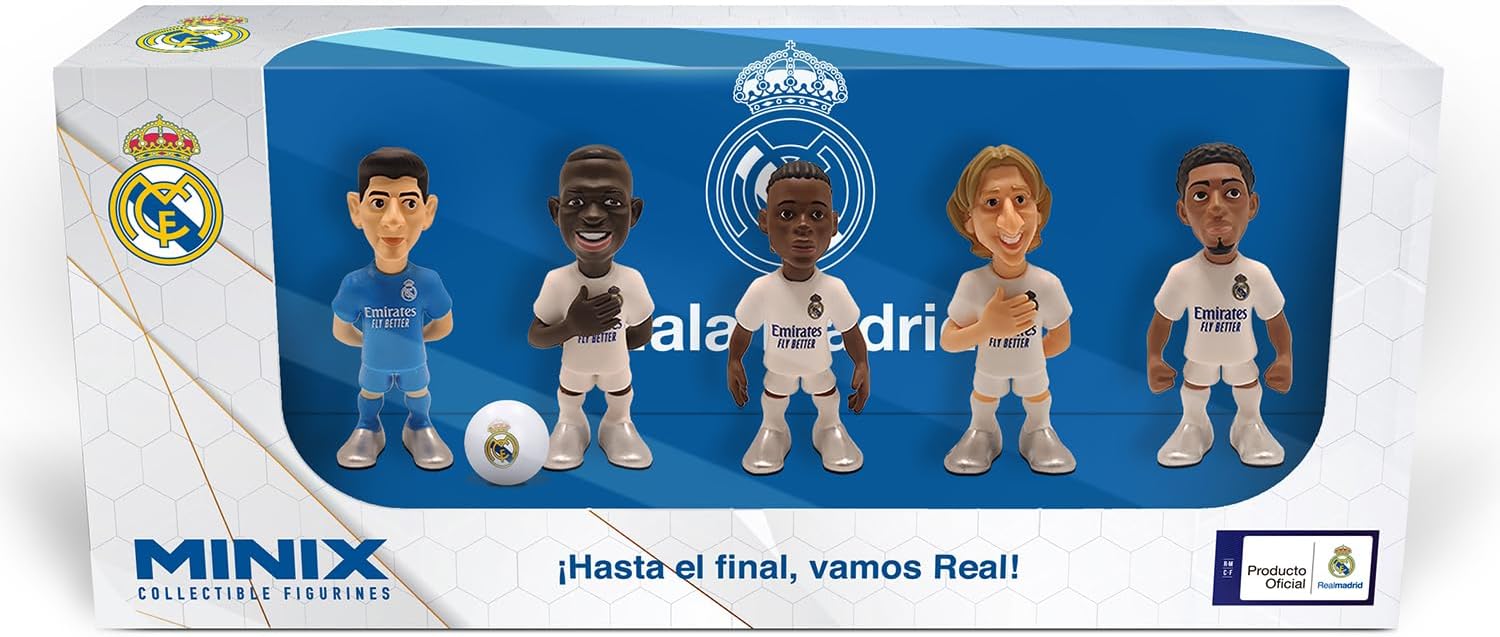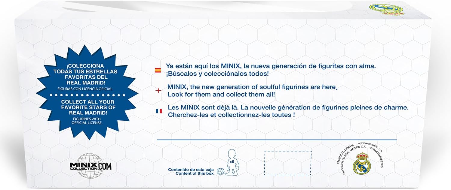 Minix - Set di 5 giocatori (Courtois / Camavingham / Modric / Vinicius / Bellingham) con licenza ufficiale Real Madrid Statuine in PVC da 7 cm di altezza Venduta nella sua scatola di esposizione all'effigie del club Colleziona le leggende più grandi del calcio con Minix Le tue emozioni più grandi da collezionare in formato Minix!
