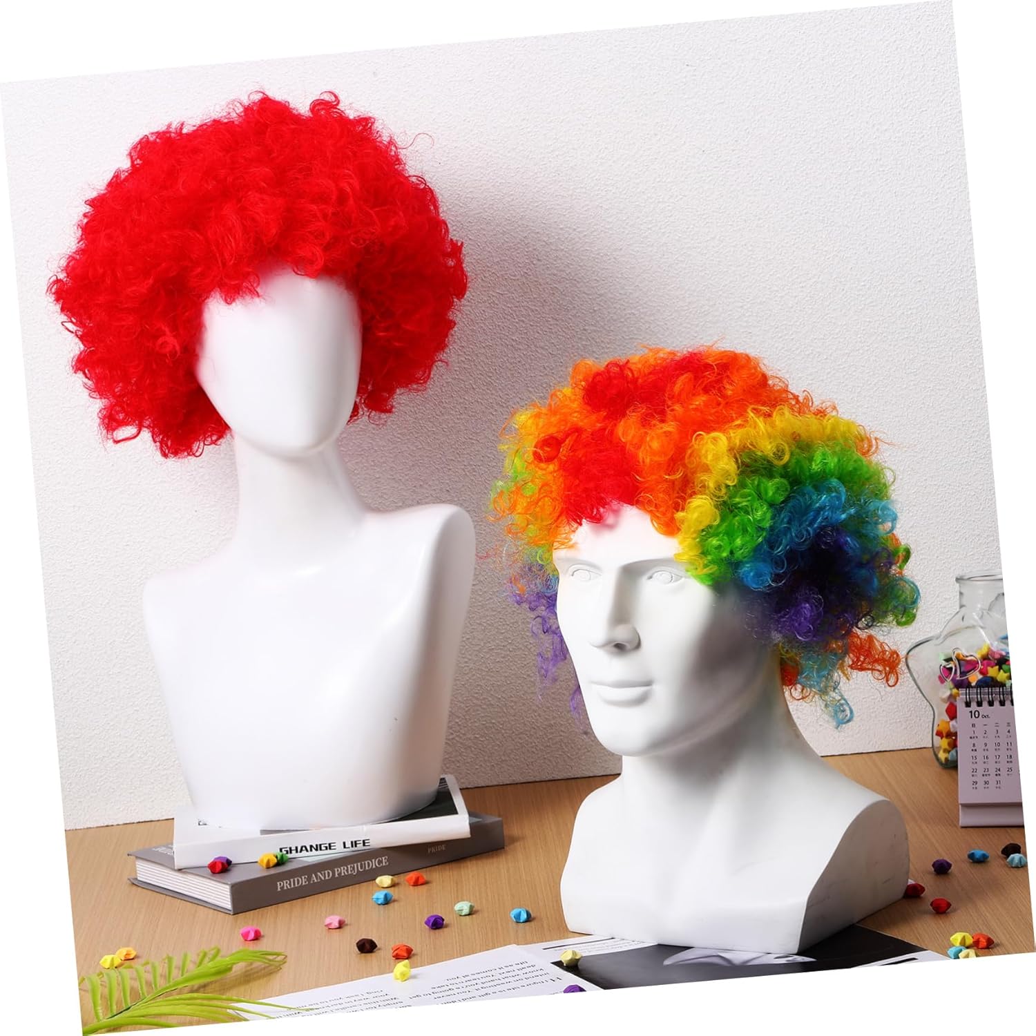 dei pacchetti 2 parrucche Caratteristiche - Morbide e comode: le parrucche sono leggere e morbide, non appesantiscono il tuo viso e non si aggrovigliano facilmente. -Materiale: seta K, seta P Parrucche da clown di Halloween - Acconciature fai da te: queste parrucche possono essere tagliate, acconciate e tinte a tuo piacimento, consentendoti di creare acconciature da clown uniche. - Dimensioni: 30,00X24,00X13,00 cm / 11,79X9,43X5,11 pollici costumi a tema carnevalesco - Stili diversi: sono disponibili diversi per permetterti di cambiare facilmente stile e soddisfare diverse esigenze. Parrucche unisex. - Facile da indossare: non è necessario preparare altri strumenti per indossare le parrucche, nessun danno alle radici dei , parrucche cosplay colorate comode e veloci per la discoteca. - Adatto a varie occasioni: puoi indossare le parrucche in varie occasioni, come Halloween, feste in maschera, giochi di ruolo, ecc. parrucche da festa per donne. -Colore:Parrucche divertenti per più feste Descrizione della merce Parrucche pazze. Realizzate con seta k e seta p di qualità, le parrucche sono morbide, comode e facili da indossare. Parrucche divertenti. Le parrucche sono gli accessori perfetti per completare il tuo costume da clown! Queste parrucche vivaci e colorate sono progettate per renderti più divertente.