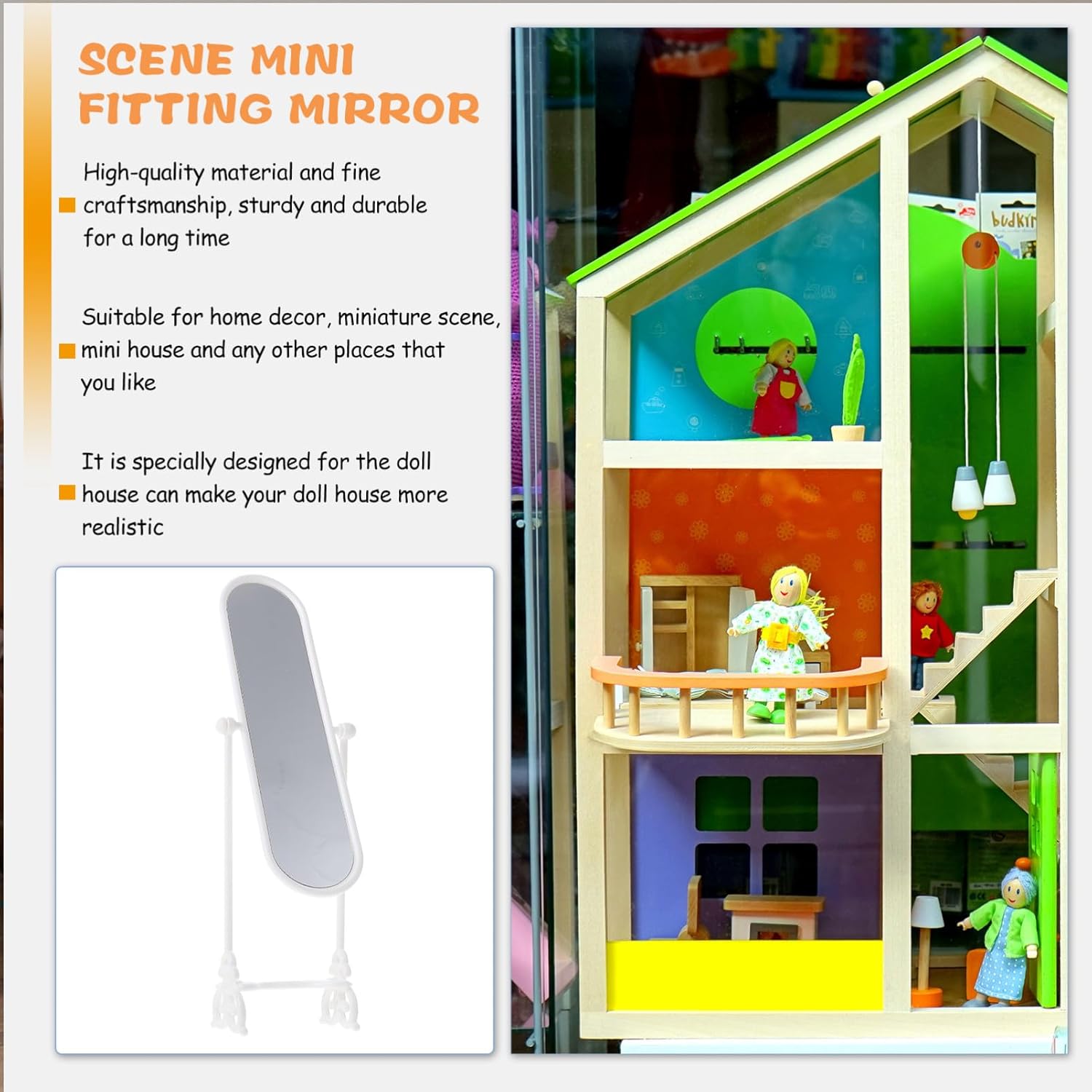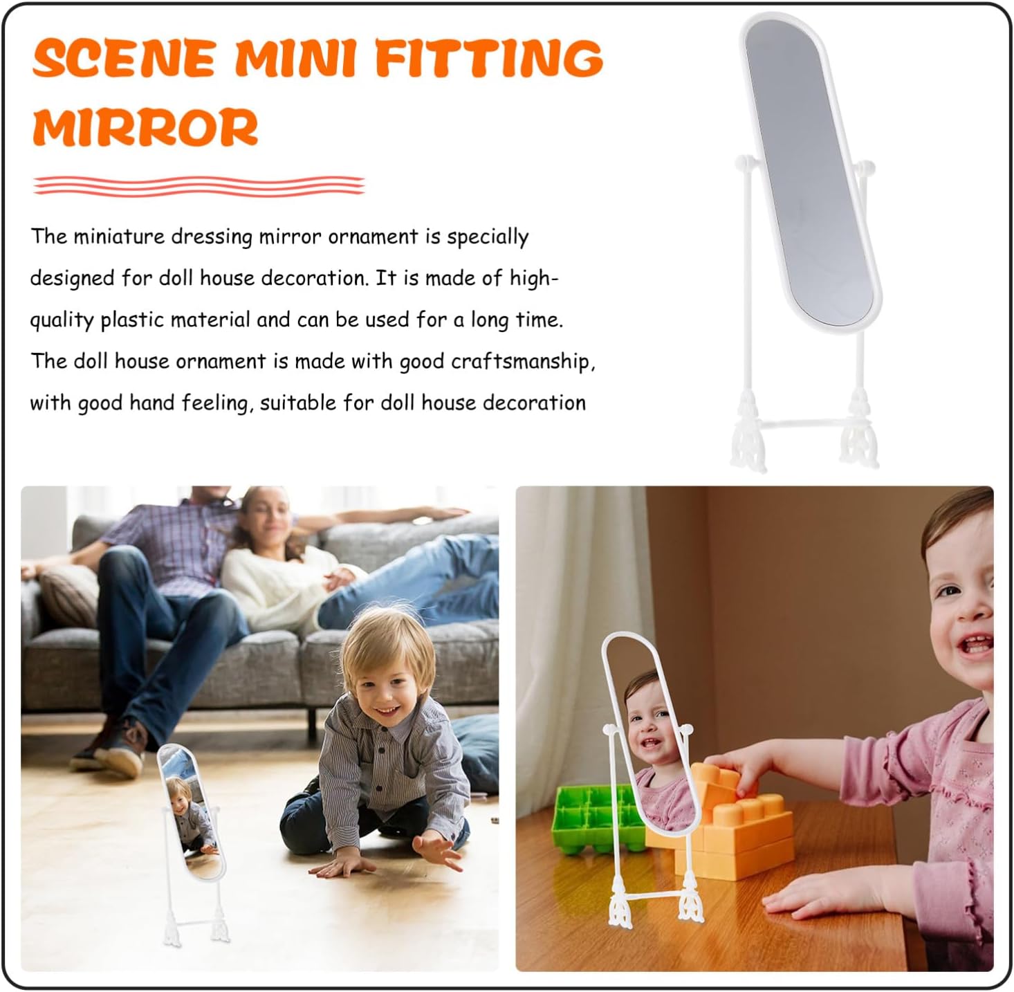 Specchio da pavimento in miniatura per casa delle bambole: di specchio in miniatura può decorare la casa delle bambole dei tuoi , dando un nuovo look stanza, decorazioni per casa delle bambole Casa delle bambole in miniatura con specchio: angoli arrotondati e bordi lisci, non facile da graffiare la pelle, casa delle bambole in miniatura con specchio Decorazione in miniatura: dimensioni ridotte e peso leggero rendono facile da trasportare e riporre, piccolo specchio Mini casa delle bambole con specchio da salone: può anche essere posizionata nella camera da letto come per rendere la stanza non più così monotona, mini arredamento per la casa Specchio per casa delle bambole in miniatura: è realizzato in materiale plastico e ha uno specchio per casa delle bambole