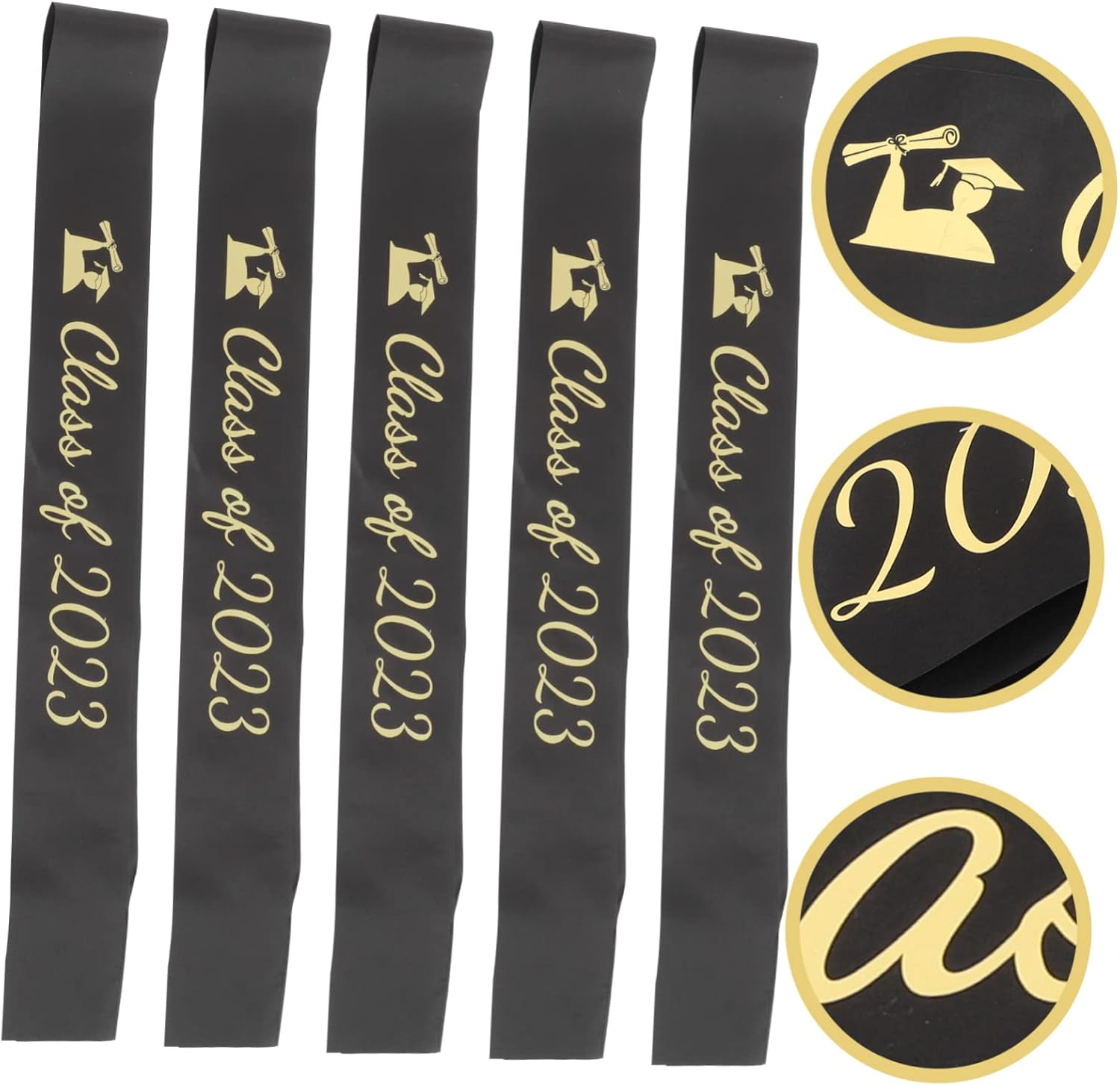 dei pacchetti 5 fasce per la laurea Caratteristiche - Materiale: Decorazioni di laurea in tessuto - : Stola da laurea unisex nera - Dimensioni: circa 80,00X9,50X0,10 cm/31,44X3,73X0,04 pollici Tracolla per festa di laurea - La fascia può anche contribuire a dare un tocco e formale alla stagione delle lauree. Progettata appositamente con motivi per la laurea del 2023. Nastro per la laurea. - Una fascia è un accessorio indispensabile per la cerimonia di laurea. Vale la pena averla, non solo come decorazione, ma anche come per la festa di laurea. - Fascia per studenti per la festa di laurea, realizzata con materiali di qualità e resistenti, sicura e pratica per un uso duraturo. - Taglia unica, questa fascia è adatta sia per uomini che per donne, versatile e pratica. Ultimo anno - Design dal motivo unico, può rendere la tua cerimonia di laurea più attraente e speciale con un nastro per la spalla per la laurea. Descrizione della merce Stola di laurea stampata con lettere a tema laurea, colori brillanti, la rendono più attraente e originale. La fascia per la laurea e la laurea per articoli per feste stanno benissimo con qualsiasi cosa tu indossi, lui o lei distinguerà tra la con questo bellissimo bomboniera di laurea. Accessori per feste realizzati con materiale di qualità che può essere utilizzato a lungo termine