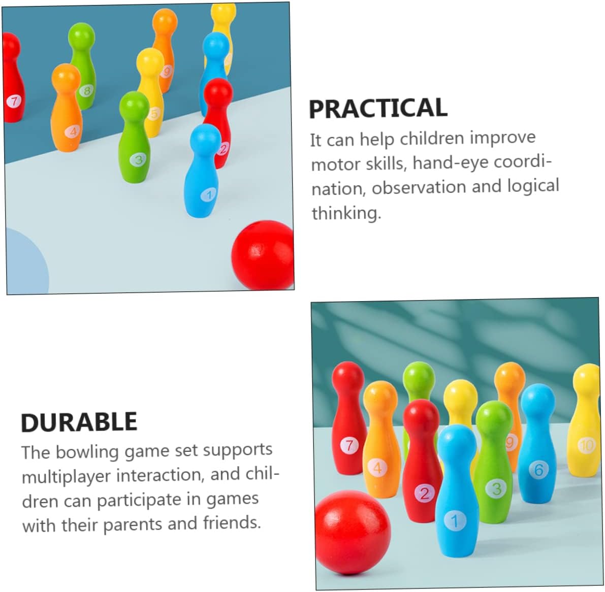 Giocattoli da bowling: utilizzando materiale in legno di alta qualità, è sicuro e comodo per i bambini giocare, bowling al coperto Bowling per bambini: promuovi lo sviluppo fisico, migliora il corpo del tuo bambino e aiutalo anche a giocare a bowling con i giochi per bambini: è ottimo per tuo figlio allenare le sue capacità di osservazione e la coordinazione occhio-mano. Aiuta anche a migliorare le proprie capacità matematiche, strategiche e logiche. Mini bowling con palline da bowling: appositamente progettato per i bambini, piccolo e facile da usare, che porta gioia ai bambini, giocattolo con palla da bowling Giochi da bowling: con superficie liscia e senza sbavature, in modo che il pavimento e le mani dei tuoi bambini non vengano feriti durante il gioco, giocattoli da bowling