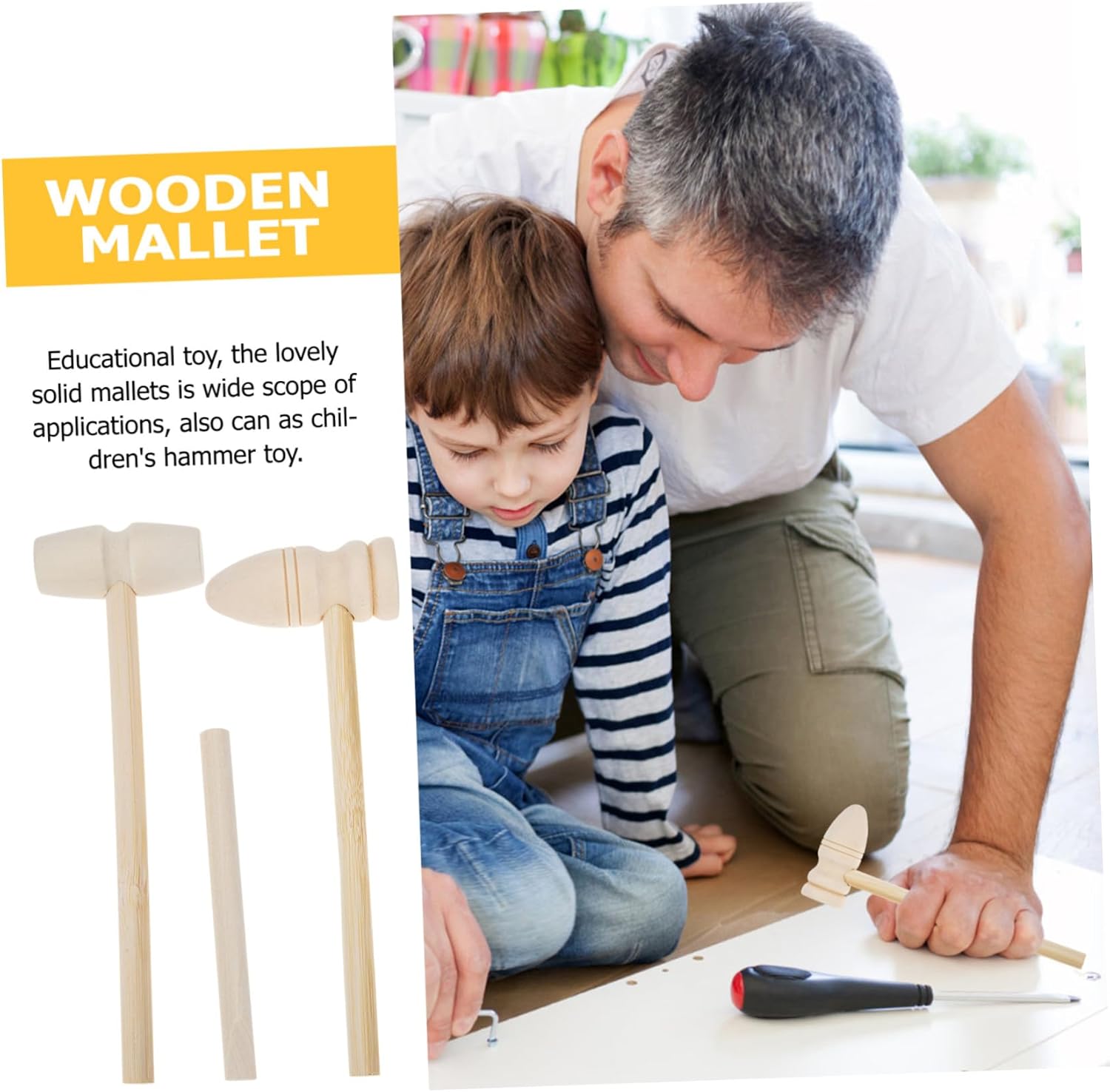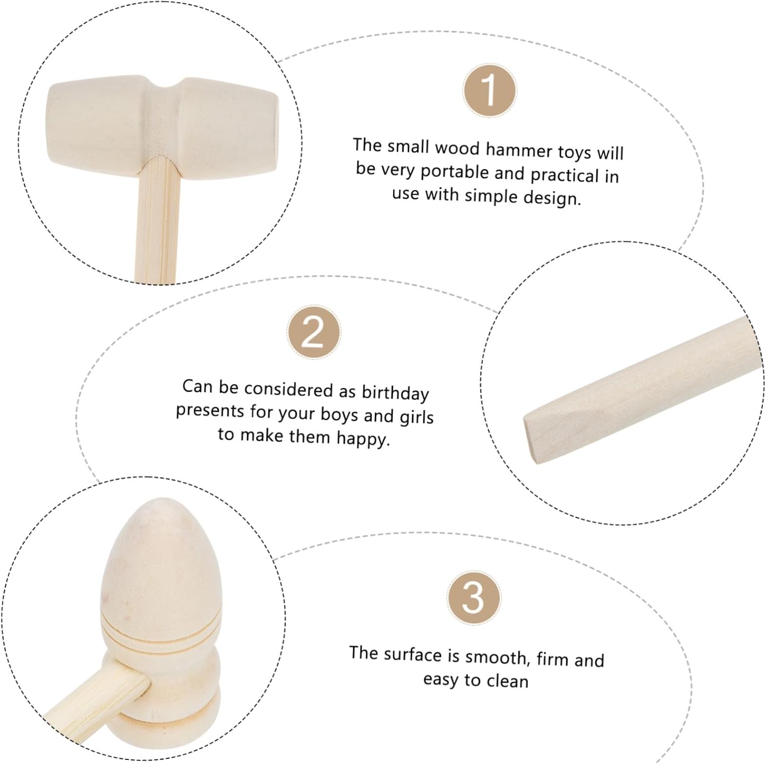 Martello per bambini: buona resistenza allo scivolamento, portatile per il trasporto e lo stoccaggio, comodo da tenere in mano, senza lesioni alle mani, martello per bambini Martello per bambini: realizzato in legno naturale con superficie liscia, sicuro, robusto e affidabile da usare, solido e da martellare, martelli per bambini Martello giocattolo Montessori: può essere considerato un regalo di compleanno per i vostri ragazzi e ragazze per renderli felici, piccoli martelli giocattolo da impatto: lavorazione tradizionale del legno ed eccellente fattura, liscio e facile da usare Usa piccolo martello Piccolo martello: realizzato in materiale di legno, solido e robusto e può essere utilizzato a lungo, colpendo il martello