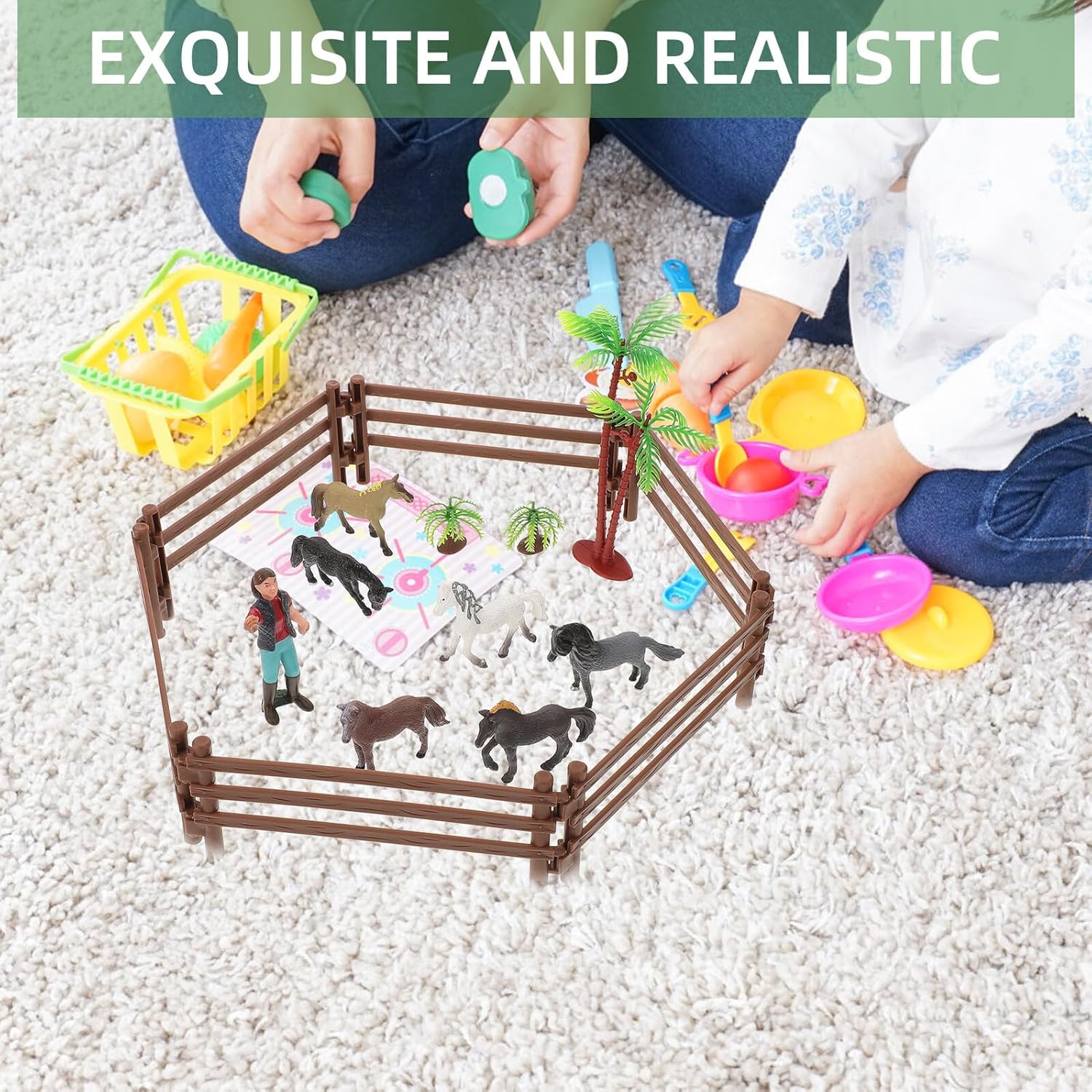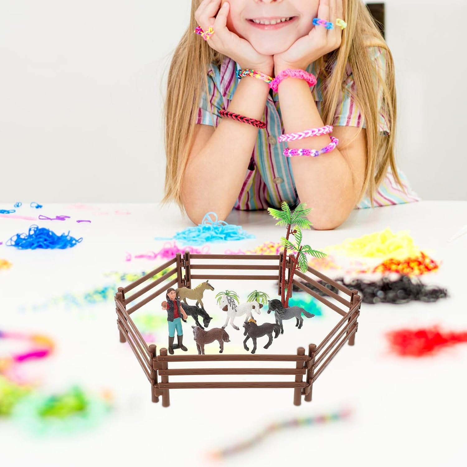 Miniature di animali da fattoria: i modelli in miniatura possono essere utilizzati come giocattoli per , oggetti di scena per la fotografia, accessori per la decorazione di stalle per cavalli in miniatura per case di bambole, modelli di stalle per giocattoli in miniatura Di recinto giocattolo: questo set di modelli di stalle per cavalli può insegnare loro alcune nozioni sulle stalle e anche esercitare le capacità pratiche, piccola statua di cavallo Mini recinzione: un set di giocattoli che può fornire informazioni sulla stalla dei cavalli sì che i imparino alcune nozioni sui cavalli, di recinzione in miniatura Recinto per giochi per : accessori realistici per modelli di stalle per cavalli con dettagli eccellenti e affidabilità nella lavorazione, giocattolo per piccoli Kit di fattoria in miniatura: questo set di giocattoli per stalle per cavalli include alcune miniature di cavalli realistiche, decorazioni per recinti e altri modelli di decorazioni per la disposizione delle scene, recinzione giocattolo per