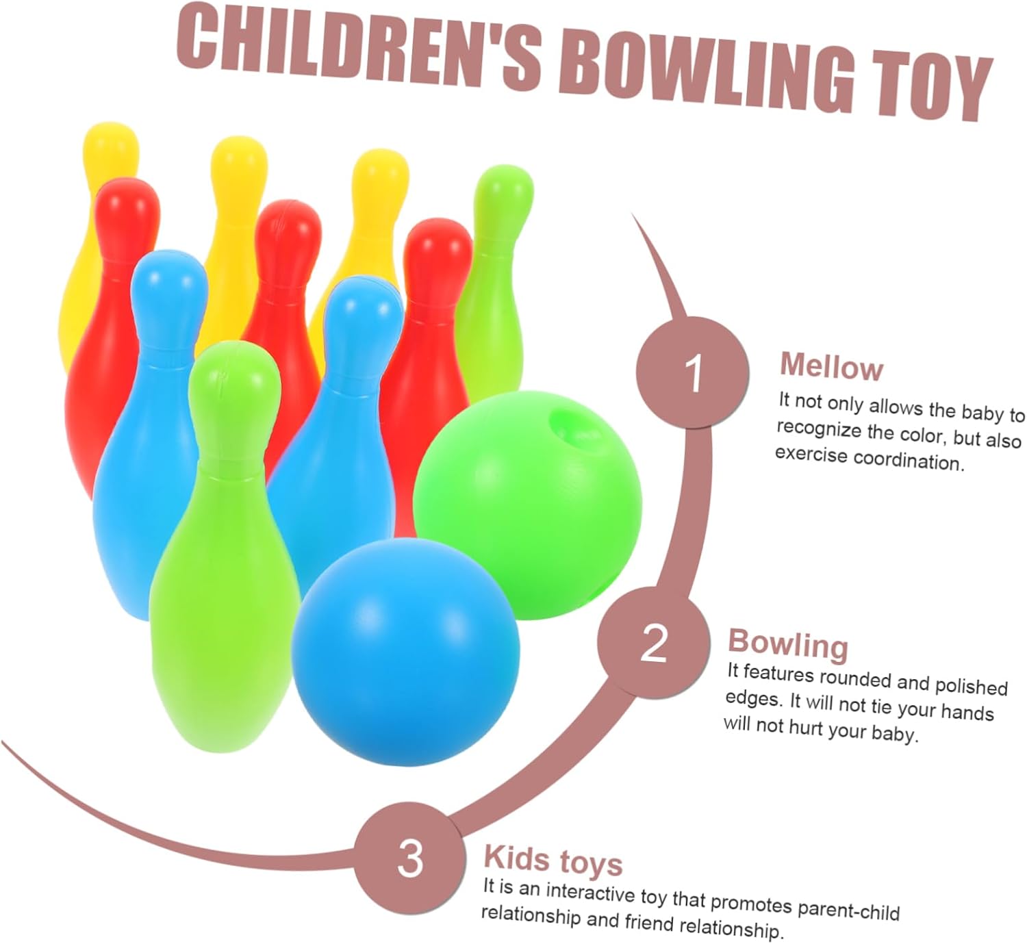 Bowling per interni: ha bordi arrotondati e lucidi in modo che le tue mani non siano legate e non ti faccia male Bowling: e giocattoli per bambini Palle da bowling per: è una palla da bowling interattiva che promuove la relazione genitore-figlio e la relazione di amicizia, giocattolo simulato per bowling per: non solo consente al bambino di riconoscere il colore, allena anche la coordinazione, bowling per bambini Bowling: allena l'attenzione e la comprensione della stanza di tuo figlio, giocattoli per bambini