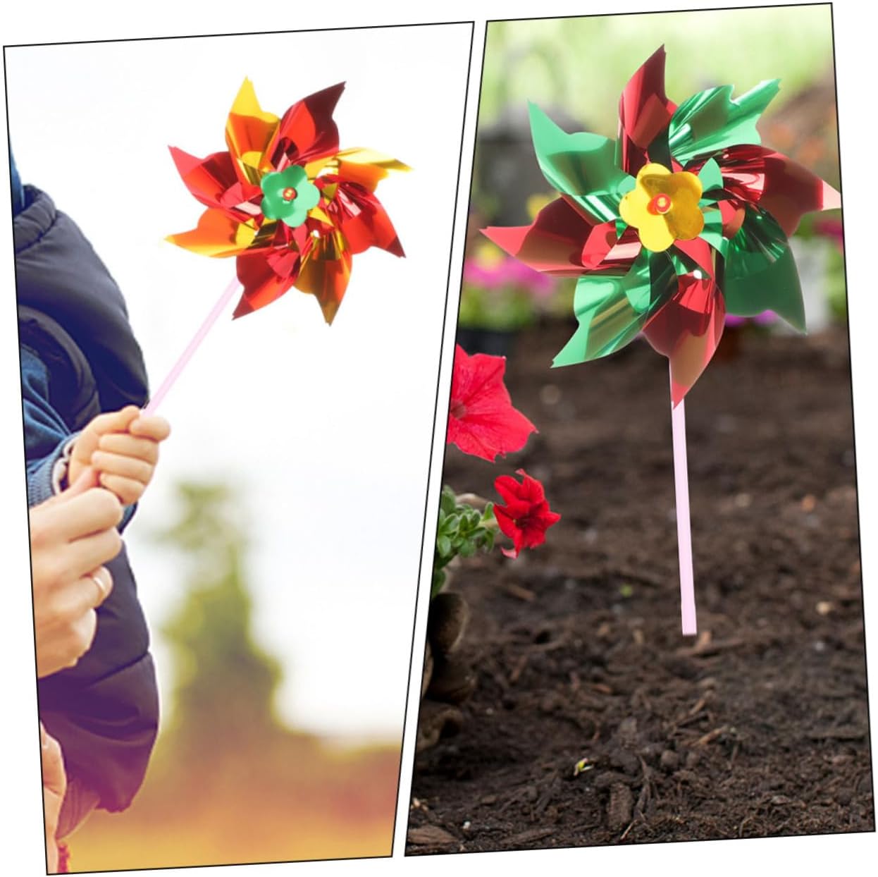Giocattolo con mulino a vento: questo giocattolo con mulino a vento può essere utilizzato per la visualizzazione sul balcone ed è adatto per l'uso esterno per avere una bella decorazione, un mulino a vento decorativo per il giardino Mulini a vento: questo giocattolo con mulino a vento è realizzato in plastica e ha una lunghezza maggiore. Usalo, piccolo mulino a vento Mulino a vento decorativo: questo mulino a vento ha un aspetto creativo, molto colorato e affascinante, per darti un divertimento visivo, Mulino a vento fai-da-te Giocattolo mulino a vento per: grazie alla giusta lunghezza e al peso leggero, questi mulini a vento sono facili da tenere e molto comodi da riporre. Decorazione del piccolo mulino a vento Decorazione del mulino a vento: realizzata in plastica, lavorazione dettagliata, non facile da strappare o rompere, puoi usarli a lungo, piccoli mulini a vento