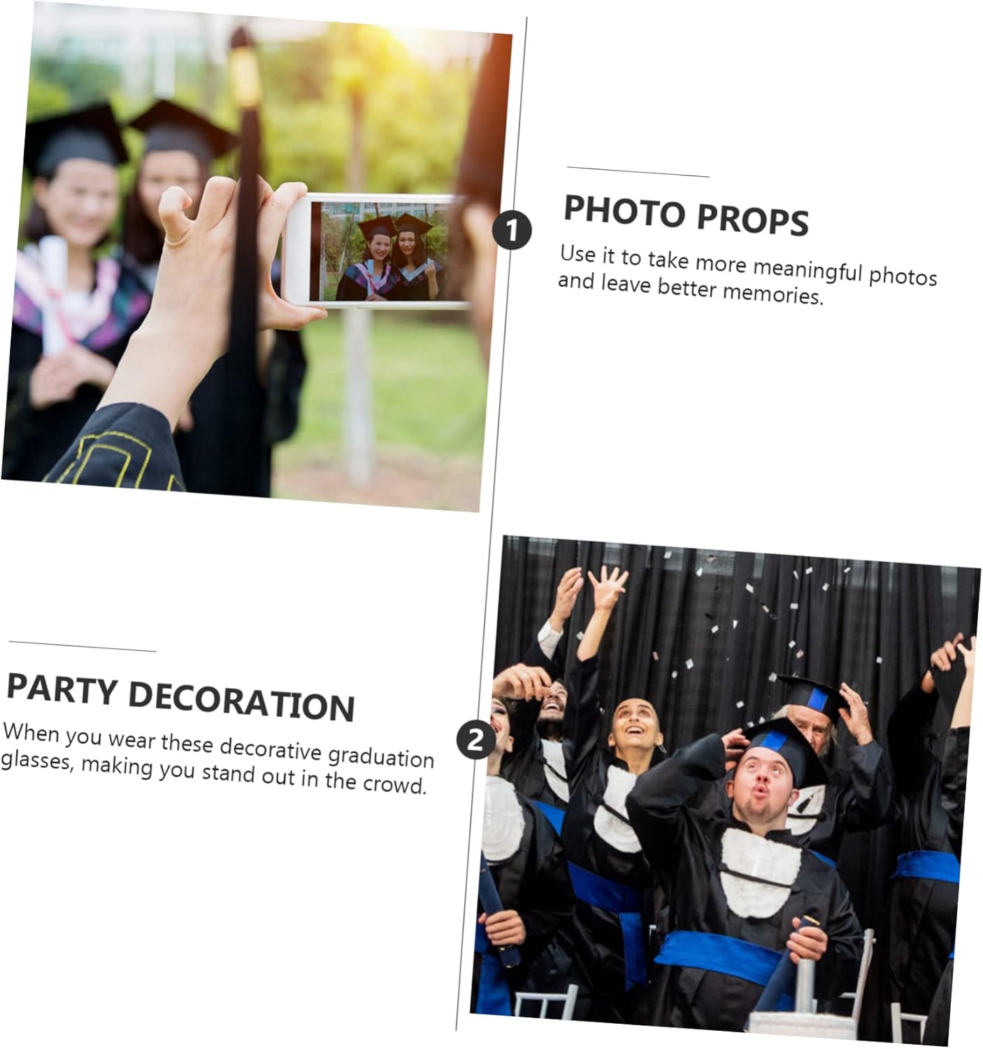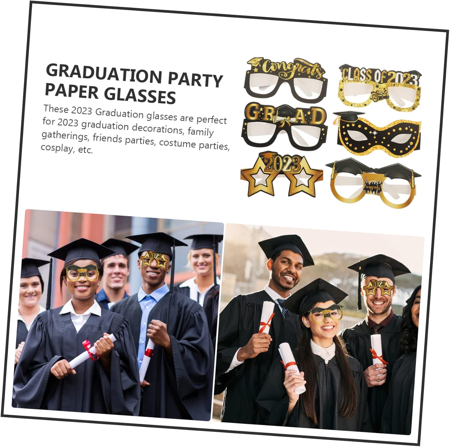 dei pacchetti 12 bicchieri da laurea Caratteristiche -Materiale: carta per da festa di laurea -Colore: oggetti di scena per foto di laurea in colori assortiti -Dimensioni: 14,50X11,50X8,00 cm/5,70X4,52X3,14 pollici, da festa - Un design interessante degli oggetti di scena per le foto renderà la festa più vivace e interessante, con pieni di risate. - Questi oggetti decorativi in sono realizzati in materiale cartaceo e non si danneggiano facilmente. da laurea - Quando indossi questi decorativi da laurea, ti distinguerai tra la degli di carta per feste. - Questi da laurea 2023 sono perfetti come decorazioni per la laurea 2023, riunioni di famiglia, feste con gli amici, feste in maschera, cosplay, ecc. come oggetti di scena per le foto di fine anno. - Adatti alle feste a tema laurea, possono aumentare l'atmosfera , rendendo gli decorativi per la laurea divertenti e interessanti. Descrizione della merce da ballo Sono ottimi oggetti di scena per le foto da indossare alla festa di laurea. oggetti di scena per foto della festa di laurea I diversi modelli di design nel set con una buona consistenza garantiranno la praticabilità e la popolarità per la festa di laurea e le decorazioni per le feste. da laurea Questi con elementi di laurea sono realizzati in materiale cartaceo, che è sicuro