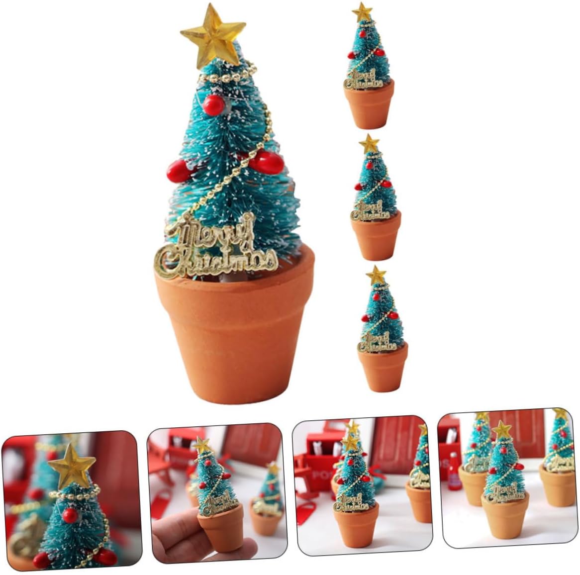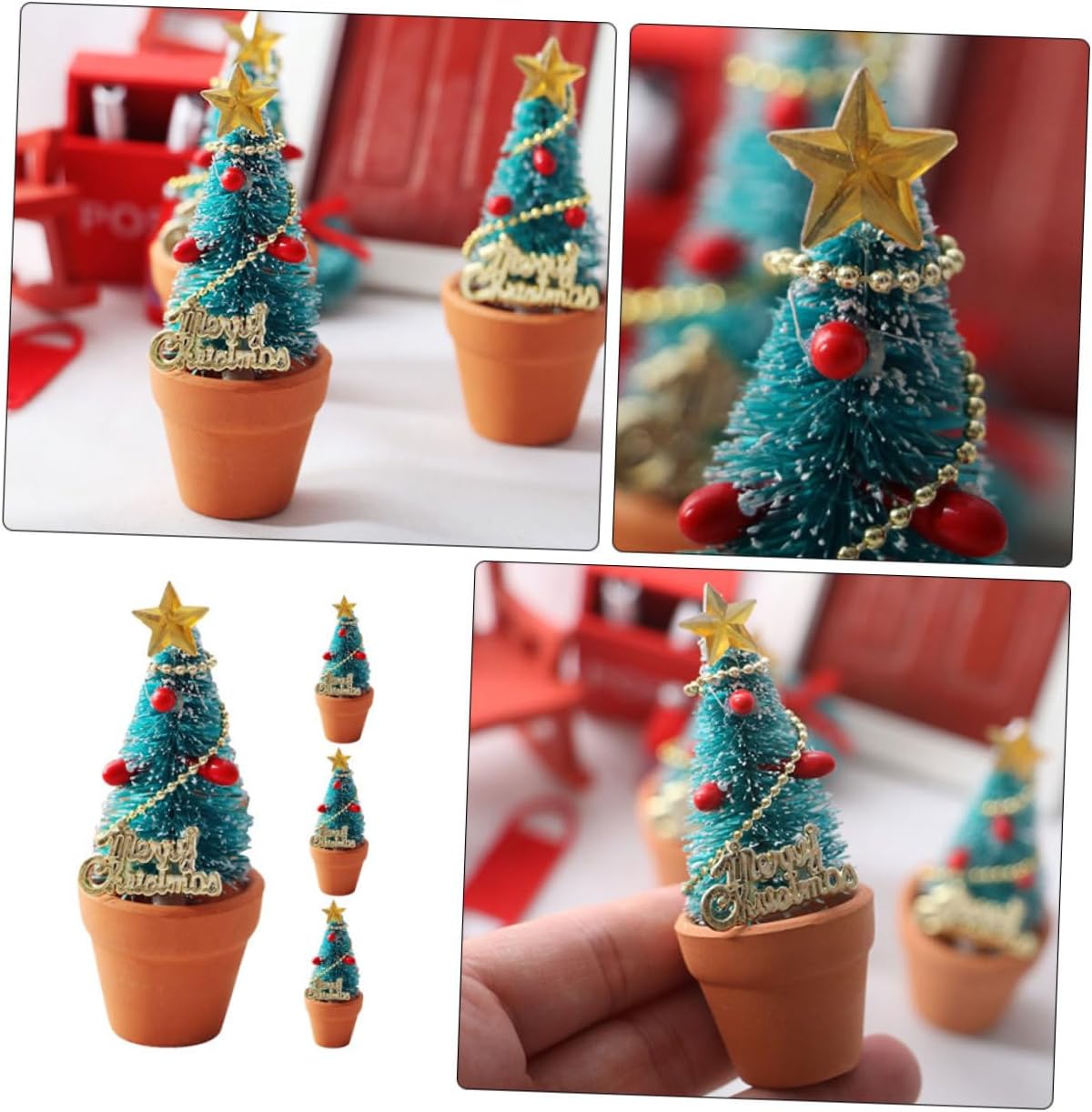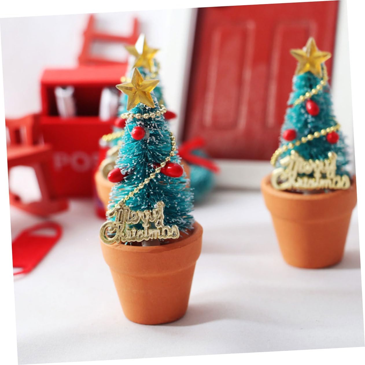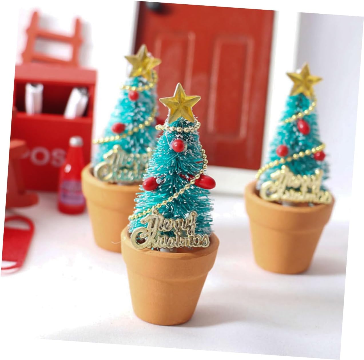 Mini alberi: piccoli, molto leggeri, rimovibili, possono essere posizionati ovunque nella tua casa delle bambole dove vuoi decorare, mini decorazione della casa delle bambole: fondo piatto, leggero, struttura ragionevole, facile e più comodo da posizionare sulla scrivania, non facile da ribaltare, alberi in miniatura per l'artigianato Minifigure: piccolo e compatto, questo albero di Natale micro paesaggio è realistico e simulato, decorativo e pratico, un albero in vaso con vaso di fiori: grazie La lavorazione di questo mini albero di Natale è realistica e può stare stabilmente sulla scrivania con un vaso di fiori. Mini decorazioni per la casa: con buona fattura e dettagli raffinati, questa mini casa delle bambole per alberi di Natale artificiali sembra realistica e vivace, mini ornamenti