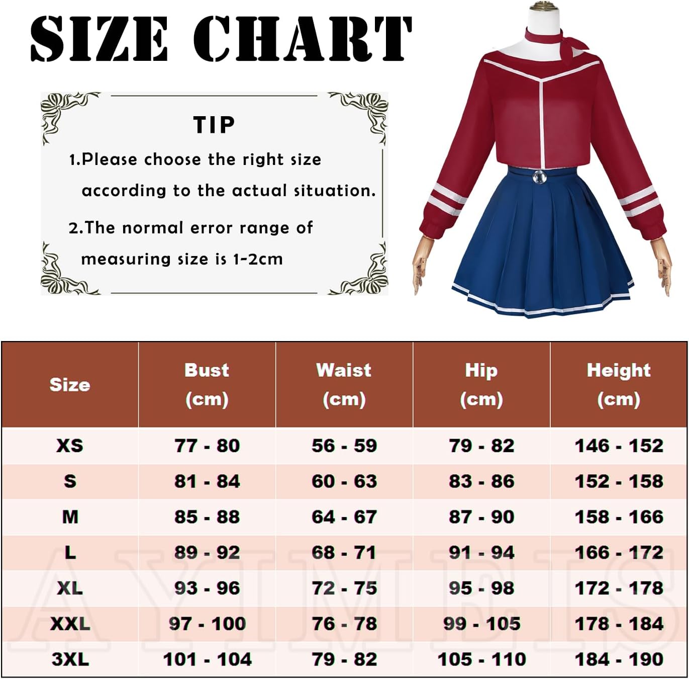 【Il pacchetto include】 - Camicetta *1, Gonna *1, Calze *2, Accessorio per il collo *1, Accessorio per capelli *5, Cappello *1, Guanti *2 (come mostra l'immagine). 【Materiale principale】 - Poliestere. Realizzato in materiale di alta qualità, morbido, comodo da indossare e abbastanza resistente. 【Caratteristiche dell'abbigliamento】 - Costume Cosplay di MiSide Mita, Ripristinando i dettagli dell'abbigliamento di un personaggio animato, con un set completo di accessori, consente di completare facilmente il gioco di ruolo. 【Ampia applicazione】 - Perfetto per feste in costume a tema, festival, Halloween, carnevali, spettacoli teatrali, fotografia, fumetti, cosplay ecc. 【Riferimento taglia】 - Per assicurarti di ottenere una taglia adatta a te, fare riferimento alla nostra tabella delle taglie prima dell'acquisto (ultima foto).
