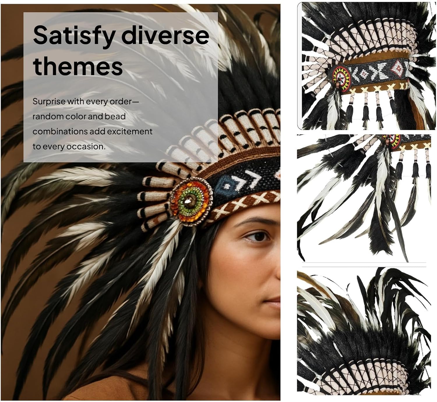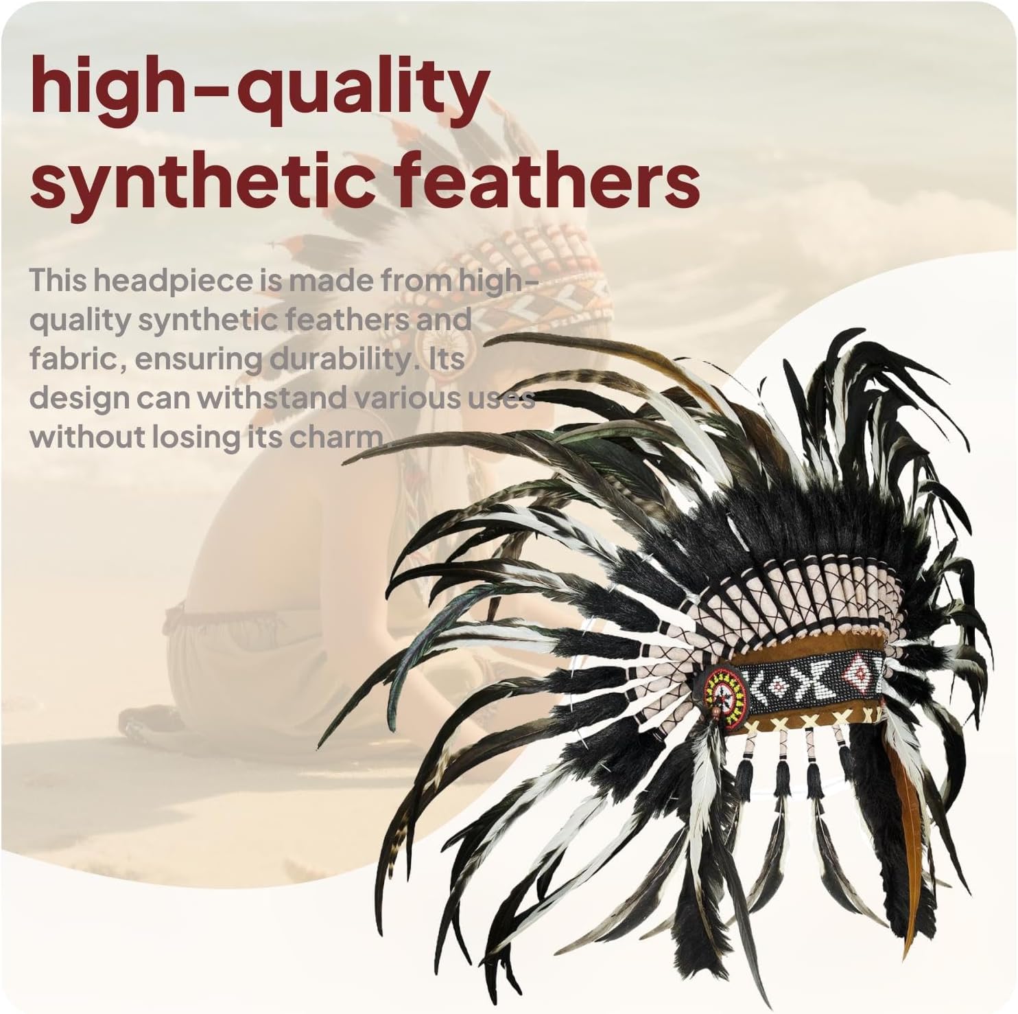 Panoramica del prodotto: Questo copricapo indiano in stile autentico presenta elementi di design tradizionali con piume multiple e dettagli decorativi. Il copricapo è realizzato per l'uso in costume e la rappresentazione culturale in vari contesti di performance. Specifiche tecniche: - Materiale: panno e piume artificiali. Tabella delle taglie: 40 cm x 55 cm. La confezione include: 1 copricapo indiano con piume. Nota: Si prega di considerare una leggera differenza nelle dimensioni a causa della misurazione manuale e delle differenze tra i monitor.