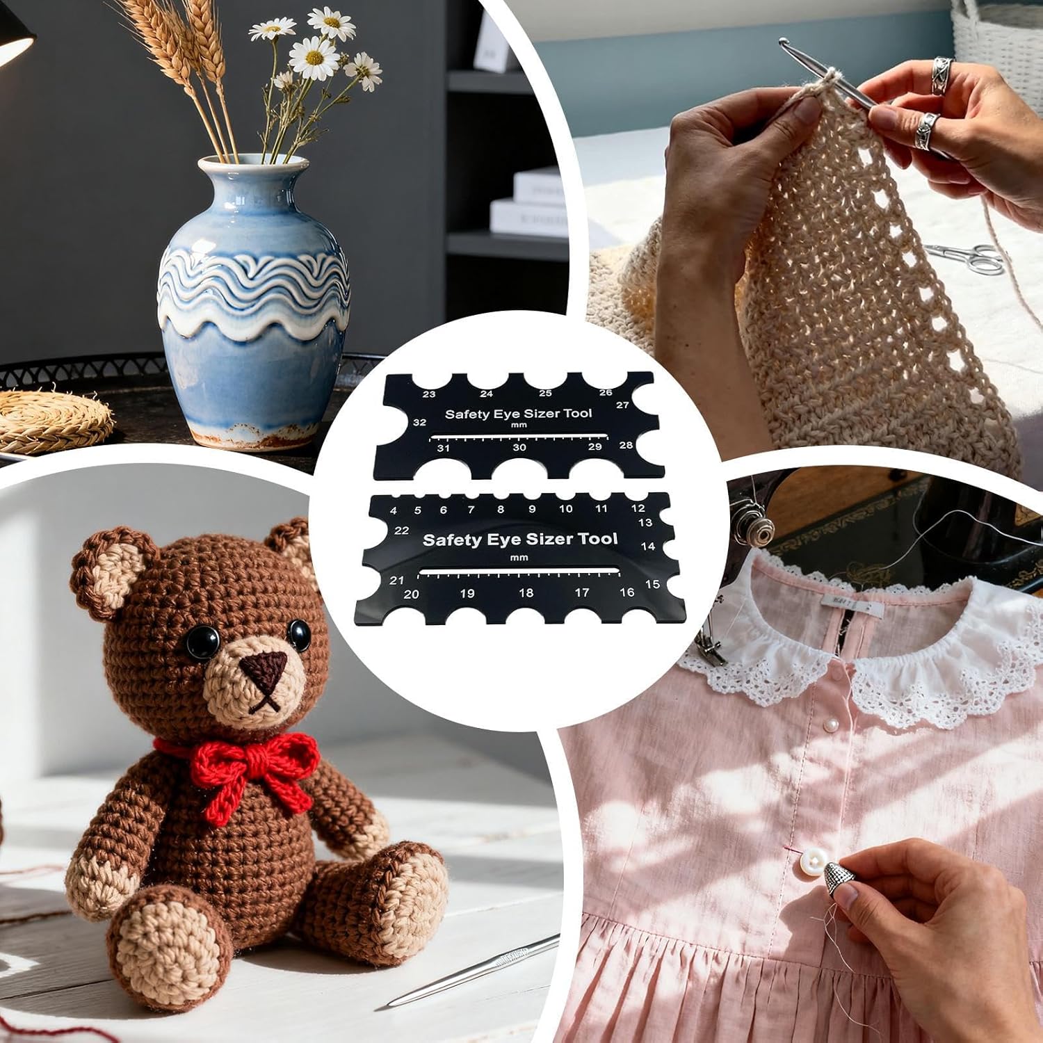 Lo strumento di misura dell'occhio di sicurezza per uncinetto è uno strumento indispensabile progettato per aiutare i creatori di bambole e gli appassionati di artigianato a raggiungere la perfetta vestibilità per gli occhi di sicurezza. Ideale per principianti e appassionati di artigianato esperti, questo strumento semplifica il processo di selezione e posizionamento degli occhi di sicurezza e garantisce un risultato sicuro e visivamente accattivante. Che tu stia creando bambole fatte a mano o lavorando su altri progetti artigianali, questo strumento di misurazione migliora precisione e coerenza. Un must per qualsiasi hobby artigianale, ottimizza il processo creativo e rende più facile concentrarsi sui dettagli artistici. Specifiche: Nome: Strumento di sicurezza per gli occhi Sizer Materiale: polipropilene. Colore: nero Dimensioni del prodotto: circa 16 x 7,9 x 0,3 cm. Contenuto della confezione: 2 occhielli di sicurezza per uncinetto. Nota: 1. A causa degli effetti di illuminazione e degli angoli, possono verificarsi leggere variazioni di colore. Grazie per la comprensione. 2. Le dimensioni del prodotto possono variare leggermente a causa della misurazione manuale.