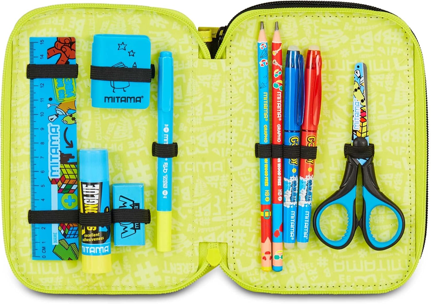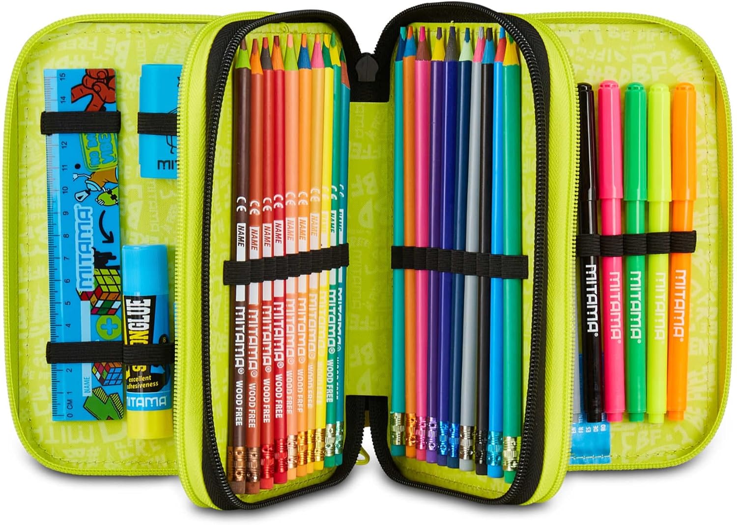 Questo astuccio triplo scomparto è la soluzione ideale per organizzare al meglio tutto l'occorrente per la scuola. Con il suo design colorato, è pensato per i bambini della Scuola elementare. Realizzato in resistente tessuto di poliestere, questo astuccio unisce praticità e qualità.