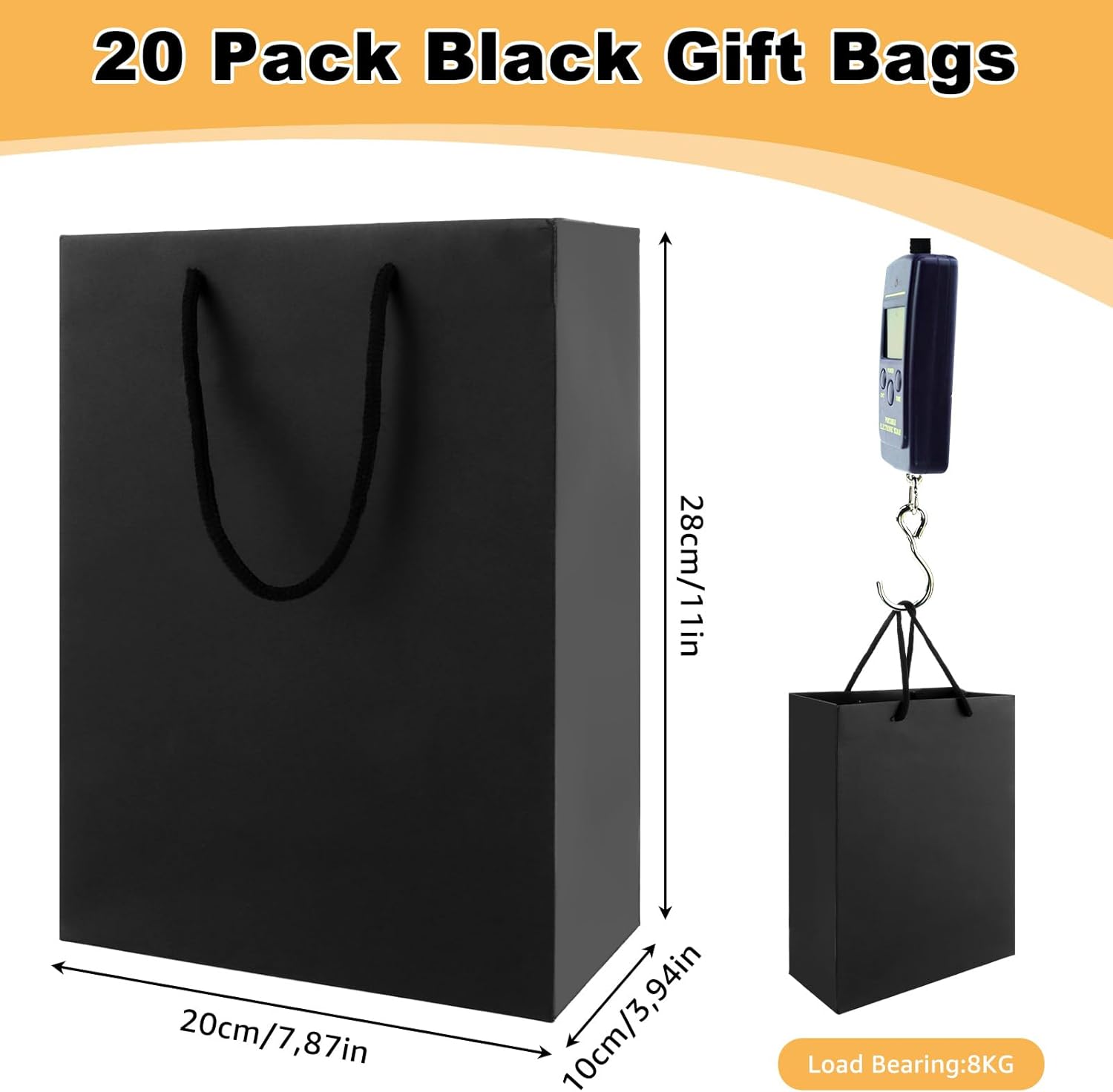 Contenuto della confezione: riceverai 20 sacchetti regalo in carta nera, questi sacchetti regalo neri con manici sono eleganti e pratici e soddisfano tutte le tue esigenze di regalo. Dimensioni del prodotto: il sacchetto regalo nero ha una dimensione di 20 x 10 x 28 cm e può contenere 5-8 kg per garantire una consegna affidabile per tutti i tipi di regali. Robusti sacchetti regalo neri: questi sacchetti regalo neri con manici sono realizzati in carta da 250 g/m² e hanno un fondo rinforzato per una maggiore durata e riutilizzabilità. Comodi manici: i sacchetti regalo in carta nera hanno comodi manici e sono adatti per sacchetti regalo per feste, sacchetti regalo per feste, sacchetti per la spesa, sacchetti per la vendita al dettaglio e sacchetti per merci. Creativo fai da te: la superficie del sacchetto regalo è vuota, puoi creare il tuo sacchetto regalo con pittura a mano o adesivi per rendere i tuoi regali più squisiti.