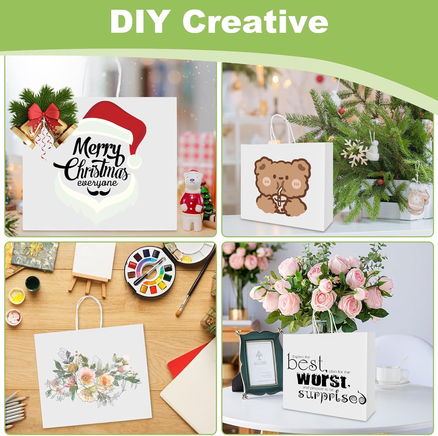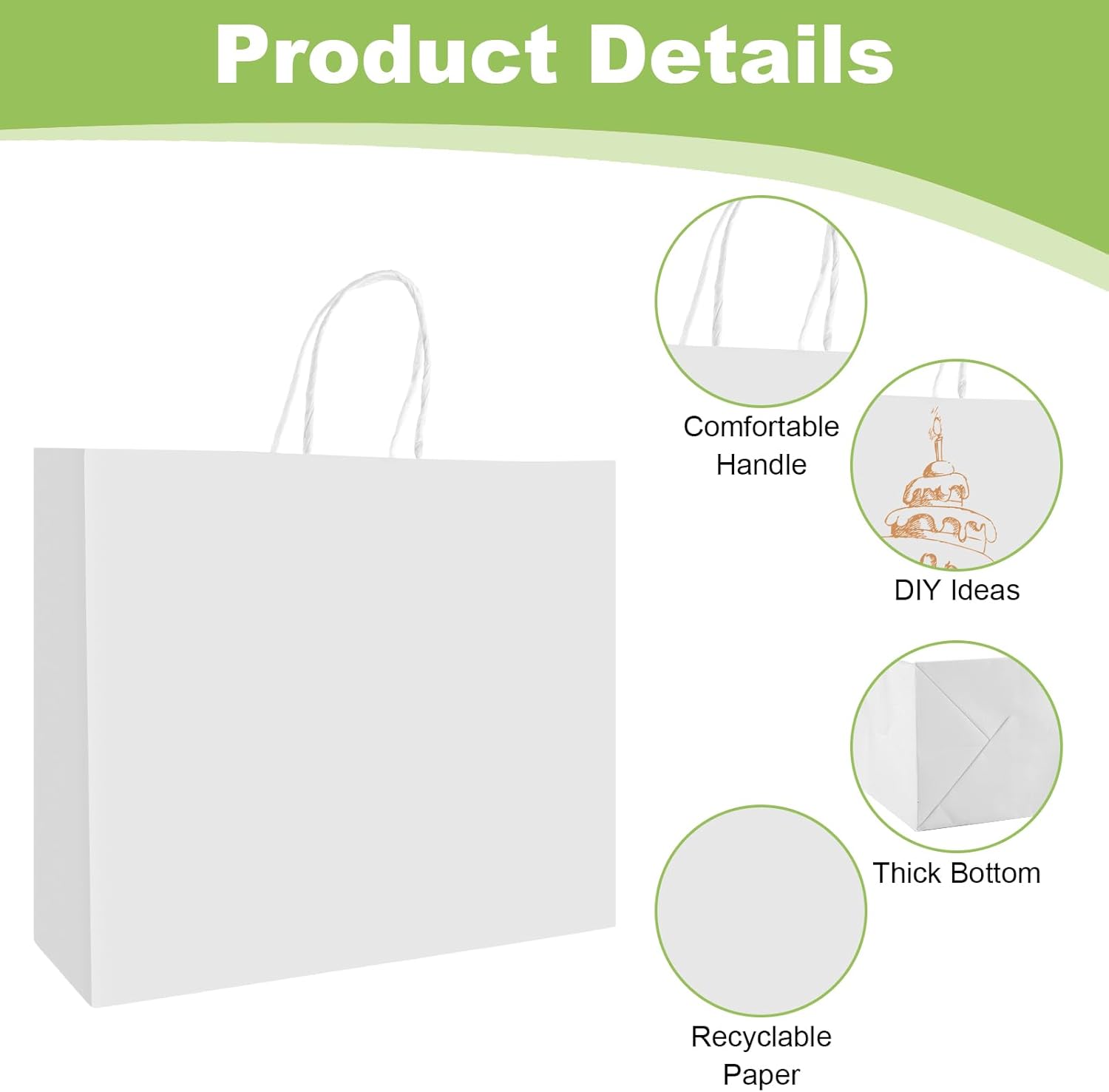 Cosa ottieni: 30 pezzi di carta kraft bianca 32 x 27 x 11 cm con manico; La carta bianca ti permette di essere creativo. Borsa regalo creativa: puoi dare sfogo alla tua immaginazione scrivendo, disegnando e attaccando piccoli oggetti sul sacchetto di carta kraft nera per decorare un sacchetto regalo unico adatto per le vacanze. Materiale: il sacchetto di carta bianca con manico è realizzato in carta kraft di alta qualità; La carta è spessa, resistente e riciclabile Fondo più spesso: il fondo dei nostri sacchetti di carta kraft con manico bianco è ispessito con una buona capacità di carico, proteggendo efficacemente gli oggetti nella borsa pur potendo posizionarli bene sul tavolo senza cadere Manici rinforzati: rispetto ad altri sacchetti regalo, i nostri manici sono rinforzati in modo da poterli tenere bene in mano