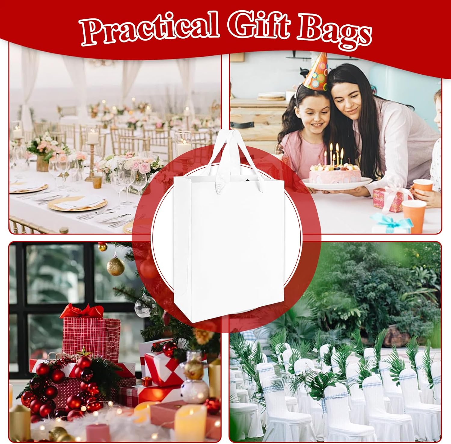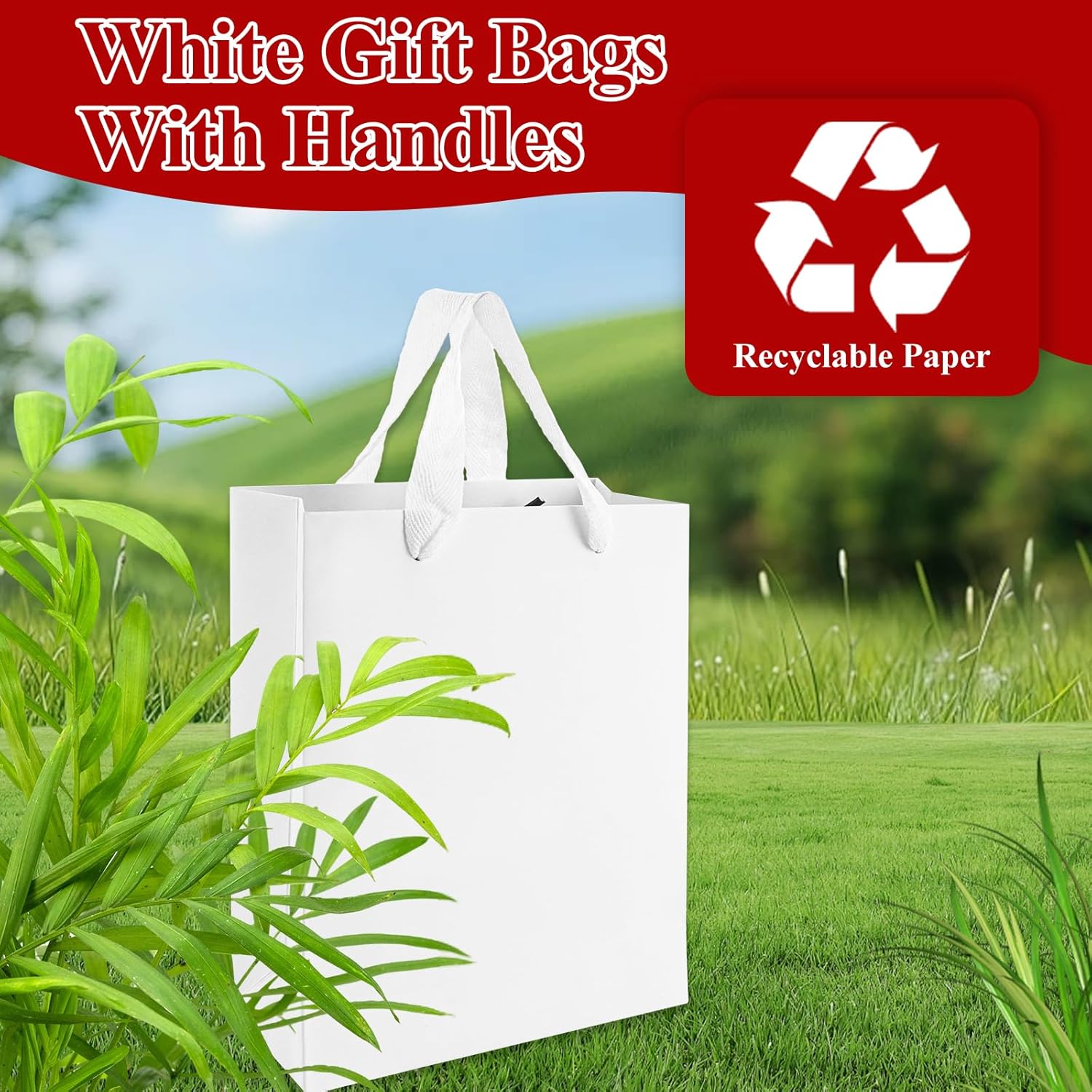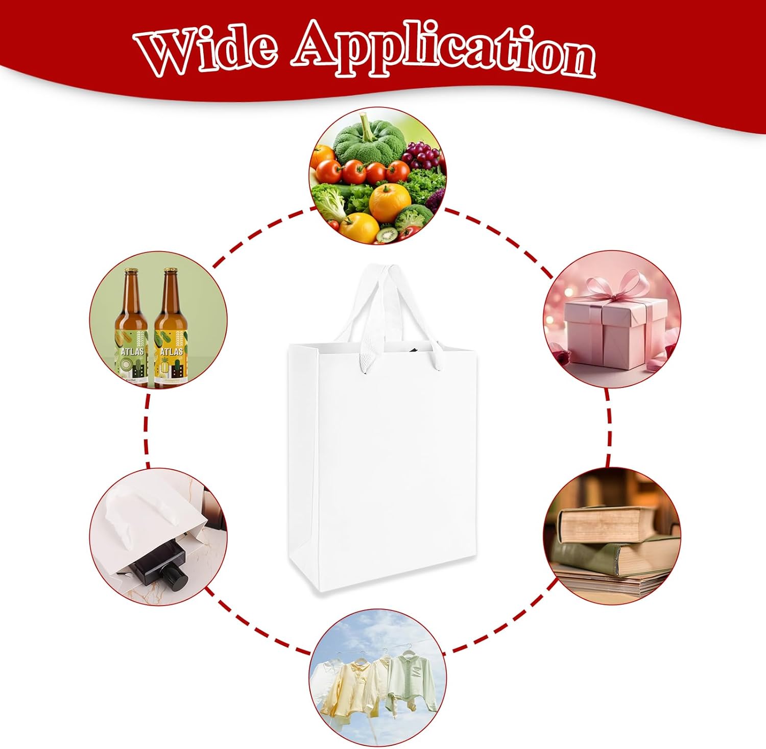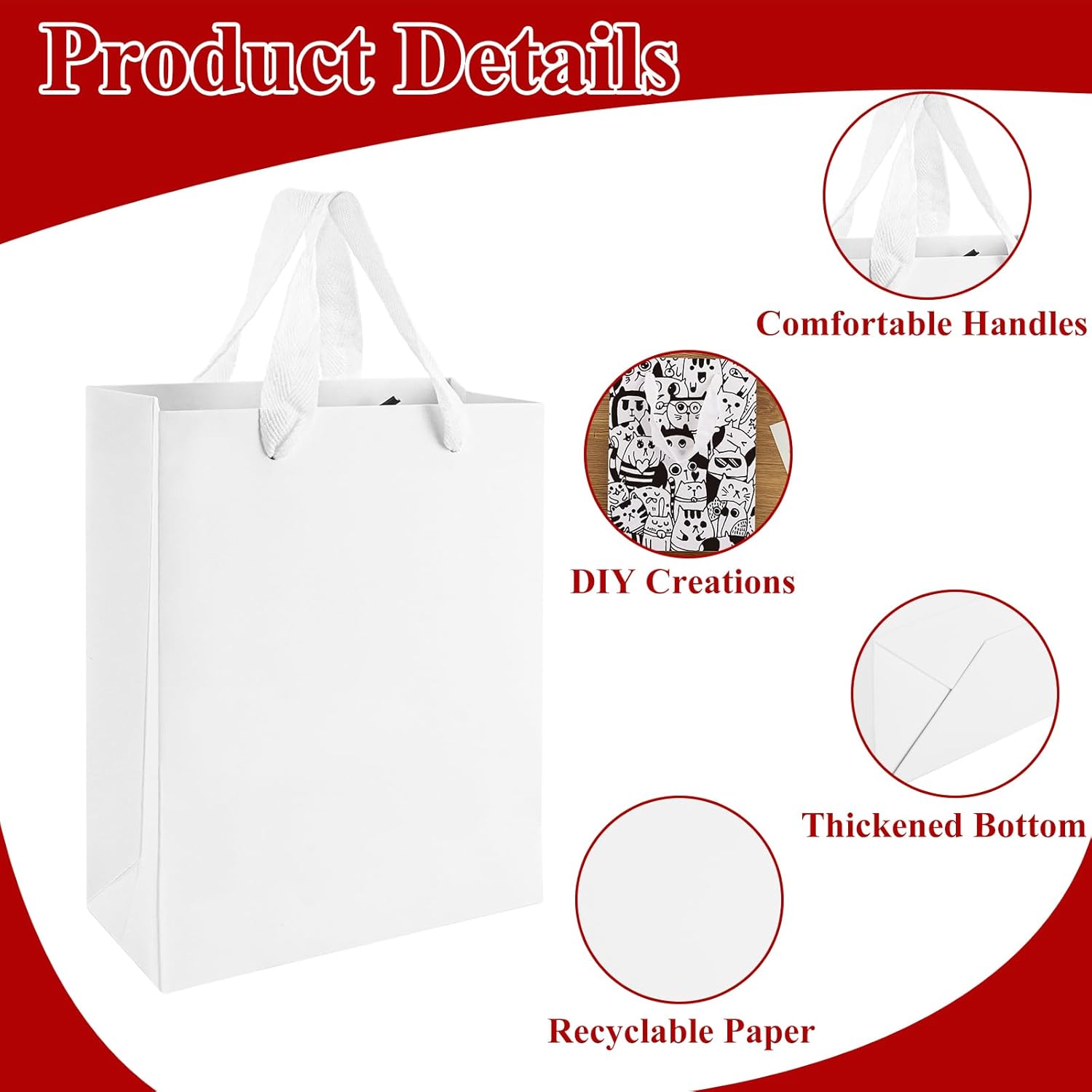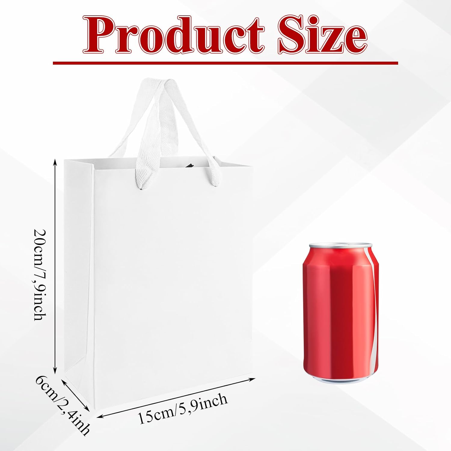 La confezione include: Riceverai 50 sacchetti regalo in carta bianca da 15 x 6 x 20 cm, quantità sufficiente per le tue necessità quotidiane, la carta bianca ti consente di essere creativo. Comodi manici: rispetto ad altri sacchetti regalo, i nostri manici sono rinforzati in modo da poterli tenere bene in mano, va notato che non dovresti tenere il sacchetto con una mano ma con entrambe le mani contemporaneamente. Materiale durevole: i sacchetti regalo con manici sono realizzati in cartone di alta qualità, carta forte e durevole, riciclabile. Fondo ispessito: il fondo di la borsa della spesa in carta bianca è ispessita e ha un'elevata capacità di carico, che può proteggere efficacemente gli oggetti nella borsa e allo stesso tempo può anche essere posizionata bene sul tavolo e non si ribalta. Utilizzo versatile: i sacchetti regalo possono essere utilizzati come sacchetti per la spesa, sacchetti per feste, sacchetti per fiori. Sono perfetti per feste di compleanno, matrimoni, shopping e altre occasioni che rendono i tuoi regali più squisiti ed eleganti; possono essere utilizzati anche durante i festival per far sembrare i tuoi regali di alta qualità