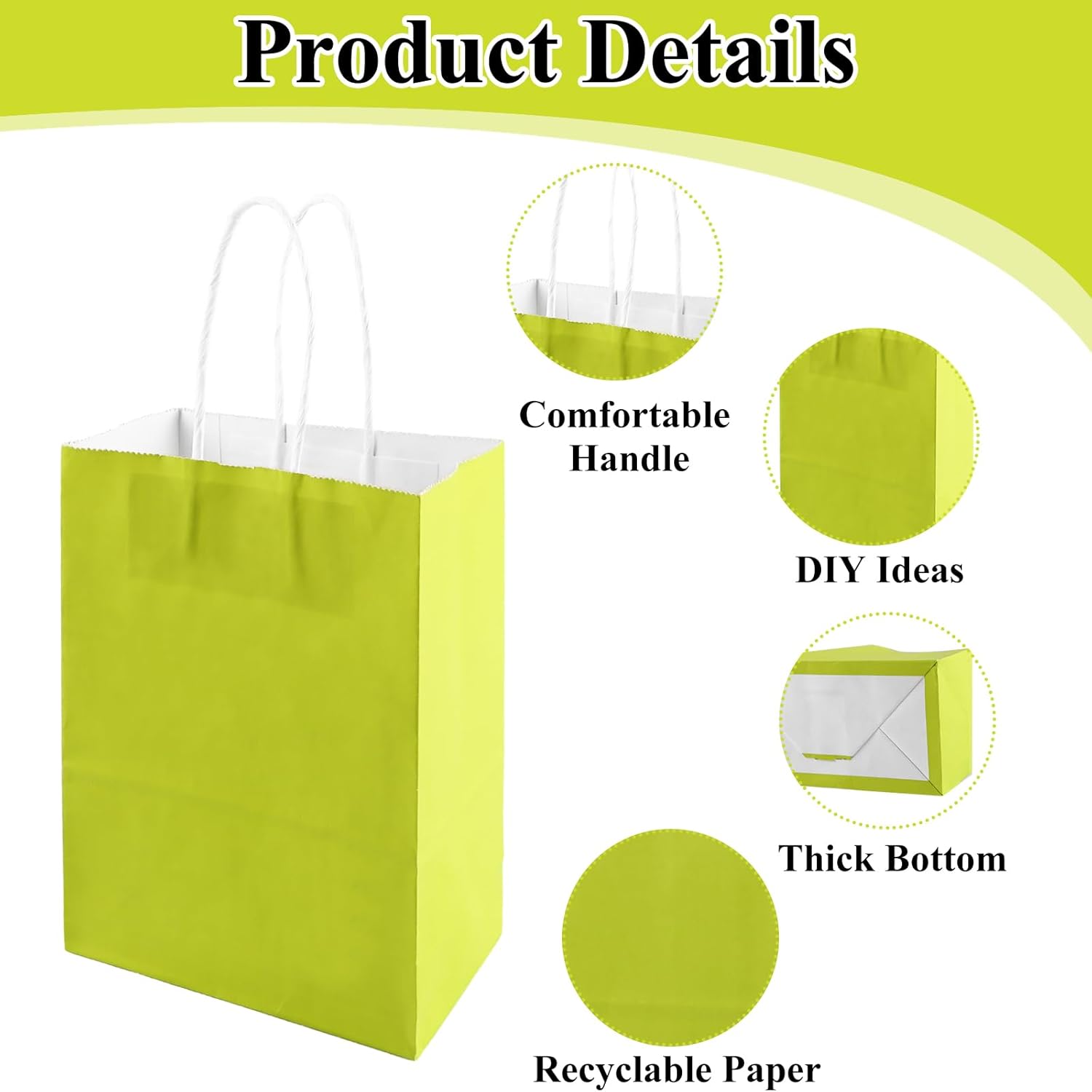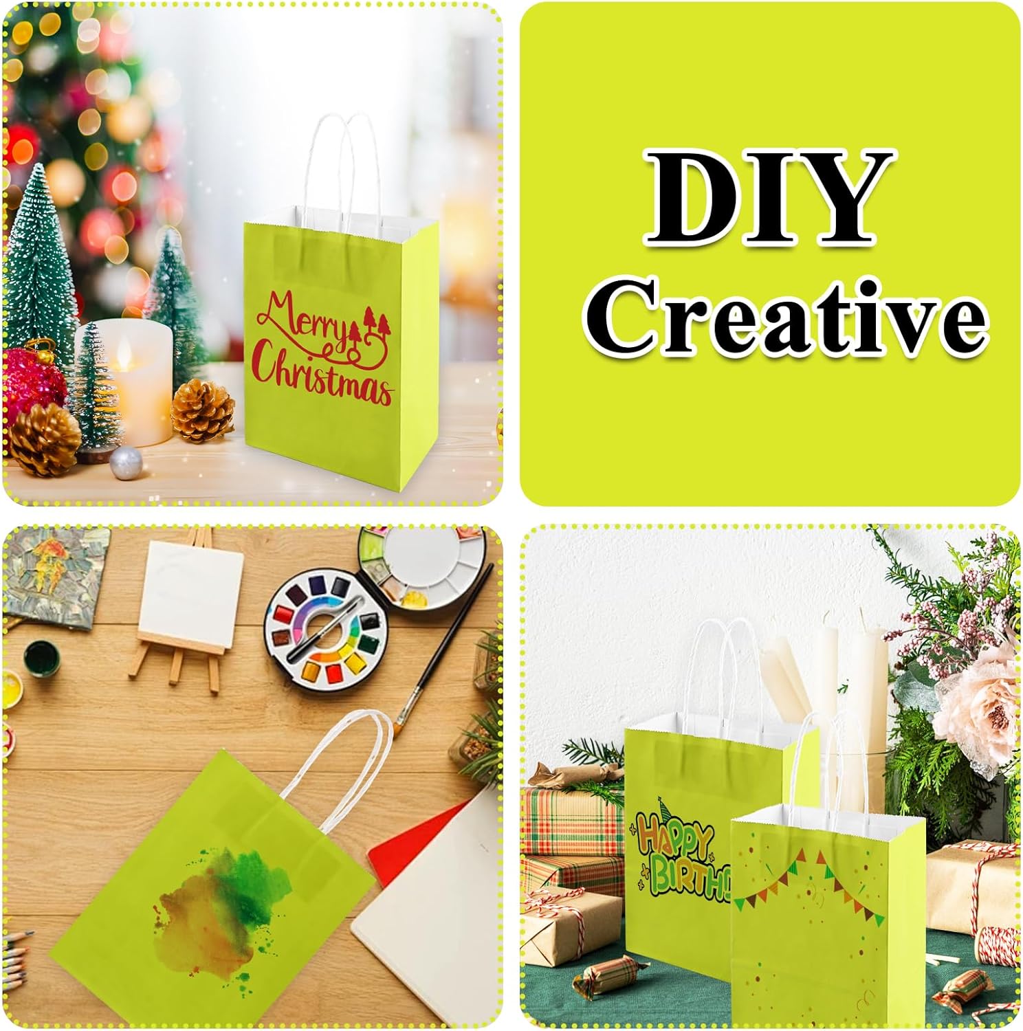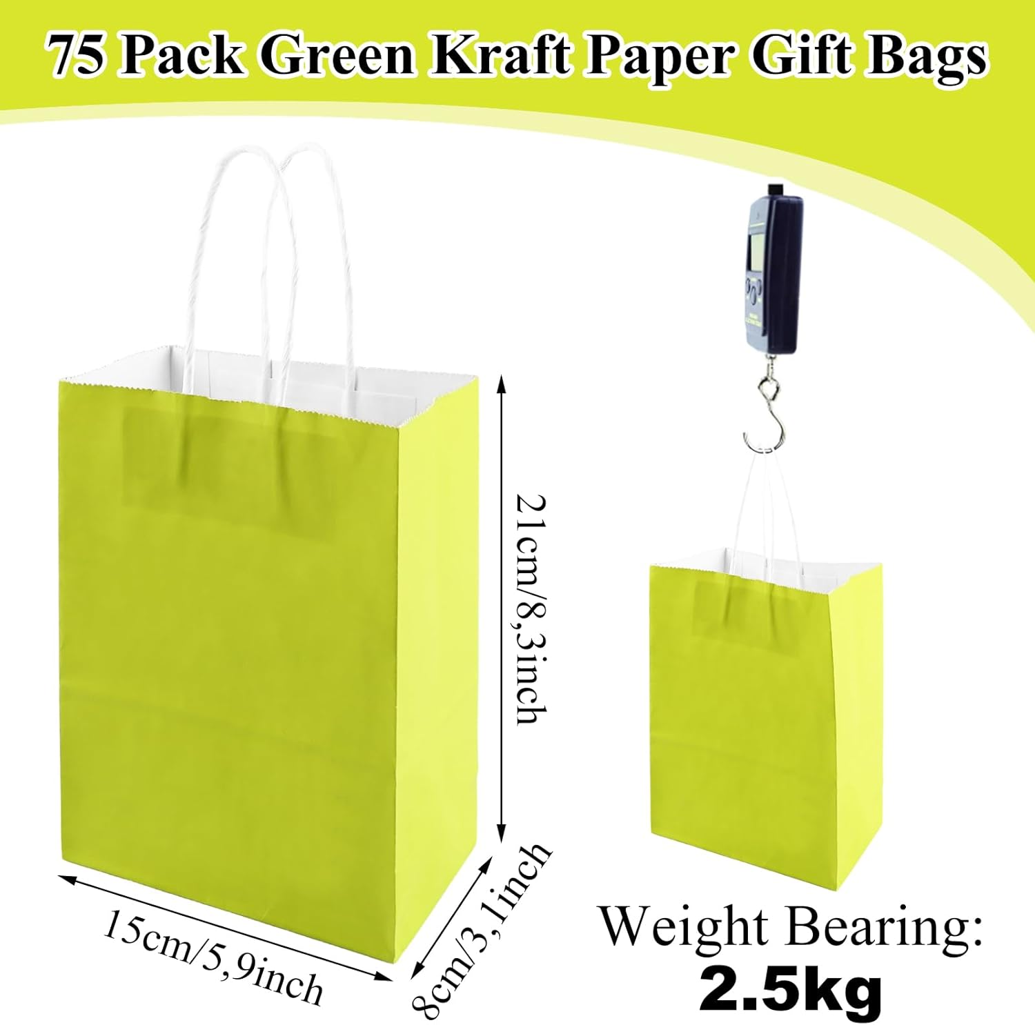 Fornitura: Riceverai 75 sacchetti di carta kraft verde chiaro di 15 x 8 x 21 cm, una grammatura di 120 g/m² e una capacità di carico di 2,5 kg, ideali per confezionare regali e fare la spesa. Manici Rinforzati: Rispetto ad altri sacchetti regalo, i nostri manici sono rinforzati in modo da poterli tenere comodamente in mano. Materiale: le borse kraft con manici sono realizzate in carta kraft di alta qualità. La carta è spessa, durevole, riciclabile e biodegradabile. Fondo più spesso: il fondo dei nostri sacchetti di carta garantisce la capacità dei sacchetti e protegge efficacemente il contenuto. E il nostro garantisce che la borsa possa stare sul tavolo. Borsa regalo creativa: puoi dare libero sfogo alla tua immaginazione scrivendo, disegnando e incollando piccoli oggetti sul sacchetto di carta kraft verde chiaro per decorare un sacchetto regalo unico adatto alle vacanze.