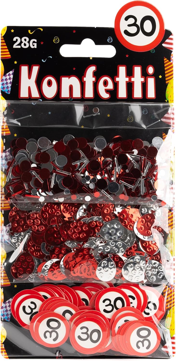 Divertenti decorazioni per le feste: circa 1200 coriandoli di plastica in un'armoniosa combinazione di diversi motivi. Semplicemente una bellissima decorazione per il trentesimo anniversario. Tutto da un unico fornitore: gli altri articoli da noi offerti, come coriandoli, stelle filanti o nastri barriera, sono ideali per creare una bellissima atmosfera ad ogni festa di compleanno. Attira l'attenzione: i divertenti segnali stradali in rosso/bianco garantiscono una decorazione di compleanno moderna, vivace e luminosa. Per una decorazione indimenticabile del trentesimo compleanno. Per uomini e donne: adatto come decorazione per il 30° compleanno per le donne e come decorazione per il 30° compleanno per gli uomini. Adatto anche come regalo per il trentesimo compleanno! Facile da usare: tutti gli articoli decorativi sono rapidi da installare e da rimuovere e vengono smaltiti in modo rispettoso dell'ambiente. Per una decorazione del trentesimo compleanno di successo.