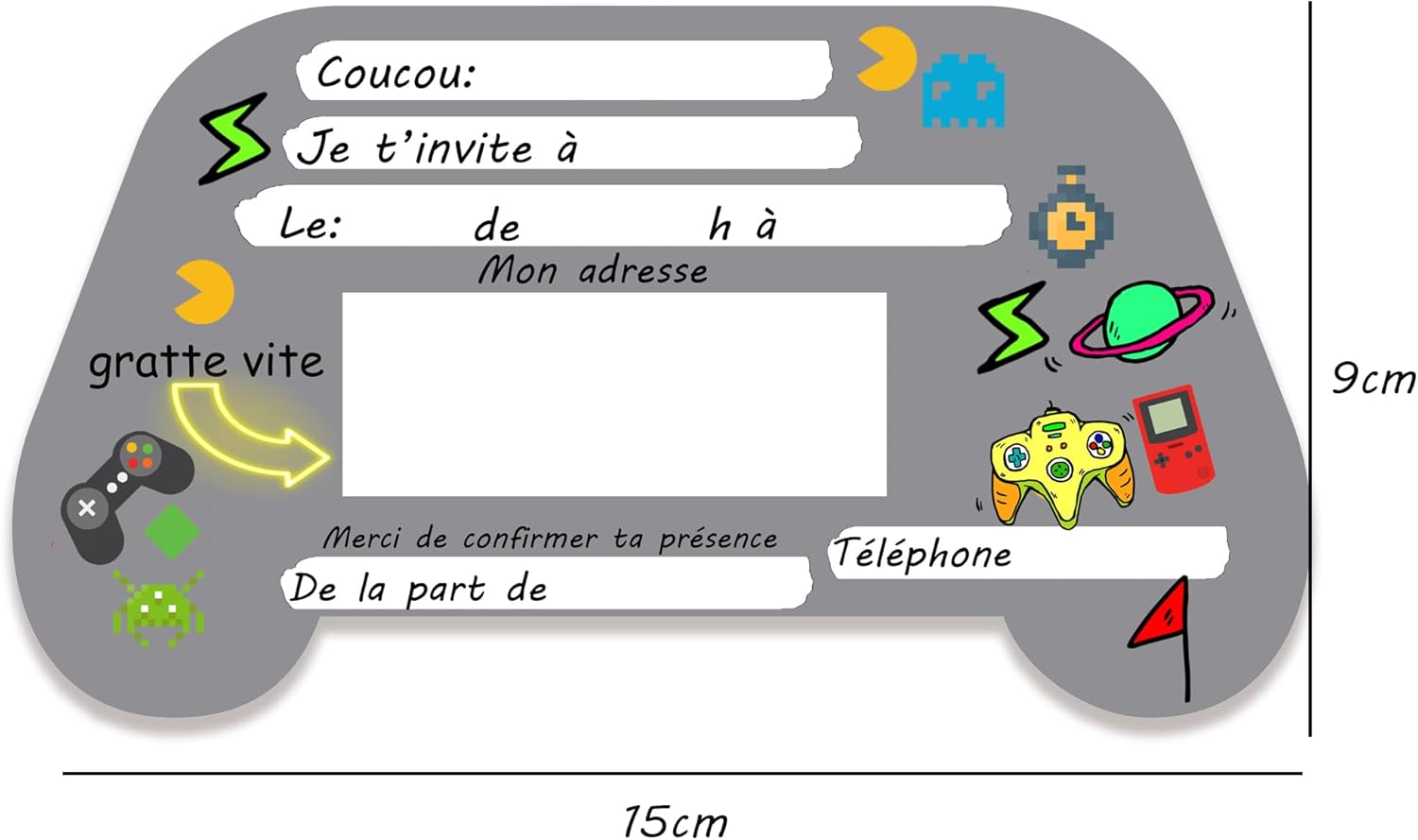 KIT COMPLETO - Per iniziare bene una festa di compleanno, abbiamo pensato tutto per te: 18 biglietti di invito+20 adesivi da graffiare. Graziosi biglietti d'invito e pre-riempiti in francese! Biglietti molto belli e abbastanza spessi per essere rigidi. Gli articoli sul retro sono adatti e in francese, facili da riempire queste carte per i bambini Pratico: i nostri biglietti sono prestampati sul fronte e sul retro in francese. Il bambino può facilmente integrare le informazioni, incollare gli adesivi da grattare per nascondere il luogo di festa, personalizzare la busta con gli adesivi adesivi. Fai da te: partecipare tuo figlio alla preparazione della sua festa di compleanno: si divertirà a completare le carte pre riempite SATISFAIT O RAMBOURSÉ - MKISHINE è un giovane marchio europeo che offre prodotti intorno alle feste per bambini. La qualità dei nostri prodotti è fondamentale, ci impegniamo a fornire prodotti che soddisfano al meglio le vostre esigenze e esigenze.