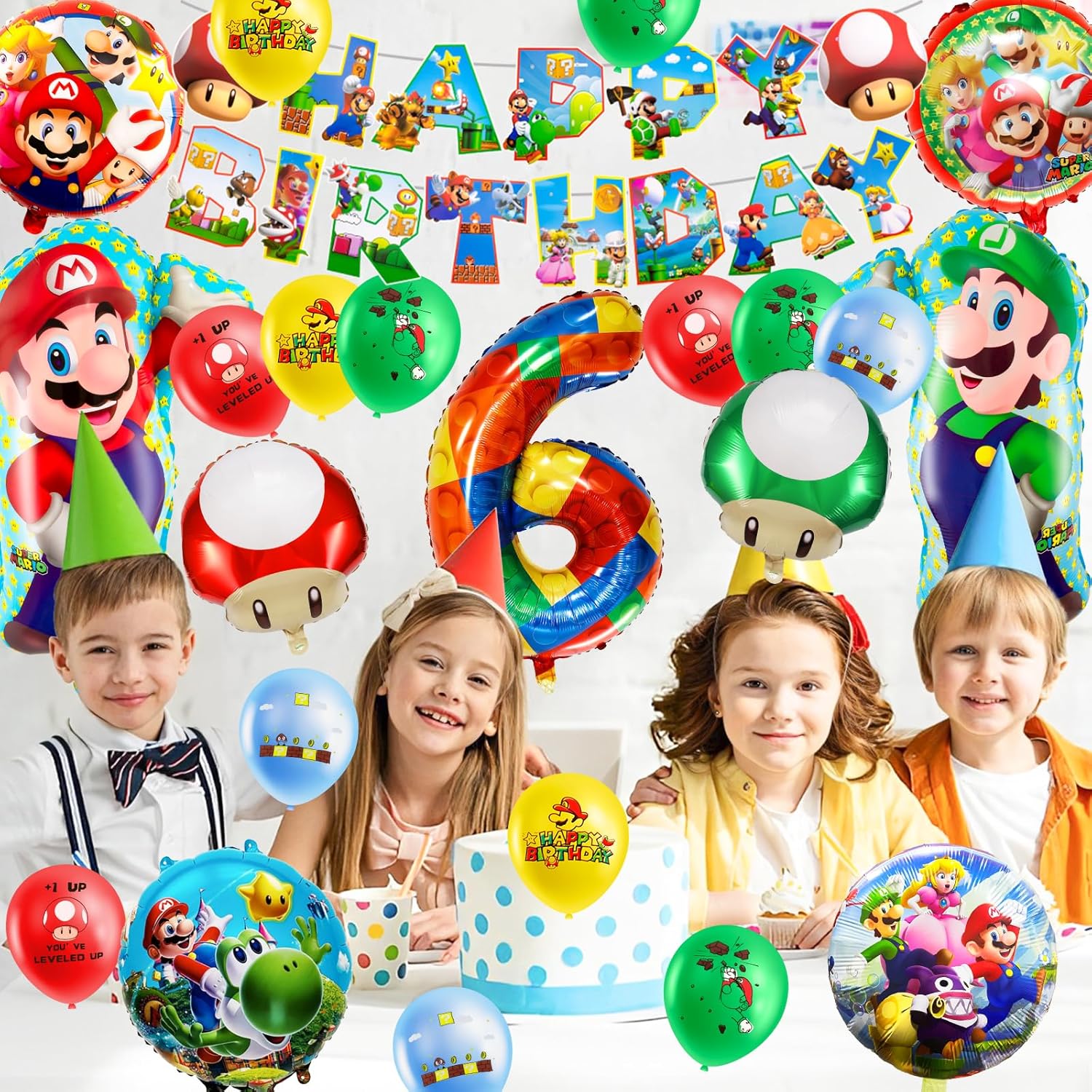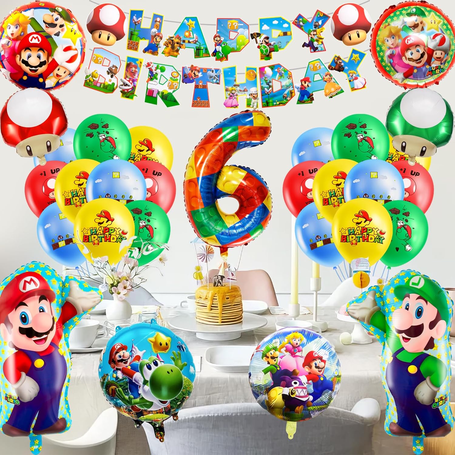 Decorazione del super marito: riceverai 1 set di striscioni di compleanno, 20 palloncini in lattice, 4 palloncini in foil rotondi, 2 palloncini in foil a forma di cartone animato, 2 palloncini con testa di fungo, 1 palloncino in foil digitale, 1 rotolo di nastro. Materiale premium: il palloncino Super Mari è realizzato con una pellicola di alluminio biodegradabile di alta qualità, più rispettosa dell'ambiente, più sicura per i bambini e durevole; puoi usarlo con sicurezza. Utilizzo: perfetto per decorare compleanni di bambini, baby shower, festival, viaggi, celebrazioni, Halloween, Pasqua, Natale. Deve essere perfetto per il compleanno di un bambino. Facile da decorare: i palloncini decorativi Mari necessitano solo di una pompa per gonfiare il palloncino. Puoi attaccarli ovunque tu voglia decorare e i palloncini di compleanno sono perfette decorazioni di compleanno. Servizio soddisfacente: forniamo a tutti i nostri clienti un servizio clienti 24 ore su 24. Se hai domande sui nostri prodotti, contattaci.