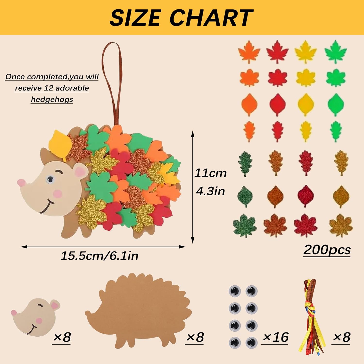【Kit Artigianato】Riceverai 8 Hedgehog Craft Kit. Contiene 8 corpi e 8 facce di riccio. Ci sono abbastanza adesivi in feltro per consentire ai bambini di creare il proprio set di ricci. 【Alta Qualità】Questo set di artigianato per bambini è realizzato in materiale di feltro di alta qualità, colorato, resistente, offre abbondanti forniture per i progetti creativi dei bambini. 【Favorire la Creatività】Questo prodotto fai-da-te è molto flessibile e può esercitare bene la tua immaginazione e abilità pratica. Crea il tuo kit creativo, che può essere decorato con questi adesivi in schiuma secondo le idee di tuo figlio. 【Facile da Usare】Ogni kit di artigianato ha un adesivo autoadesivo sul retro, non c'è bisogno di usare altri strumenti per attaccare. Puoi anche staccarli facilmente per cambiare il tuo design. 【Ampia Applicazione】L'artigianato artistico fai-da-te è una buona scelta regalo per i bambini di tutte le età. Che si lavoretti creativi per bambini, decorazioni per la casa o feste per bambini, questo kit artigianale in feltro è la scelta perfetta.
