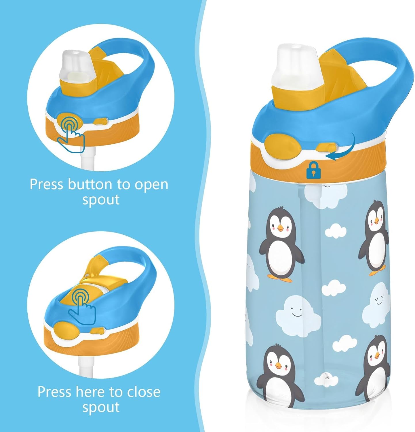 Materiale salutare: realizzato in tritan sicuro, può essere completamente smontato per una facile pulizia. Design funzionale: il boccaglio con cannuccia in silicone si adatta alla forma della bocca dei bambini per sorseggiare comodamente. La copertura antipolvere mantiene il boccaglio pulito e igienico. Portatile: la nostra borraccia è leggera con manico a gancio per un facile utilizzo a scuola, adatta per tutti i tipi di attività all'aperto e al chiuso. Copertura igienica del beccuccio: il coperchio del beccuccio protegge le superfici di contatto e ha una chiusura a scatto per tenerlo chiuso, evitando perdite e fuoriuscite. Quando è il momento di bere, il coperchio di azione consente il funzionamento con una sola mano e il beccuccio si apre facilmente premendo un pulsante. Rimani istrutti tutto il giorno: le nostre borracce trasparenti da 473,6 ml sono perfette per le esigenze quotidiane dei tuoi bambini. Perfetto per escursioni, ciclismo, ciclismo, campeggio, corsa, picnic o qualsiasi altro sport a casa, in palestra e a scuola.