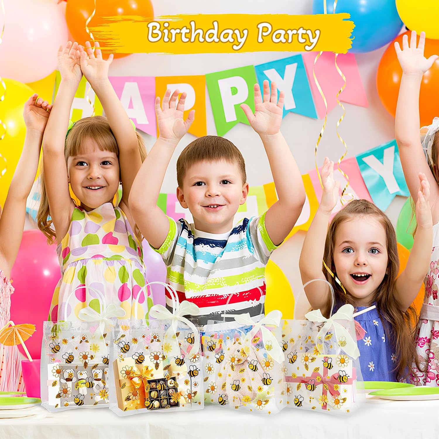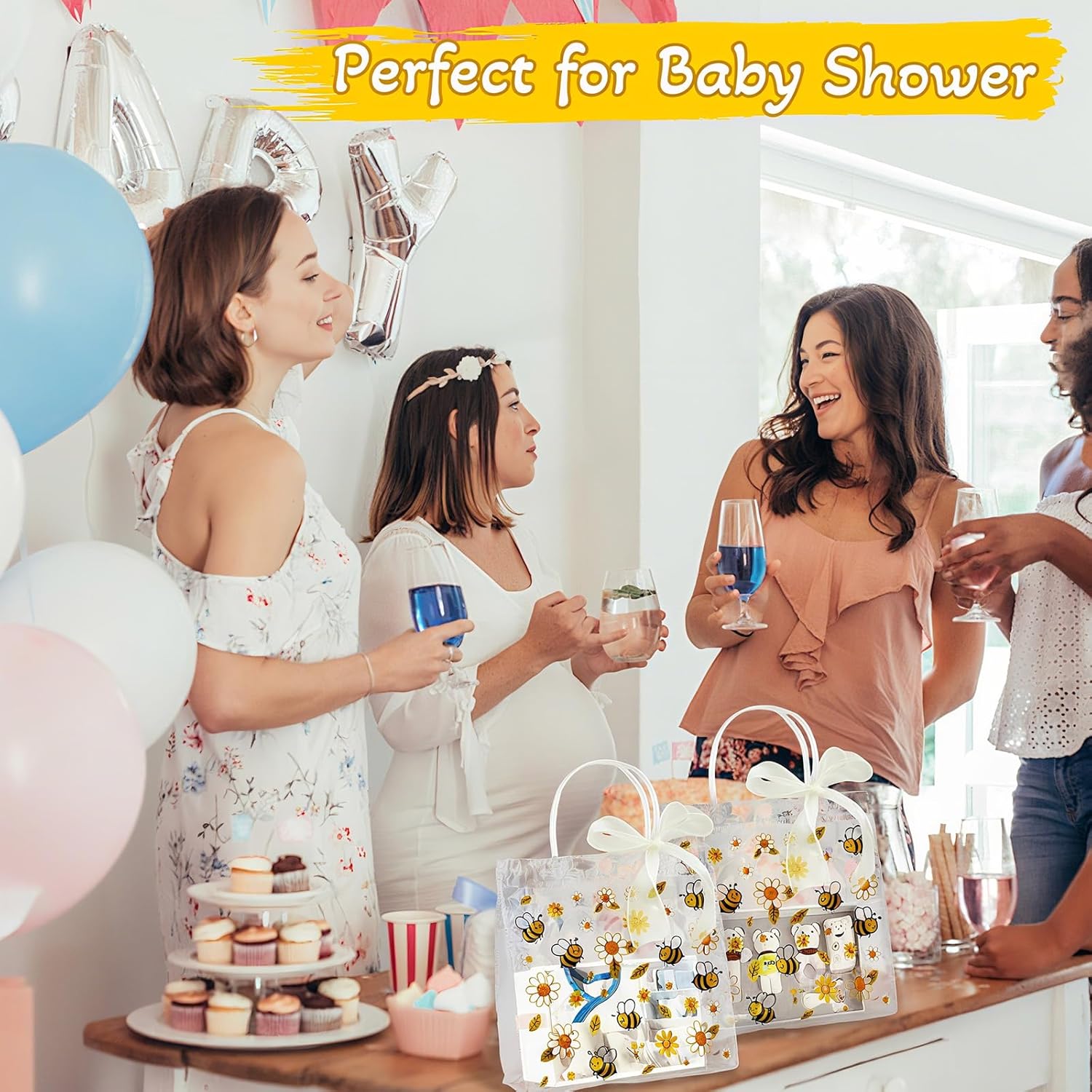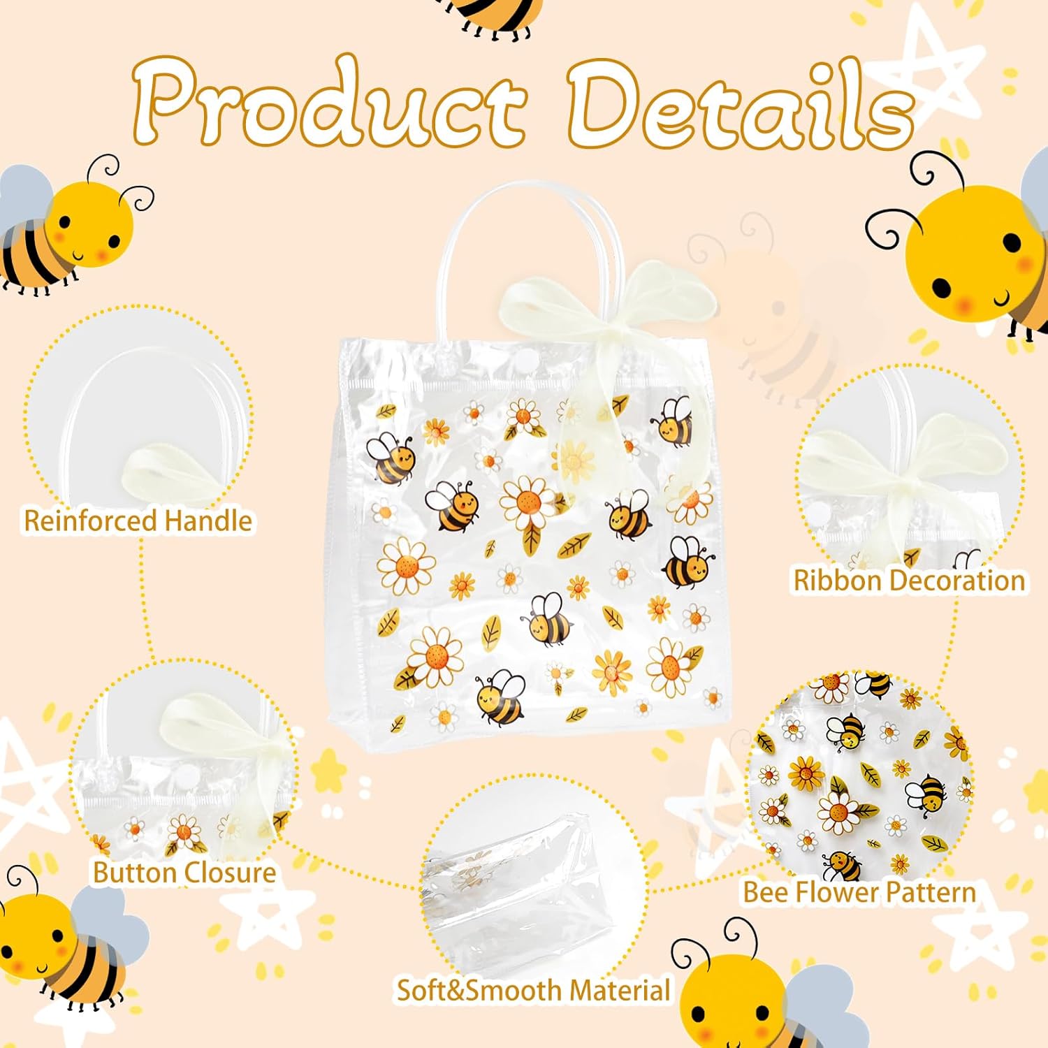 【Design Affascinante】Il set di sacchetti trasparenti comprende 20 adorabili sacchetti regalo trasparenti a tema ape. I graziosi motivi floreali e api aggiungono un tocco di natura e divertimento, rendendoli perfetti per varie occasioni come compleanni, baby shower o feste. 【Uso versatile】 Questi piccoli sacchetti regalo trasparenti con manici sono ideali per presentare regali, siano essi piccoli gioielli, dolci o oggetti di artigianato fatti a mano. La loro caratteristica trasparente permette di vedere chiaramente i regali all'interno, aggiungendo un ulteriore elemento di sorpresa. 【Materiale di qualità】 I sacchetti trasparenti in PVC sono realizzati in plastica resistente di alta qualità, abbastanza resistente da contenere regali senza strapparsi facilmente. Resisteranno alla normale manipolazione e usura, garantendo che i tuoi regali siano ben protetti. 【Dimensioni perfette】 I sacchetti regalo riutilizzabili trasparenti a forma di ape per bambini misurano 20 cm di lunghezza, larghezza e 8 cm di profondità, offrono spazio sufficiente per la maggior parte dei regali di piccole e medie dimensioni. Sono facili da trasportare e conservare, il che li rende pratici sia per chi fa il regalo che per chi lo riceve. 【Valore aggiuntivo】Il set trasparente di sacchetti regalo per baby shower viene fornito con 1 rotolo di nastro elegante. Puoi usarlo per allacciare le borse e creare un look bello e rifinito. È un'ottima aggiunta che consente confezioni regalo più creative.