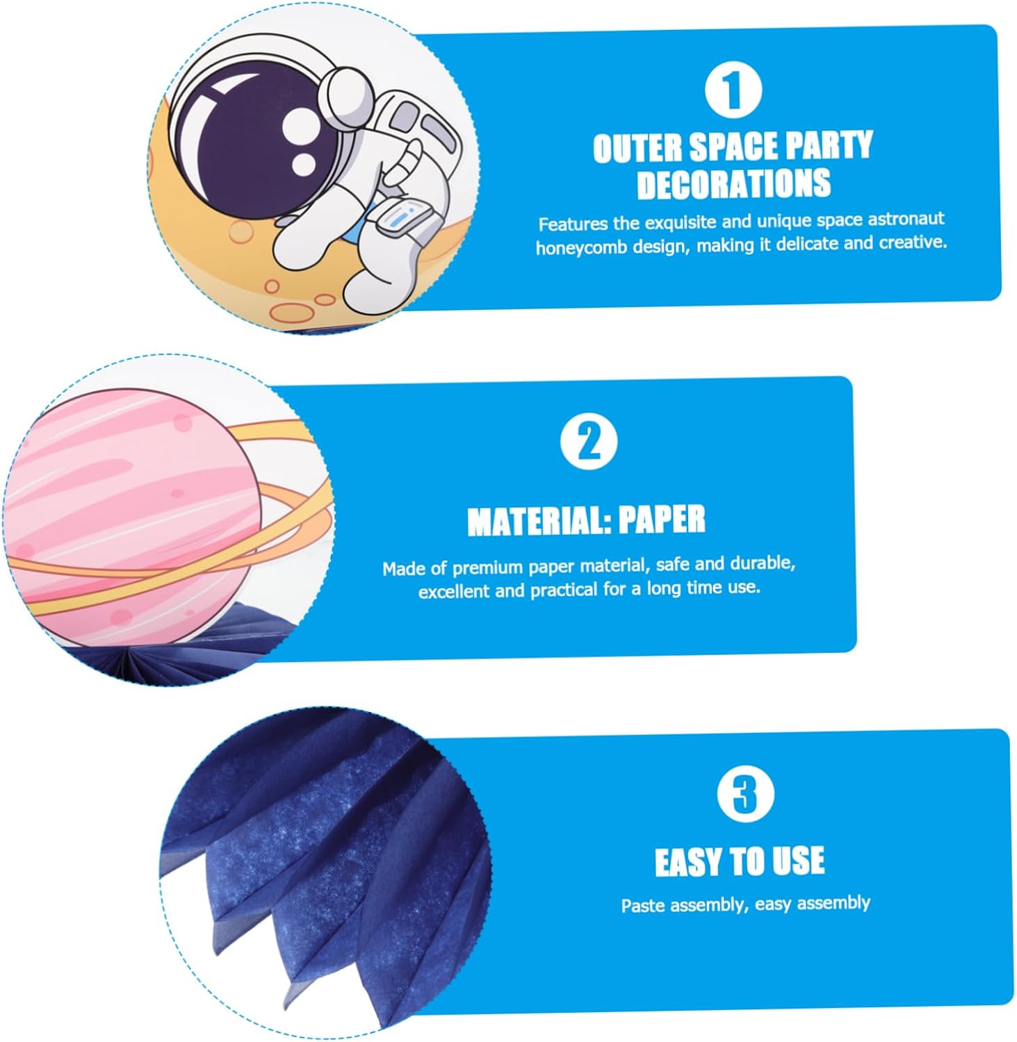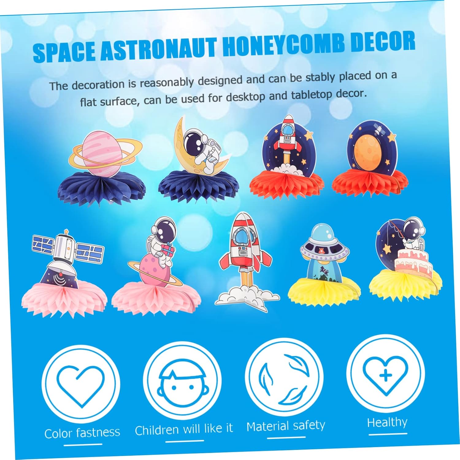 Centrotavola astronauti: la decorazione è progettata in modo ragionevole e può essere posizionata stabilmente su una superficie , può essere utilizzata per decorazioni da tavolo e da scrivania, decorazioni per feste a tema spaziale Centrotavola a nido d'ape con decorazioni: dimensioni compatte, che non occupano troppo spazio, lavorazione raffinata e decorazione squisita, creativo e unico, centrotavola per feste a tema astronauta Centrotavola a nido d'ape con astronauta: prodotto realizzato in materiale cartaceo, design creativo e aspetto squisito, decorazioni con astronauta Decorazioni a tema astronauta: presentano un design a nido d'ape a tema astronauta unico e squisito, che crea decorazioni a tema spaziale delicate e creative Decorazione a nido d'ape: la buona fattura, il trattamento superficiale delicato, la consistenza fine e la buona sensazione tatto possono contribuire a creare un'atmosfera felice e calda, decorazione a tema astronauta spaziale
