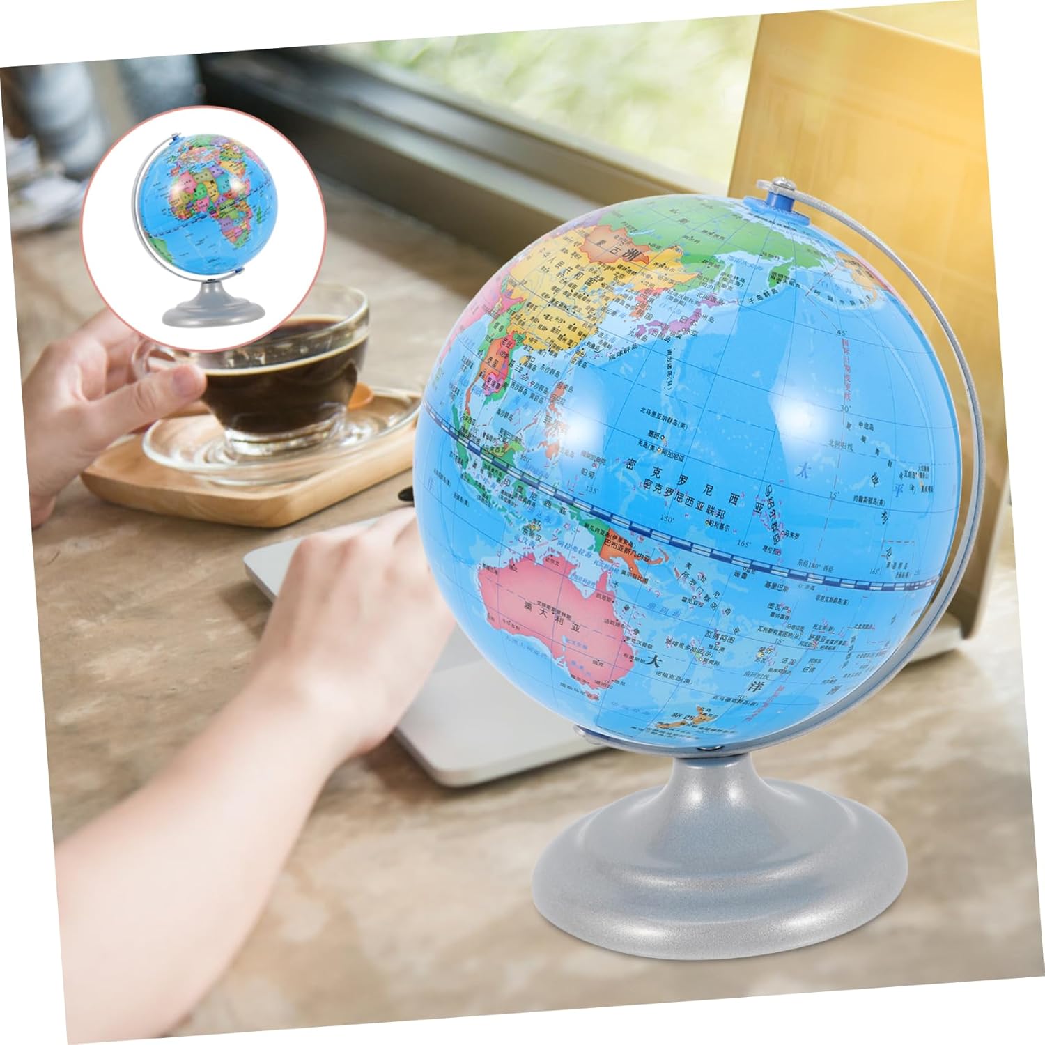 Realizzato in plastica: materiale di alta qualità e processo di produzione lo rendono e ti offre una lunga durata, Ornamento decorativo per l'ufficio: il tellurione è molto delicato e bello, puoi posizionarlo ovunque in casa per migliorare l'atmosfera, globo terrestre in PVC con base in metallo: la pregevole fattura e l'aspetto del nostro ornamento al tellurio ne garantiscono la popolarità, globo geografico Globo decorativo: con un fondo piatto, può stare stabilmente su una scrivania liscia, non devi preoccuparti che cada, globo rotante al tellurio in plastica: questo ornamento al tellurione ha una forma compatta dimensioni e non occupa molto spazio. più decorativo