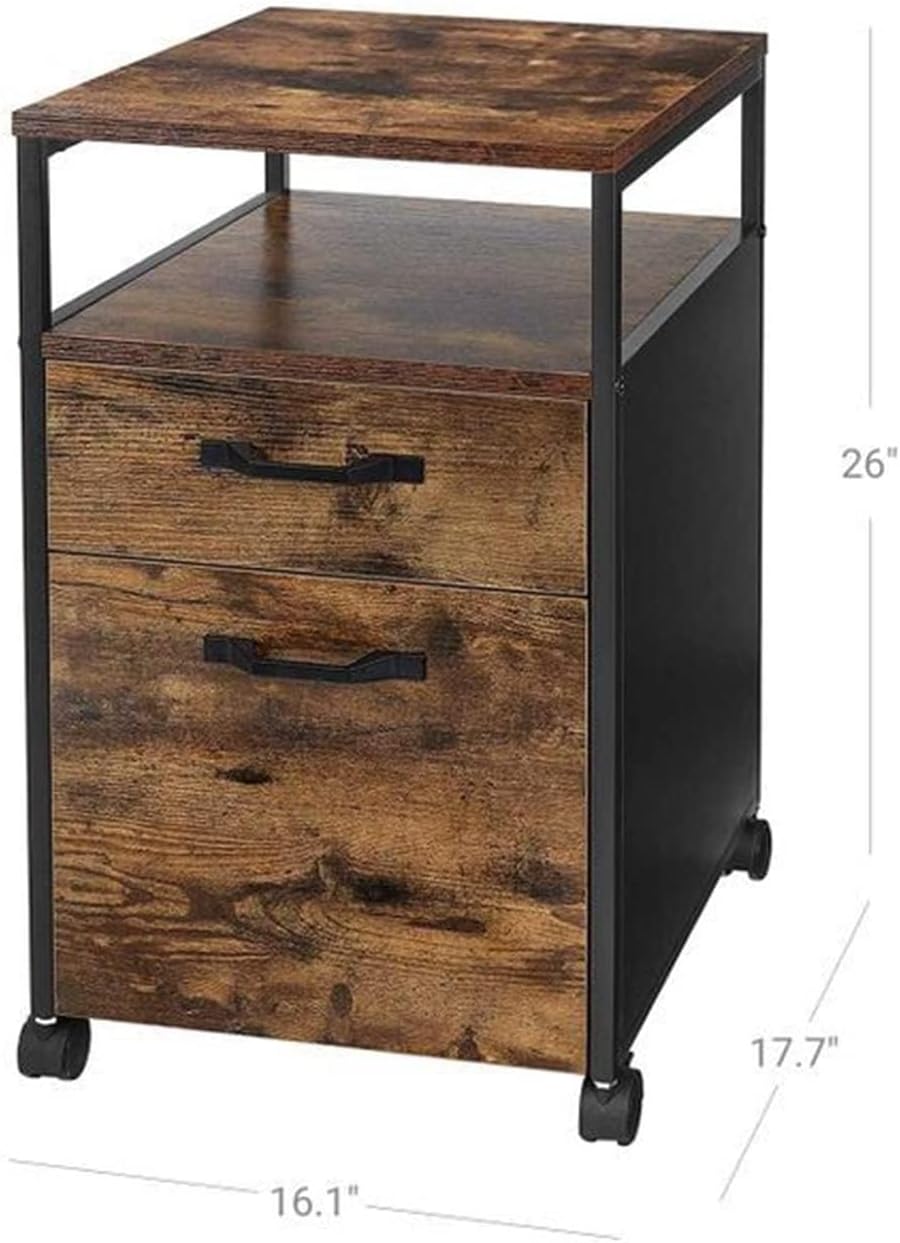 Stile industriale: combina il fascino robusto con l'estetica moderna, con una struttura in metallo resistente e un'elegante finitura in legno che si abbina a vari arredamenti per ufficio. Design mobile: dotato di rotelle scorrevoli, che ti consentono di spostare facilmente l'armadietto dove ne hai bisogno, migliorando la flessibilità del tuo spazio di lavoro. Due cassetti spaziosi: ideali per riporre documenti importanti, forniture per ufficio e altri elementi essenziali. Ogni cassetto può contenere cartelle sospese in formato A4 e lettera per un'archiviazione organizzata. Ripiano aperto: fornisce spazio aggiuntivo per un rapido accesso agli oggetti o agli elementi decorativi di uso frequente, mantenendo lo spazio di lavoro pulito e funzionale. Dimensioni compatte: misura 41 x 45 x 66 cm, rendendolo una soluzione salvaspazio per uffici di piccole e medie dimensioni senza sacrificare la capacità di archiviazione