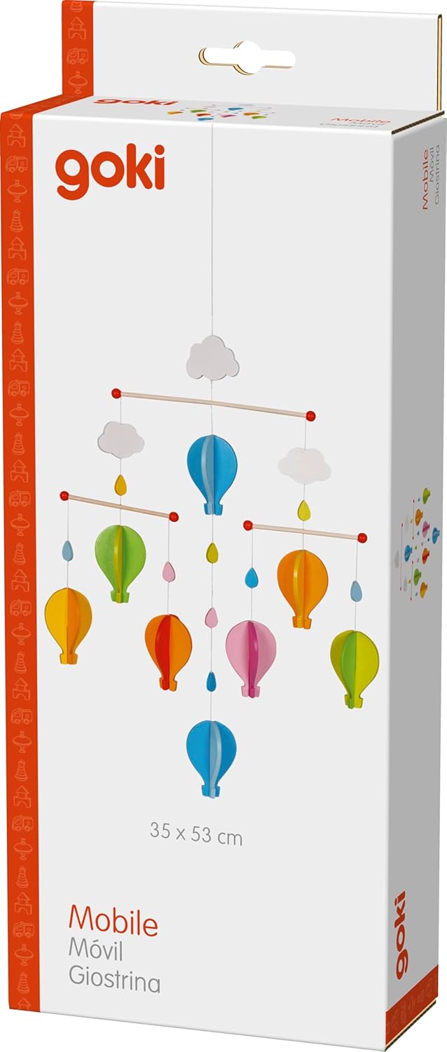 Mongolfere mobili Articolo decorativo in legno Da appendere nella cameretta dei bambini Stimola la percezione visiva e favorisce l'immaginazione Attenzione: questo mobile è una decorazione da appendere fuori dalla portata dei bambini.