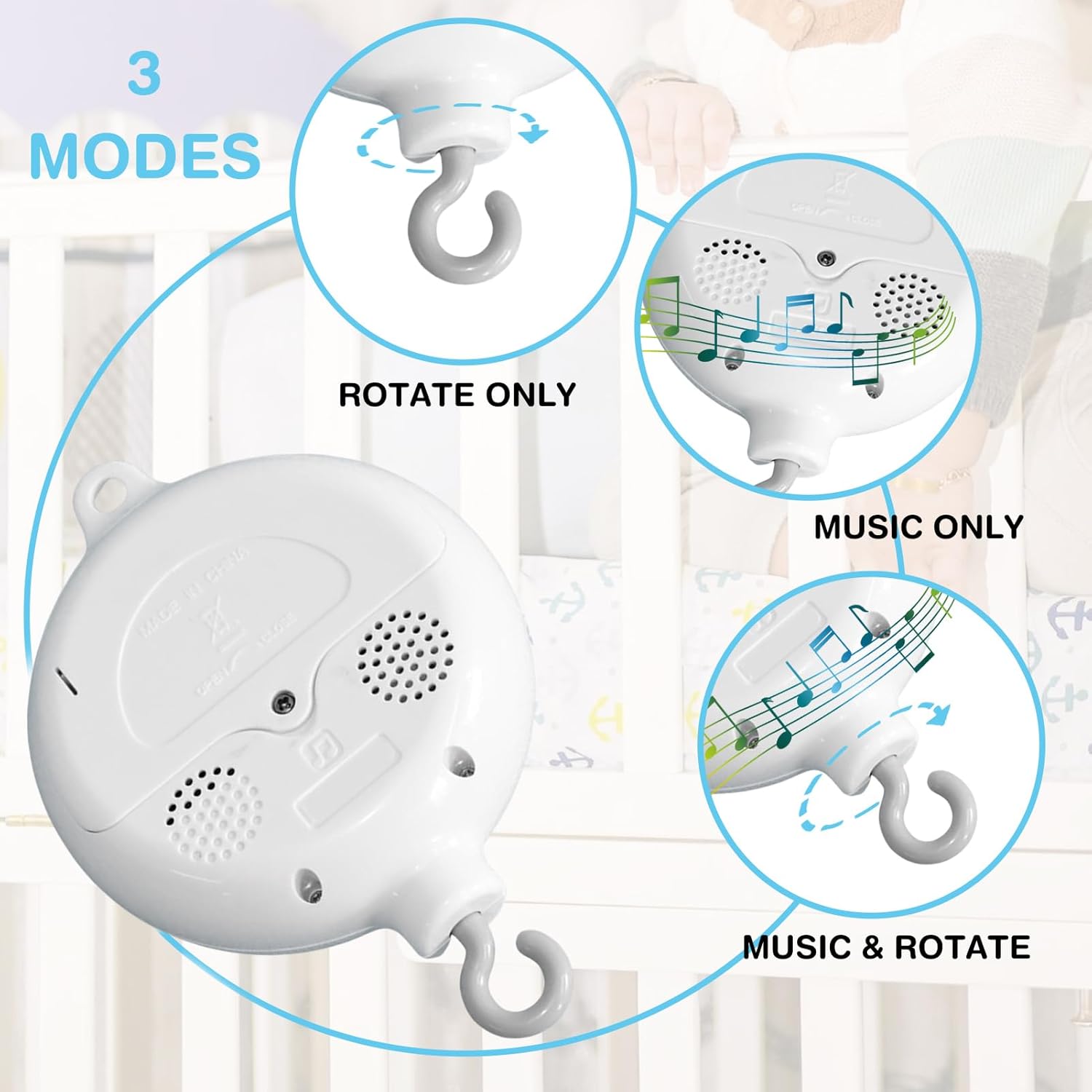 Condividi momenti speciali: Unico strumento per genitori che cercano di arricchire la routine quotidiana, promuove lo sviluppo sensoriale del neonato attraverso stimoli visivi e uditivi bilanciati, favorendo momenti di calma condivisi. Attrazione Versatile: Scelta ideale per camerette grazie al movimento affascinante e ai suoni melodici che stimolano i sensi del bebè. Unisce praticità e funzionalità in un unico prodotto di qualità Intrattenimento Musicale: Questo carillon per culla con musica funge da per dormire e presenta 35 canzoni ninna nanna per calmare il tuo bambino, creando una routine serale rilassante grazie al design di carillon musicale e alla funzionalità di carillon classico per . Semplicità d'Uso: Design facile da installare con meccanismo motorizzato assicura movimento circolare costante combinando di fissaggio intuitivo e prestazioni affidabili di rotazione automatica per utilizzo quotidiano senza sforzo Mobile Portatile Nursery: Giocattolo a batterie con carillon da 14 cm, accessorio essenziale per lettino e prodotto baby compatto per coinvolgere i bimbi in sicurezza.
