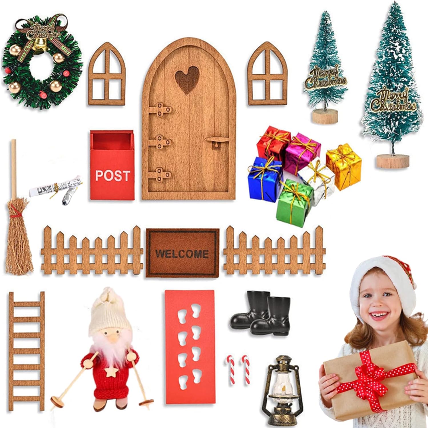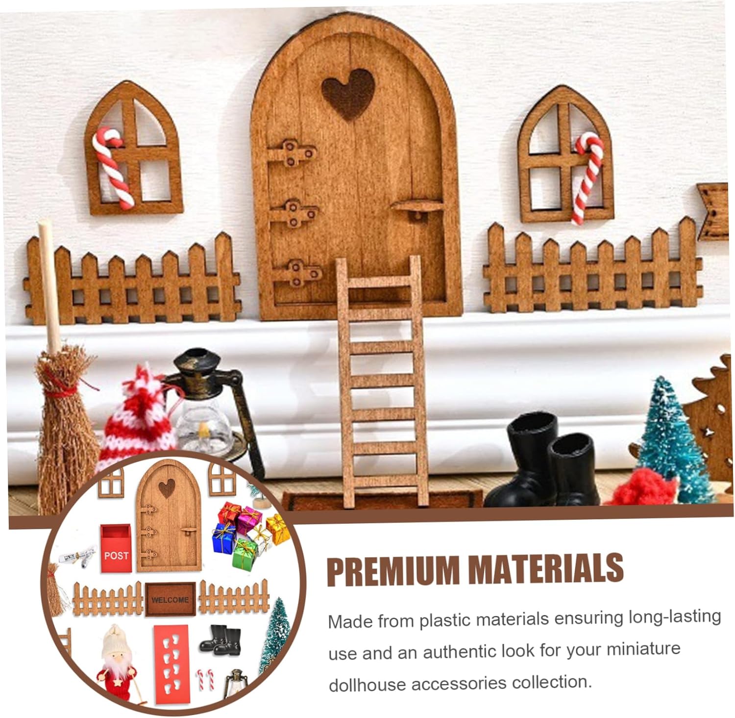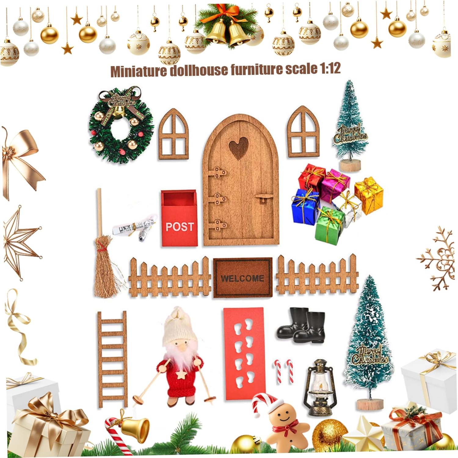Display versatile Uso: Ideale per esposizioni per la casa delle bambole, scene del giardino delle fate e kit di case in miniatura, questo set di porte da fata completa vari stili e layout per ispirare la creatività. Accessori per la casa delle bambole in miniatura. Design delle porte delle fate: questo mobile in miniatura da bambole presenta una porta da fata in scala 1:12 meticolosamente realizzata che aggiunge incantevoli fascino alla casa delle bambole o alle fate, migliorando i kit di case in miniatura e le miniature della casa delle bambole..Miniature delle bambole Accessori per giardini fati Materiali: realizzati con materiali plastici che garantiscono un uso di lunga durata e un aspetto autentico per la collezione di accessori per la casa delle bambole in miniatura..Accessori per la casa delle bambole in miniatura Kit di casa in miniatura Easy Assembly & Perfect Scale: progettato per una configurazione rapida con misurazioni precise 1:12 in scala, rendendolo compatibile con la maggior parte delle miniature per la casa delle bambole e il miglioramento del godimento del collezionista e degli hobbisti..Accessori per giardini fati Decorazioni natalizie festose: include decorazioni dettagliate a tema natalizio per creare un'atmosfera accogliente e stagionale perfetta per esposizioni per le vacanze e accessori per giardini da giardino in miniatura kit