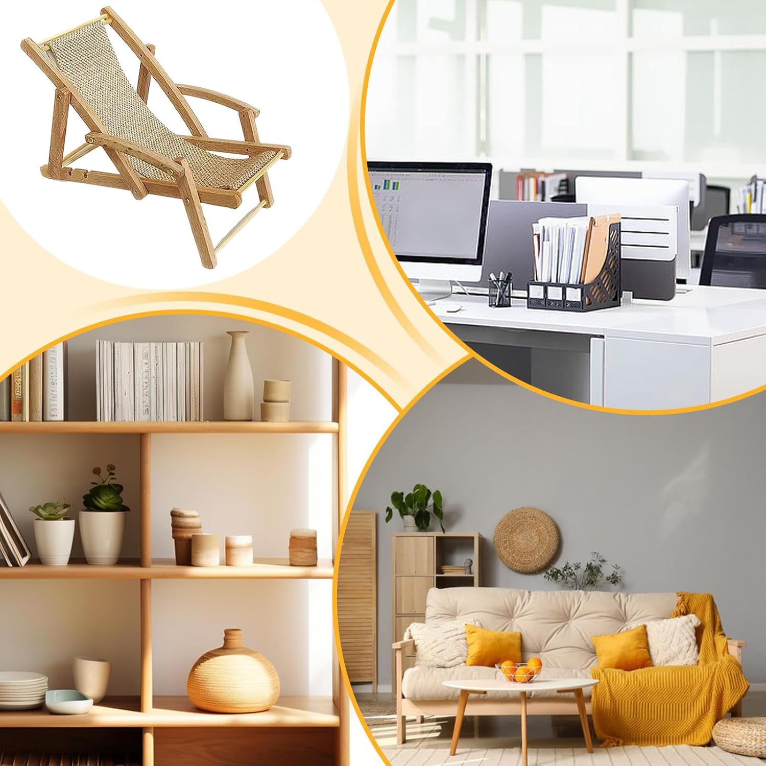 Realismo Artistico: Espressione di arte minuziosa, questa minisedia offre dettagli realistici che amplificano il piacere estetico ed evidenziano efficacemente il suo fascino decorativo distintivo Stile Incantevole: Questo mini sediolino da spiaggia presenta un design classico dallo stile realistico e interessante, offrendo un'eccellente funzione decorativa come delizioso elemento di arredo per ambienti diversi, aggiungendo un tocco di fascino visivo immediato Regalo Incantevole: Scelta ideale come dono per compleanni, festività o riunioni. Questa sedia da spiaggia mini risulta un pensiero gradito per familiari, amici e in ogni circostanza. 2. Struttura Stabile: La costruzione in legno resistente offre una base e sicura. Progettata per attività all'aperto come picnic e gite, assicura supporto costante senza cedimenti, anche dopo un impiego prolungato su diverse superfici. Multiuso: Progettata per vetrine, case delle bambole, scrivanie o librerie, questa sedia da spiaggia mini apporta un tocco decorativo versatile ad ambienti diversi con ampia applicabilità