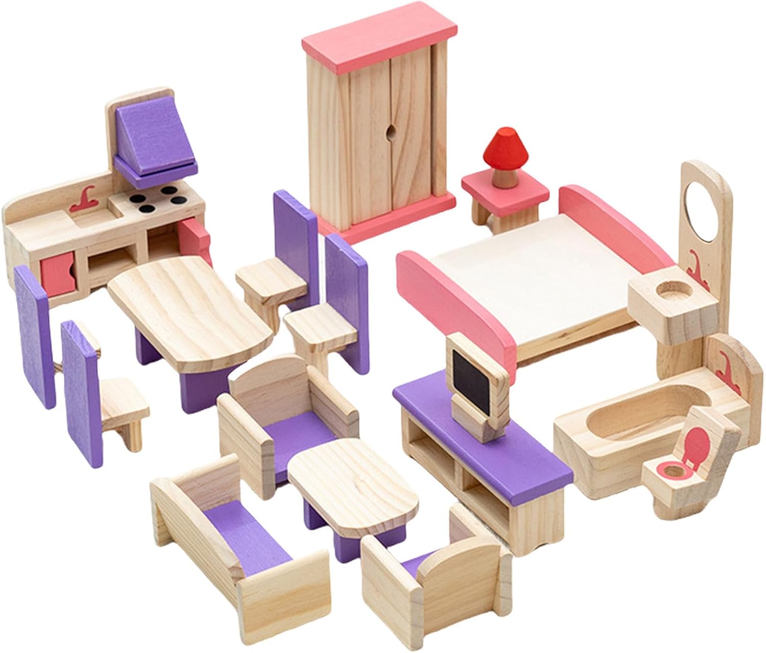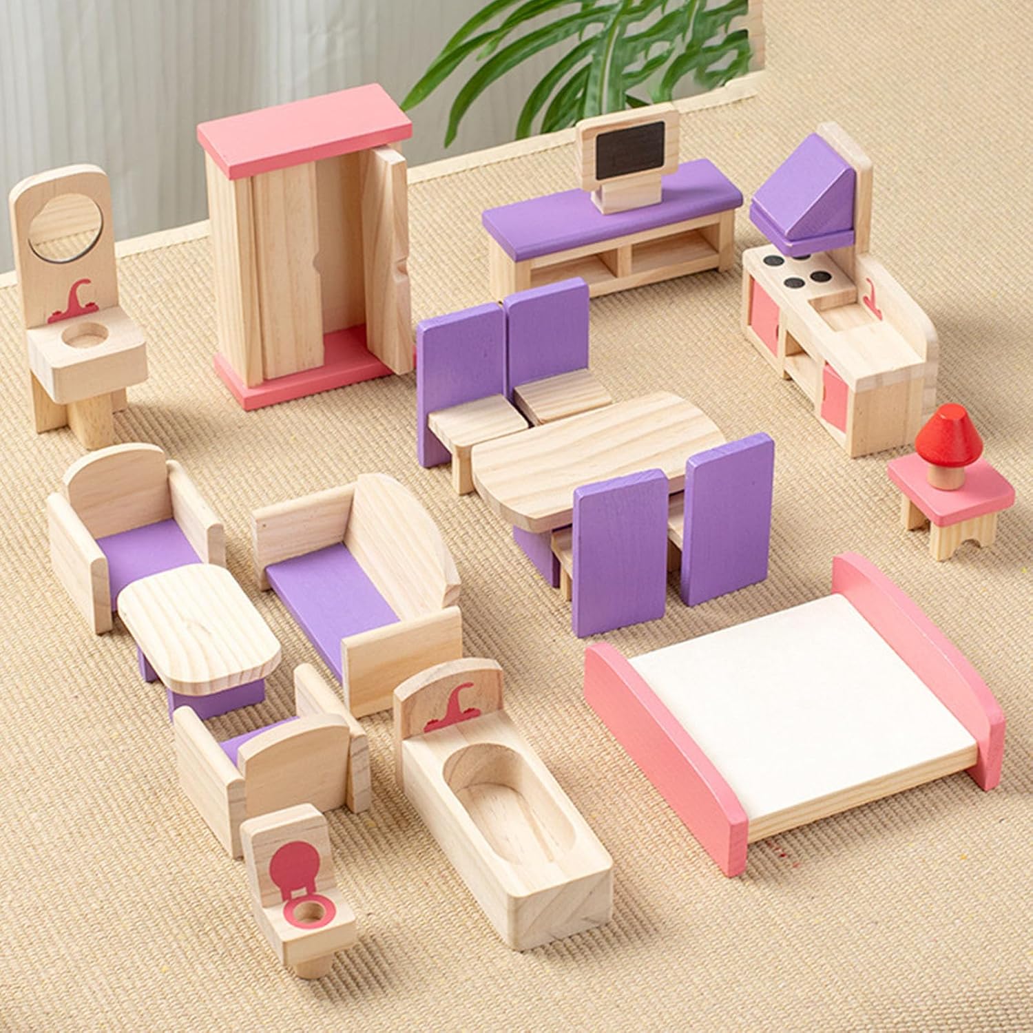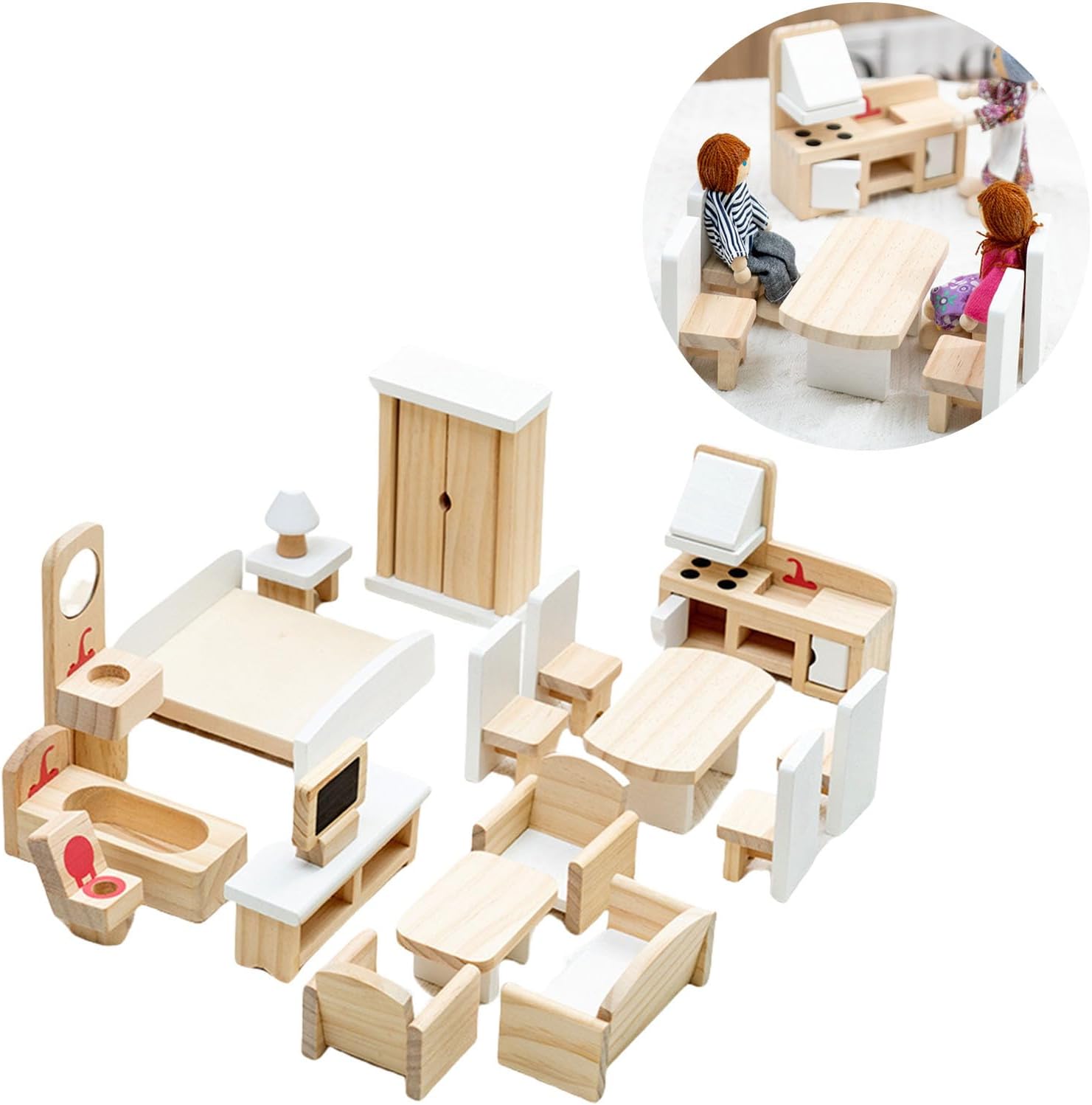 set mobili per bambole Wood offre collezione progetti simulazione, per migliorare gioco immaginativo e dare agli scenari bambole Con i suoi design realistici, questo set lo rende un ottimo regalo compleanno, incoraggiando ore divertimento e sviluppo dello sviluppo Ottimo per i bambini età pari o superiore a 3 anni, questo set mobili è ottimo per i bambini che divertono a gioco e simulare la familiare con le loro case delle bambole legno selezionato, questo set presenta porta mobile, porta un tocco realistico e migliorando la come esperienza Adatto alle camere da letto per bambini, alle aule in età prescolare o area giochi, offre uno spazio dedicato ai bambini per esplorare la creatività e gioco ruolo