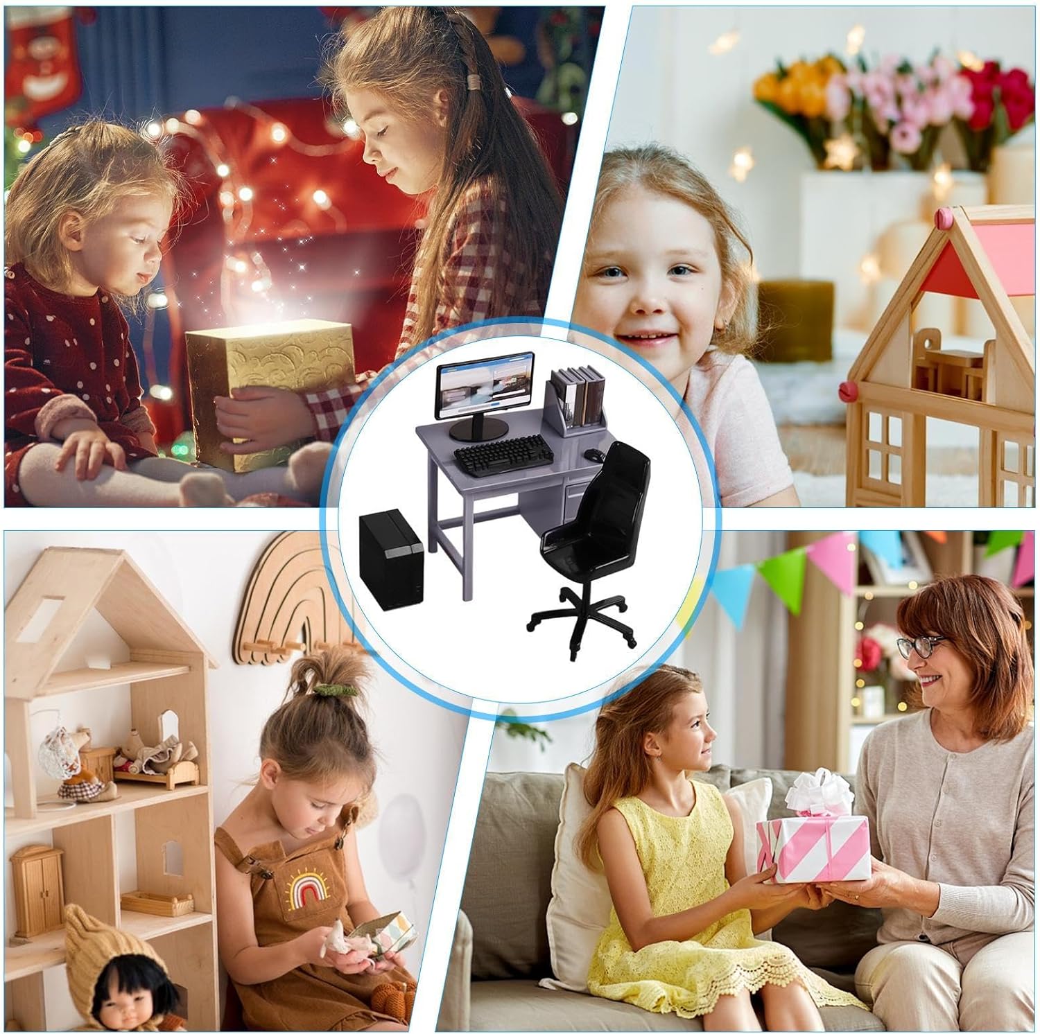 Resistenza di alta qualità: realizzati con materiali di prima qualità con design estetico, i mobili delle bambole mantengono il loro aspetto impeccabile con un'elevata resistenza ai danni per un fascino senza tempo in qualsiasi ambiente di gioco Integrazione rapida: grazie al design ben studiato, i mobili della casa delle bambole possono essere facilmente configurati, sostenendo concetti creativi di design e senza complesse fasi di installazione Design realistico: porta alla casa delle bambole un ambiente di lavoro realistico con scrivanie, sedie e tastiere in miniatura. Riproduzione fedele grazie agli elementi ridotti di precisione per autentici mondi di gioco. Regalino gioia: perfetta per collezionisti e amanti, questa collezione di mobili per la casa delle bambole dona magica lucentezza ai momenti speciali grazie all'affascinante lavorazione artigianale che affascina con dettagli artistici e dal linguaggio delle forme graziose Perfetta vestibilità: i mobili per la casa delle bambole con accessori realistici in miniatura e raccoglitori consentono di creare arrangiamenti accattivanti per una presentazione efficace