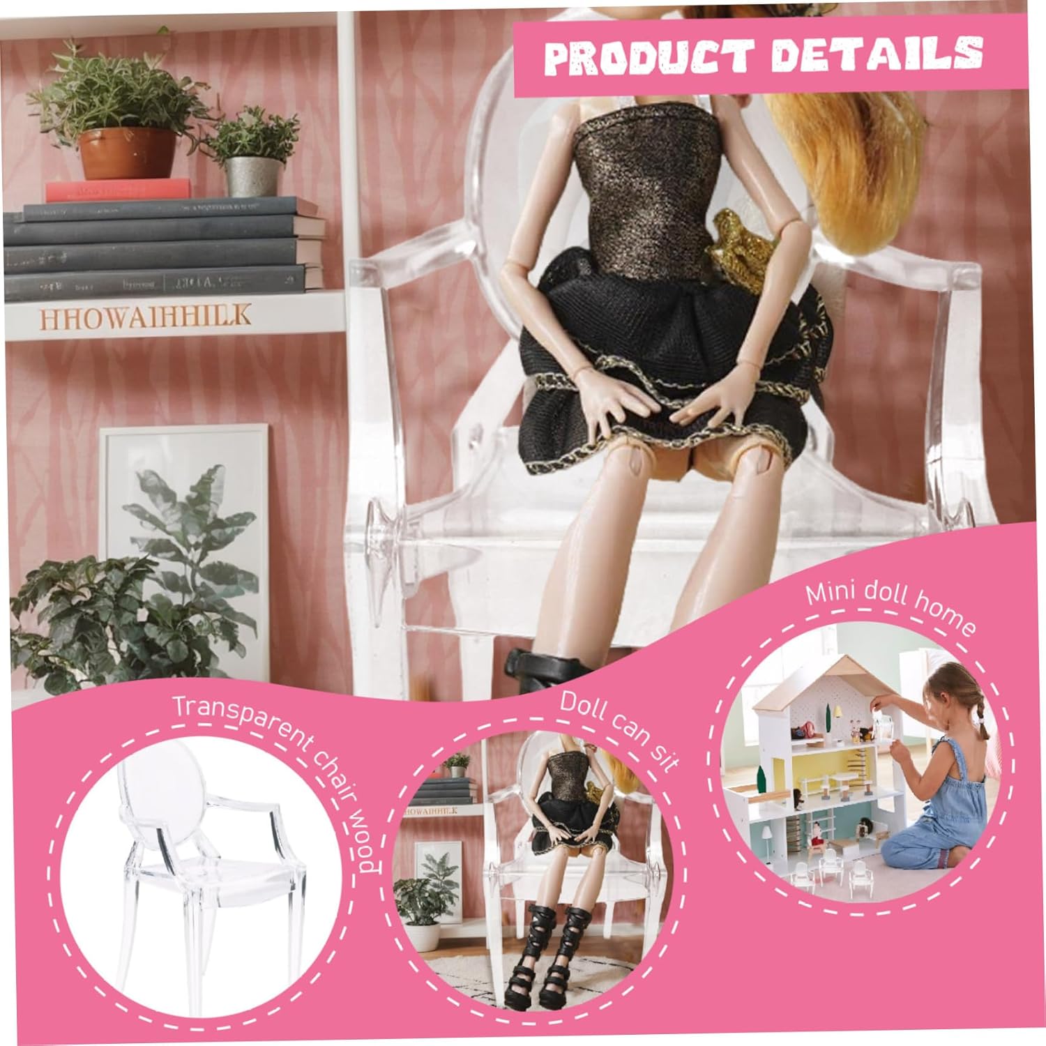 Perfetta vestibilità in scala 1/6: progettate per adattarsi a bambole in scala 1/6, queste poltrone in miniatura offrono un'opzione di seduta realistica per le bambole. Le proporzioni perfette assicurano che la tua casa delle bambole mantenga un aspetto autentico migliorando il gioco fantasioso. Mini sedia mobili per casa delle bambole Ideale per accessori per la casa delle bambole: eleva l'arredamento della tua casa delle bambole con queste mini poltrone, perfette per migliorare qualsiasi ambiente. Sono ottime aggiunte a salotti, sale giochi o sale da pranzo di classe, creando spazi invitanti per il divertimento delle tue bambole. 1 6 Scala Doll Mobili 1/6 Scala Mobili Struttura in plastica: realizzata in plastica trasparente di qualità, questa mini sedia offre durata pur rimanendo leggera. Il suo design robusto garantisce che resista al gioco, rendendolo un'aggiunta affidabile ai mobili della tua casa delle bambole. Mobili per casa delle bambole Mobili in miniatura Mobili versatili in miniatura fai da te: queste mini poltrone sono eccellenti per gli appassionati di case delle bambole fai da te. Personalizzali e decorali per abbinarli al tuo stile o tema unico, promuovendo la creatività e l'espressione personale nei tuoi scenari di gioco. Mobili in scala 1/6 Mobili per casa delle bambole Design chic e moderno: la mini sedia presenta un design elegante e trasparente in plastica che aggiunge un tocco di stile contemporaneo a qualsiasi ambiente della casa delle bambole. La sua estetica moderna completa vari temi decorativi, rendendolo un pezzo straordinario nella tua collezione di case delle bambole. Mobili in miniatura Mobili in scala 1/6